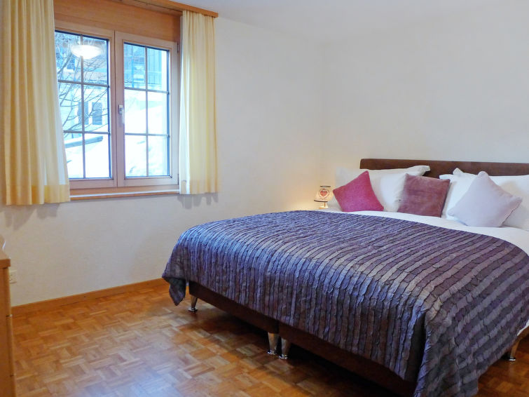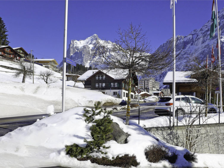 Schönes Mehrfamilienhaus "Chalet Perle". Im Ortsteil Wasserbühlen, 800 m vom Zentrum, ruhige, sonnige Lage, Richtung Süden. Zur Alleinbenutzung: Terrasse (80 m2), Gartenmöbel. Im Hause: Fahrstuhl, Einstellraum für Fahrräder, Skiraum, Zentralheizung. Einkaufsservice vor Anreise möglich. Zufahrt bis zum Haus. Im Winter bitte Schneeketten mitbringen. Gemeinschaftsgarage Nr. EG 5. Maße: Höhe 230 cm Breite 350 cm. Lebensmittelgeschäft 800 m, Einkaufszentrum 900 m, Restaurant 800 m, Bar 800 m, Bäckerei 900 m, Fahrradverleih 1.3 km, Zentrum zu Fuss in 10 Minuten erreichbar, Bushaltestelle "Wasserbühlen" 20 m, Bahnstation "Grindelwald Dorf" 800 m, Freibad 1 km, Hallenbad 900 m. Golfplatz (9 Loch) 3 km, Tennis 3.5 km, Minigolf 1 km, Sportzentrum 900 m, Bergeisenbahn, Gondelbahn 900 m, Skiverleih, Skibushaltestelle 20 m, Langlaufloipe, Kinderspielplatz 900 m. Bekannte Seen in der Umgebung sind gut erreichbar: Thuner-/Brienzersee 18 km. Bitte beachten: Gratis Skibus. Die Schlüsselübergabe findet bei der Agentur Interhome in Grindelwald statt. Die Nachbarschaft ist sehr lärmempfindlich. Ruhe und gutes Benehmen wird erwartet.