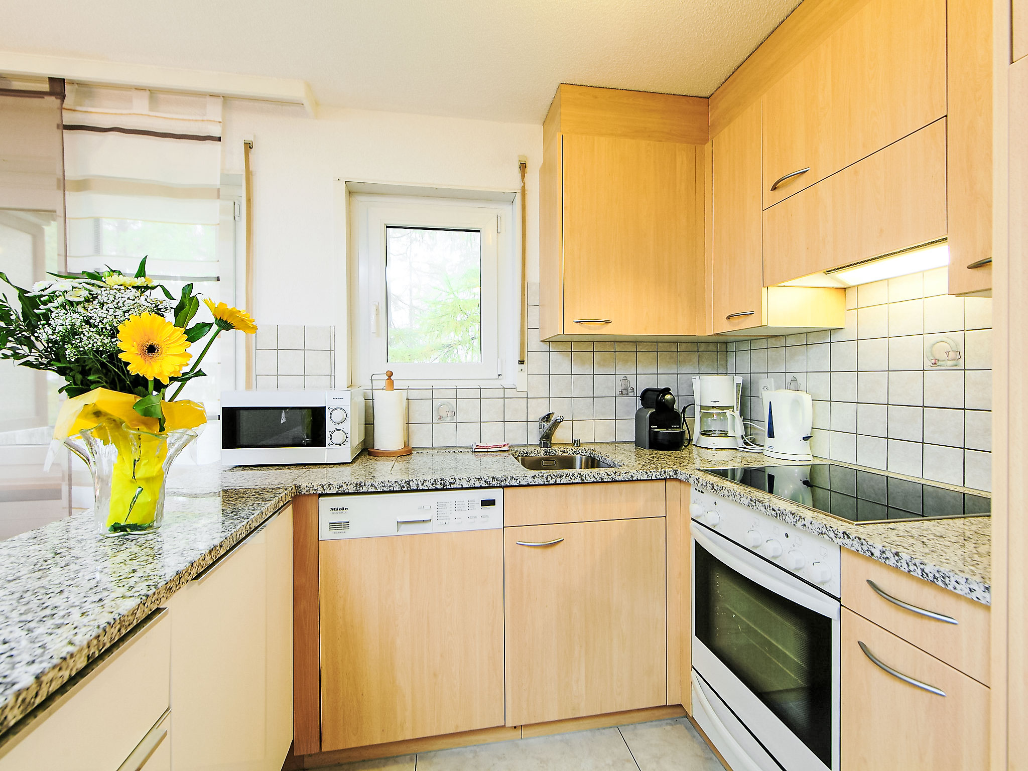 3-Zimmer-Wohnung 68 m2 im 1. Stock, Südlage. Hell, komfortabel und modern eingerichtet: offenes Wohn-/Esszimmer mit Esstisch, TV und Stereoanlage. Ausgang zum Balkon, Richtung Süden. 2 Doppelzimmer, jedes Zimmer mit 1 Doppelbett (1 x 160 cm, Länge 210 cm). Offene Küche (Backofen, Geschirrspüler, 4 Glaskeramikplatten, Toaster, Wasserkocher, Mikrowelle, Tiefkühler, elektrische Kaffeemaschine). Dusche/WC. Heizung. Grosser Balkon, Südlage. Balkonmöbel. Herrliche Panoramasicht auf das Matterhorn. Zur Verfügung: Internet (Wireless LAN, gratis). Bitte beachten: Nichtraucher-Unterkunft, Nichtraucher-Haus.