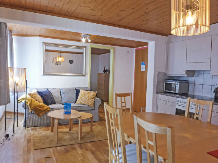 "Bristol Apt.18", 3-Zimmer-Wohnung 60 m2 im 1. Stock. Komfortabel und gemütlich eingerichtet: Wohn-/Esszimmer mit Esstisch. 1 Zimmer mit 1 franz. Bett (140 cm, Länge 200 cm). 1 Zimmer mit 2 Betten (90 cm, Länge 200 cm). Küche (Backofen, 4 Glaskeramikplatten, Toaster, Wasserkocher, Mikrowelle, elektrische Kaffeemaschine, Kapseln für die Kaffeemaschine (Nespresso) extra). Bad/Dusche/WC. Kleiner Balkon. Sicht auf die Berge. Zur Verfügung: Haartrockner. Internet (Wireless LAN, gratis). Bitte beachten: Nichtraucher-Unterkunft.