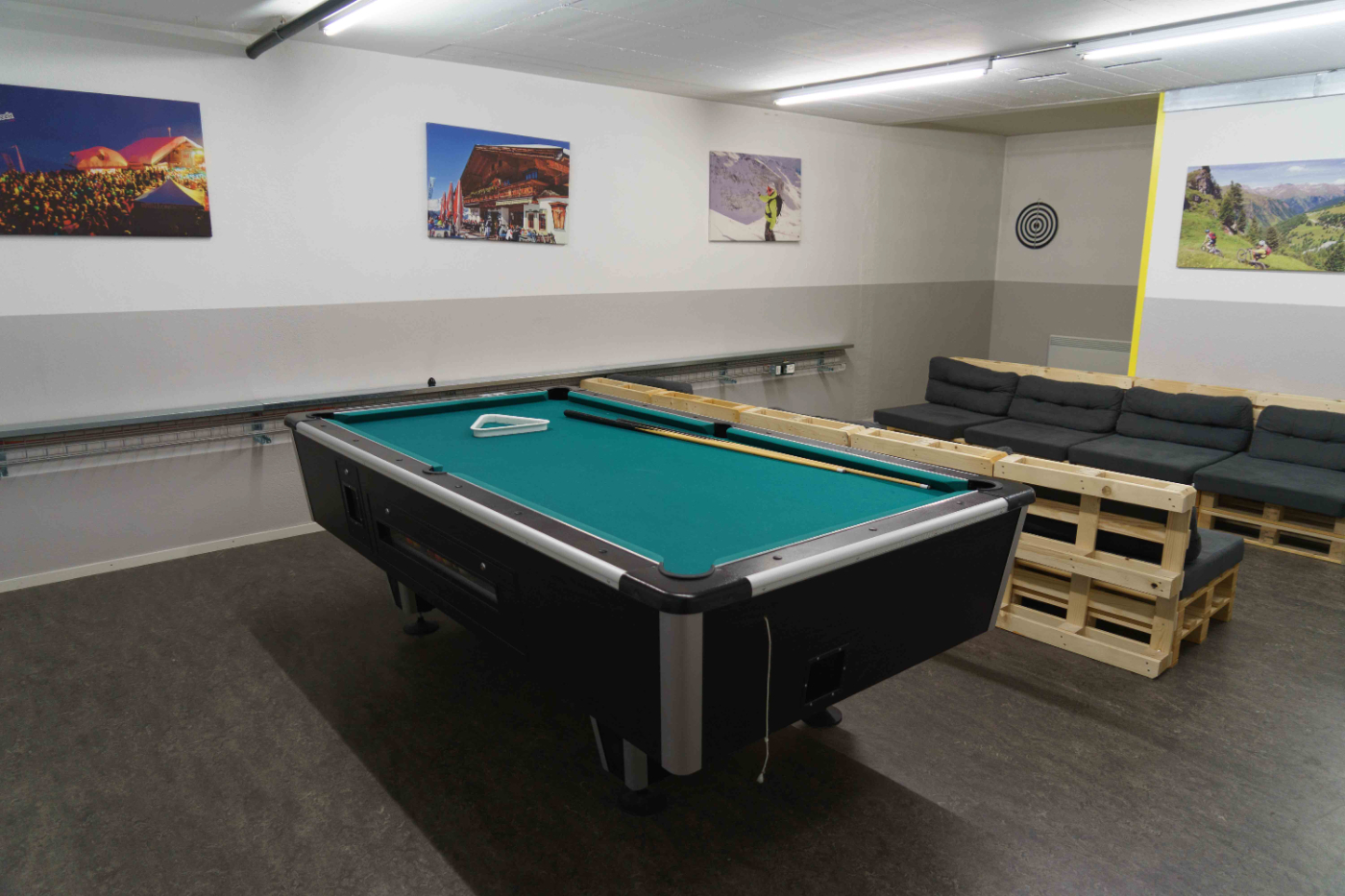Nach einem aktiven Tag erwartet euch auf der hauseigenen Terrasse ein traumhafter Sonnenuntergang! Abends kann sich die Gruppe im gemütlichen Essens- und Aufenthaltsraum austoben. Zusätzlich befinden sich weitere Räume in Planung: Lounge/Vortragsraum, Spieleraum u.a. mit Tischtennis, Kicker und ein Club/Disko im Keller! Insgesamt ist die Gruppenunterkunft für bis zu ca. 100 Personen geplant.