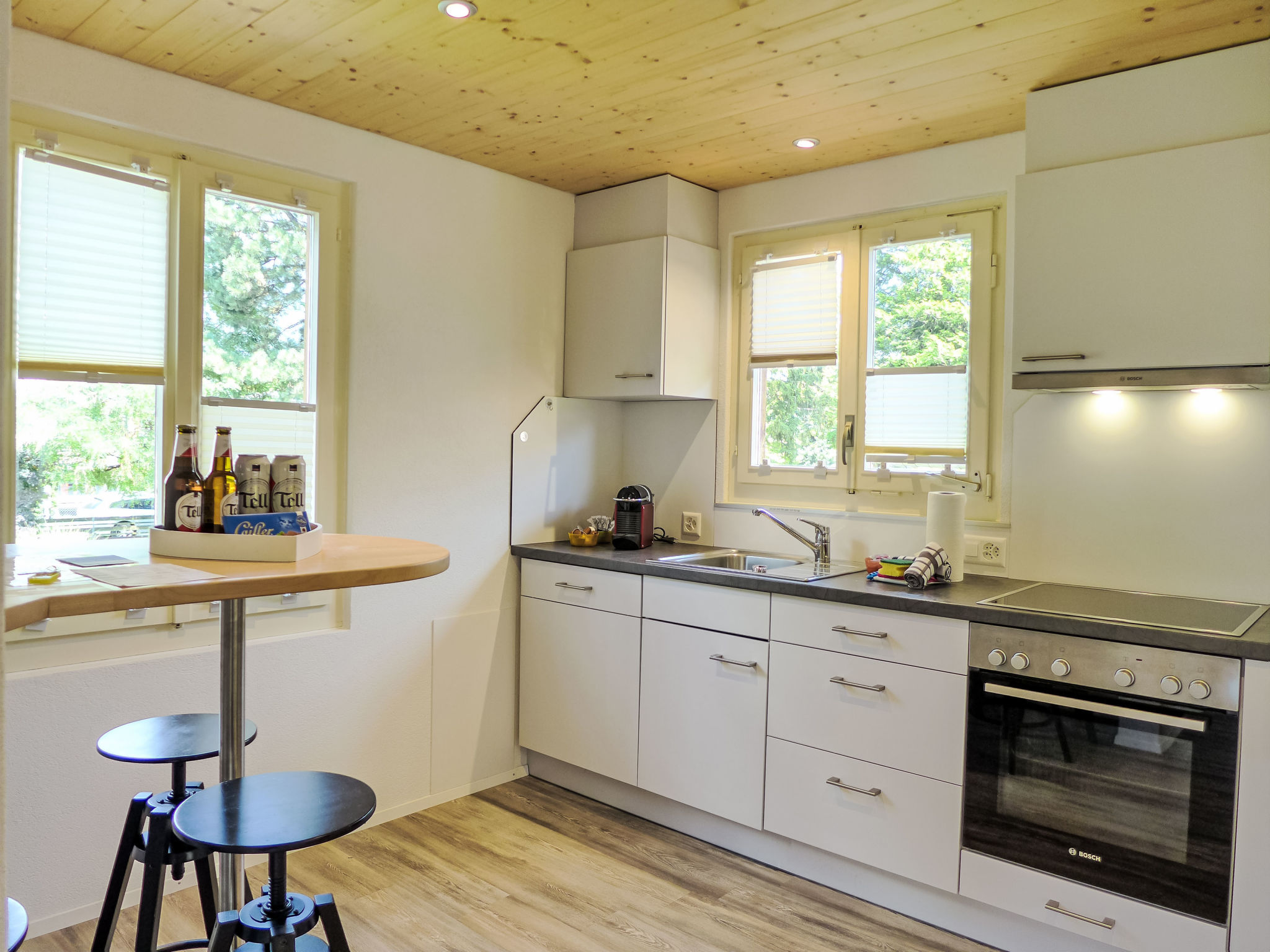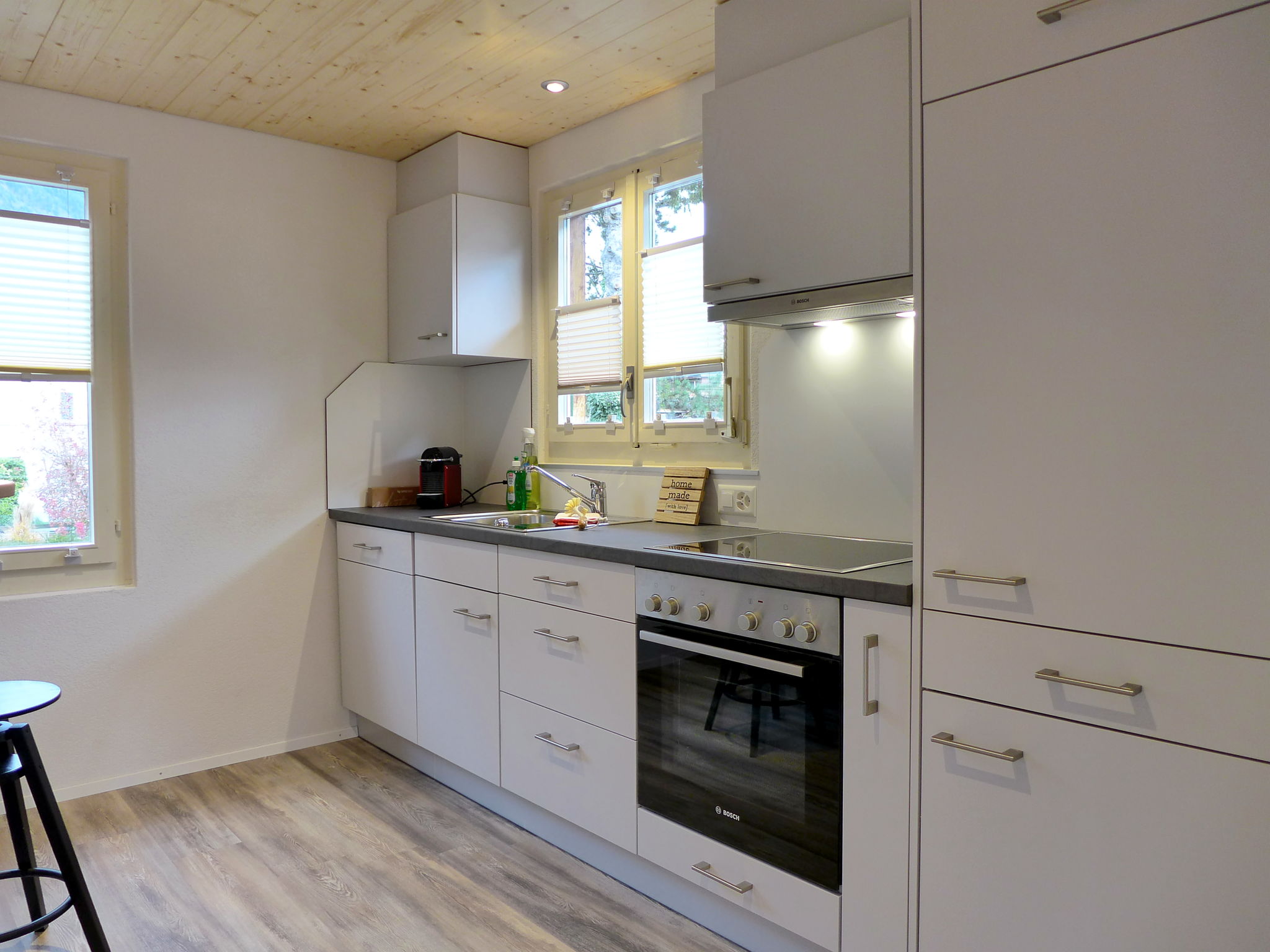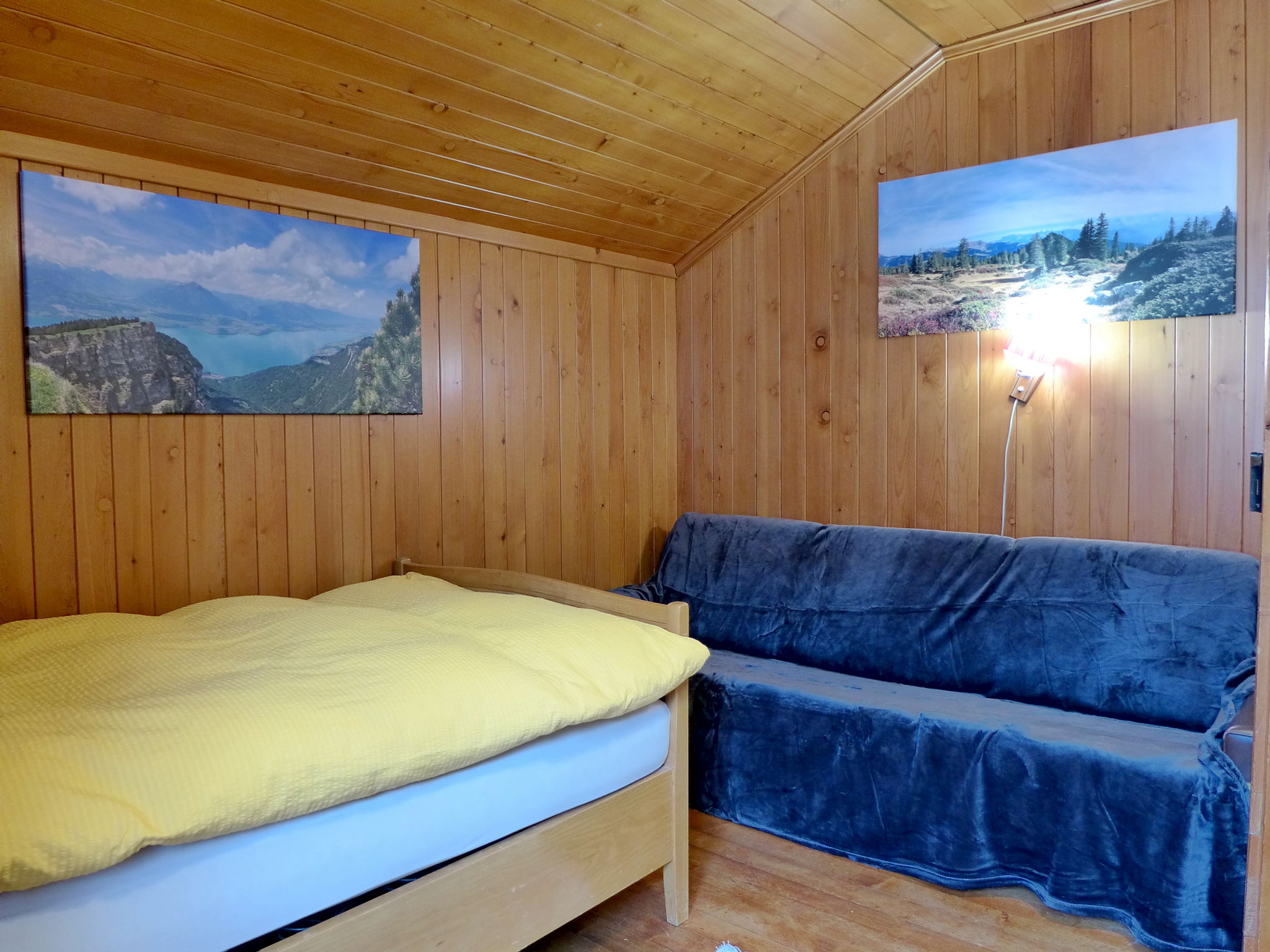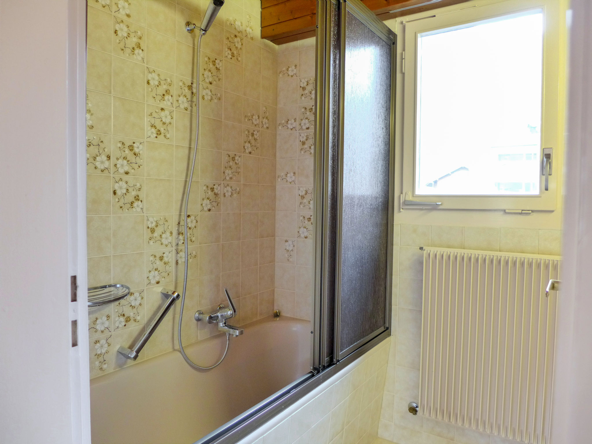 4-Zimmer-Haus 95 m2 auf 2 Stockwerken, im Obergeschoss. Geräumig, teilweise renoviert im Jahre 2022, sehr komfortabel und gemütlich eingerichtet: offenes Wohn-/Esszimmer mit Essecke und Kabel-TV. Offene Küche (Backofen, Geschirrspüler, 4 Glaskeramikplatten, Toaster, Wasserkocher, elektrische Kaffeemaschine, Kapseln für die Kaffeemaschine (Nespresso) extra, Racletteofen, Fondue Set (Käse)). Bad/WC. Fussbodenheizung. Dachgeschoss: 2 Zimmer, jedes Zimmer mit 1 Doppelbett (2 x 90 cm, Länge 200 cm). Ausgang zum Balkon. 1 Zimmer mit 1 Bett (90 cm, Länge 200 cm). Dusche/WC. Teppichboden. Kleiner Balkon, Südlage, grosser Gartensitzplatz. Terrassenmöbel, Gartengrill. Herrliche Panoramasicht auf die Berge und die Landschaft. Zur Verfügung: Haartrockner. Internet (WLAN, gratis). Bitte beachten: Nichtraucher-Unterkunft. Maximal 2 Haustiere/Hunde erlaubt. Rauchmelder, Feuerlöscher. CH3800.260.1