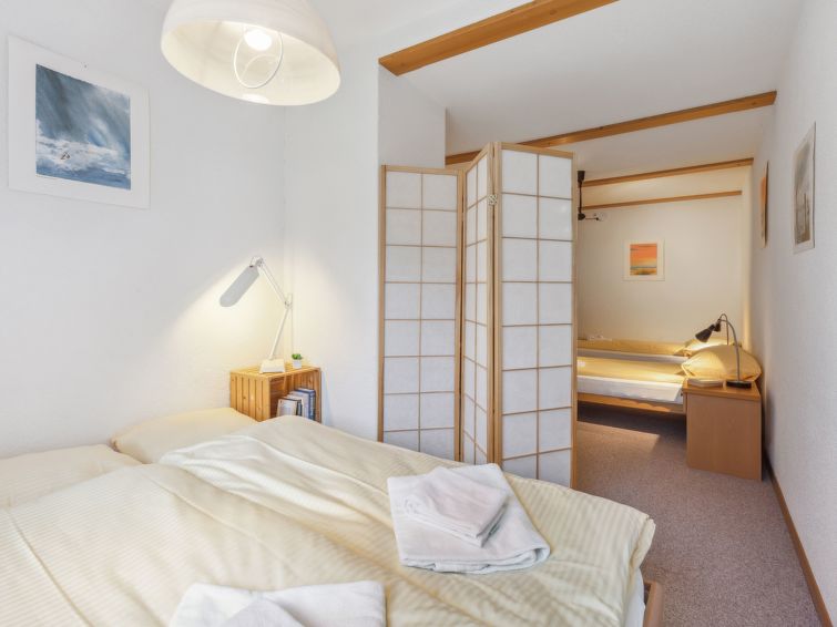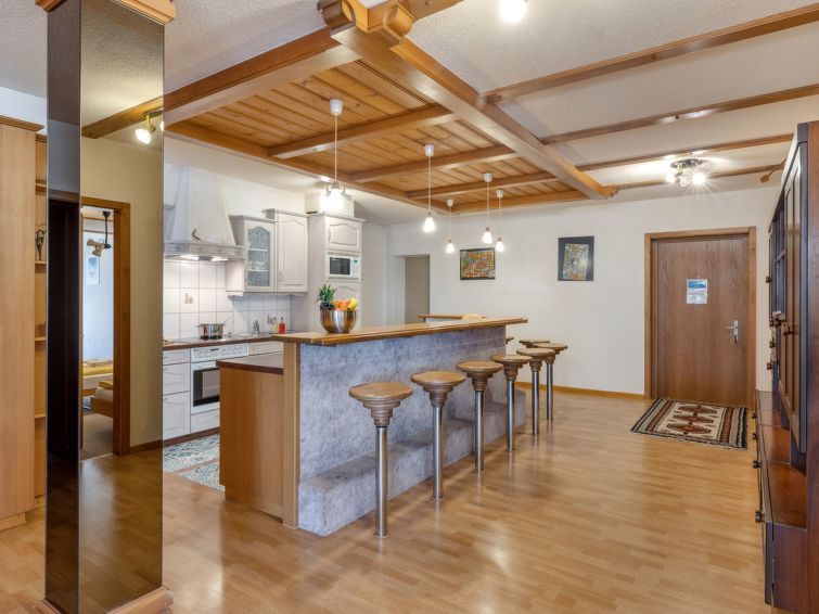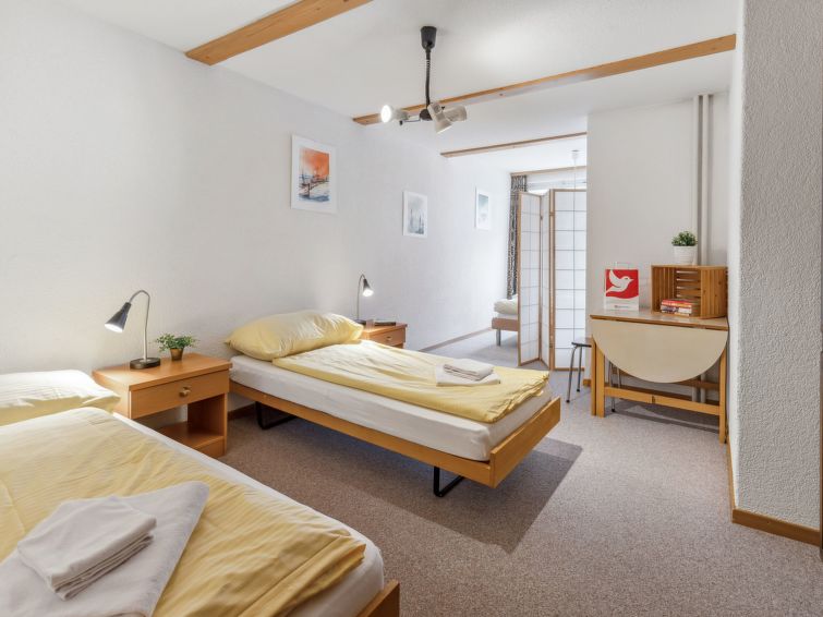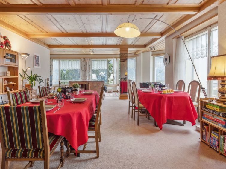 "Bristol Apt.A", 4-Zimmer-Wohnung 160 m2, im erhöhten Erdgeschoss. Geräumig und hell, komfortabel und gemütlich eingerichtet: grosses Wohn-/Esszimmer mit Kabel-TV und Flachbildschirm. Ausgang zum Balkon. 1 Zimmer mit 1 Doppelbett (2 x 90 cm, Länge 190 cm). 1 grosses Zimmer mit 2 Betten (90 cm, Länge 190 cm), 1 Doppelbett (120 cm, Länge 200 cm). 1 grosses Zimmer mit 4 Betten (90 cm, Länge 200 cm). Grosse, offene Küche (4 Glaskeramikplatten, Toaster, Wasserkocher, Mikrowelle, elektrische Kaffeemaschine, Kapseln für die Kaffeemaschine (Nespresso) extra, Racletteofen, Fondue Set (Käse)) mit Bar. Bad/WC, Dusche/WC. Teppichboden. Kleiner Balkon. Balkonmöbel. Herrliche Panoramasicht auf die Berge. Zur Verfügung: Waschmaschine, Wäschetrockner, Bügeleisen, Kinderhochstuhl, Babybett bis 2 Jahre (extra), Haartrockner. Internet (Wireless LAN, gratis). Bitte beachten: geeignet für Familien. Nichtraucher-Unterkunft.