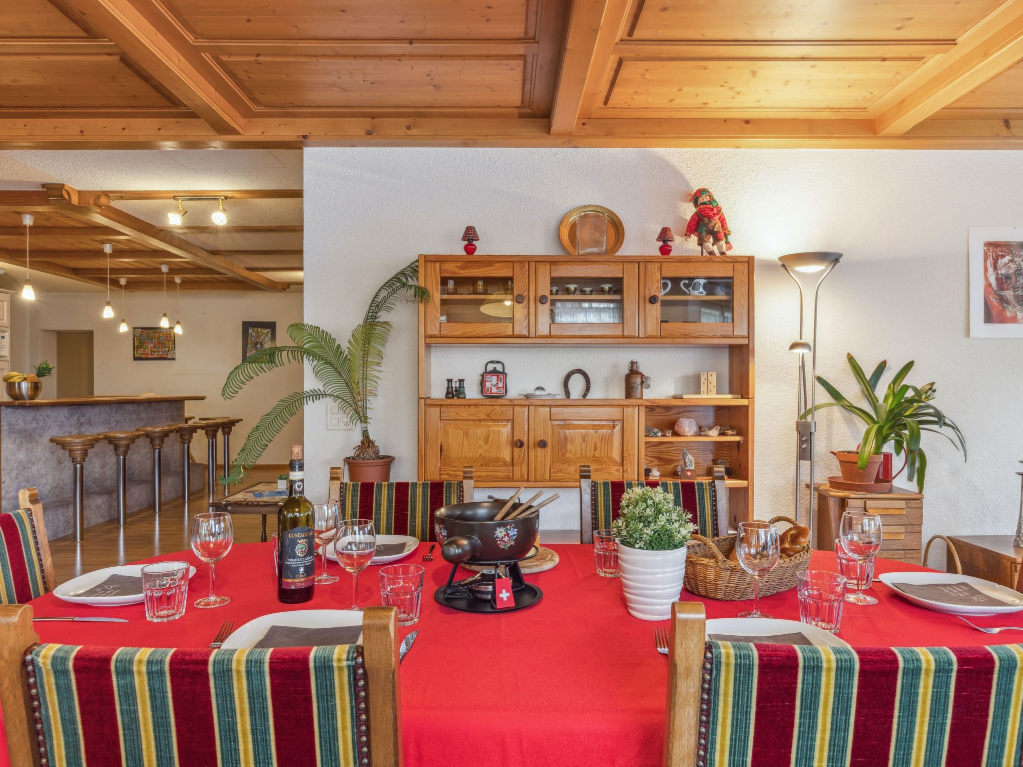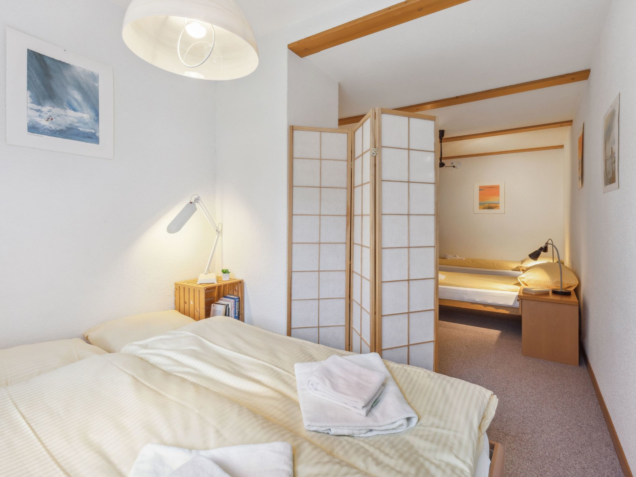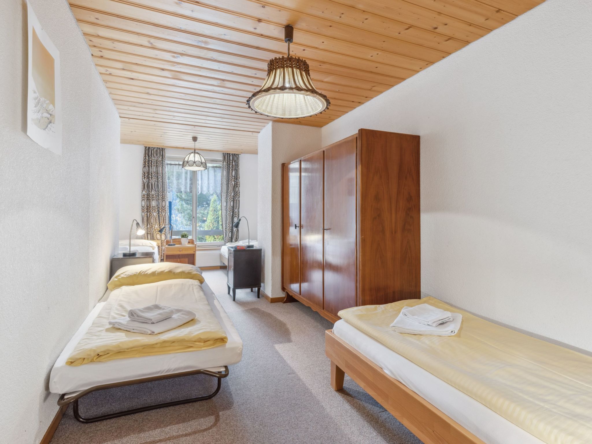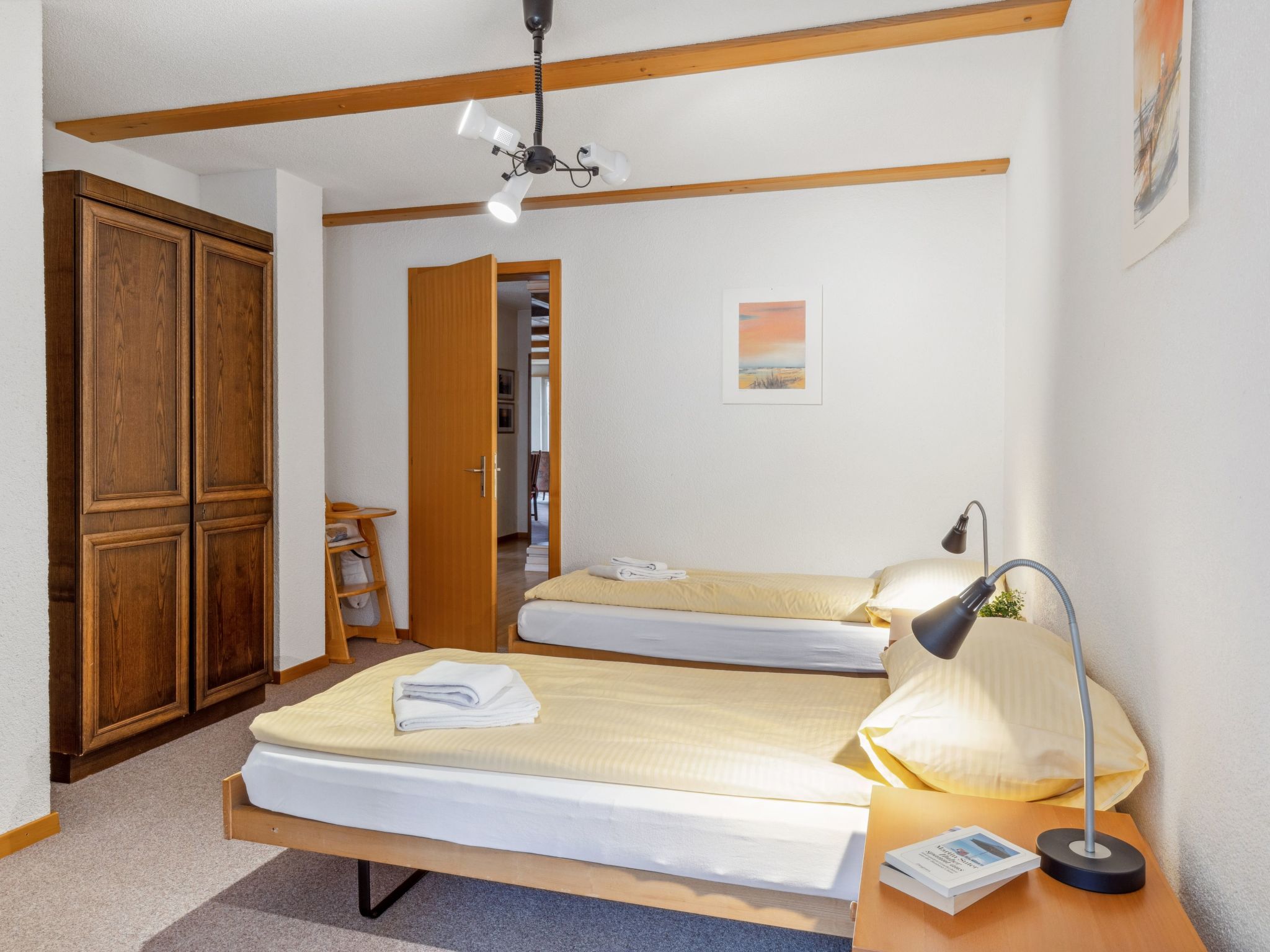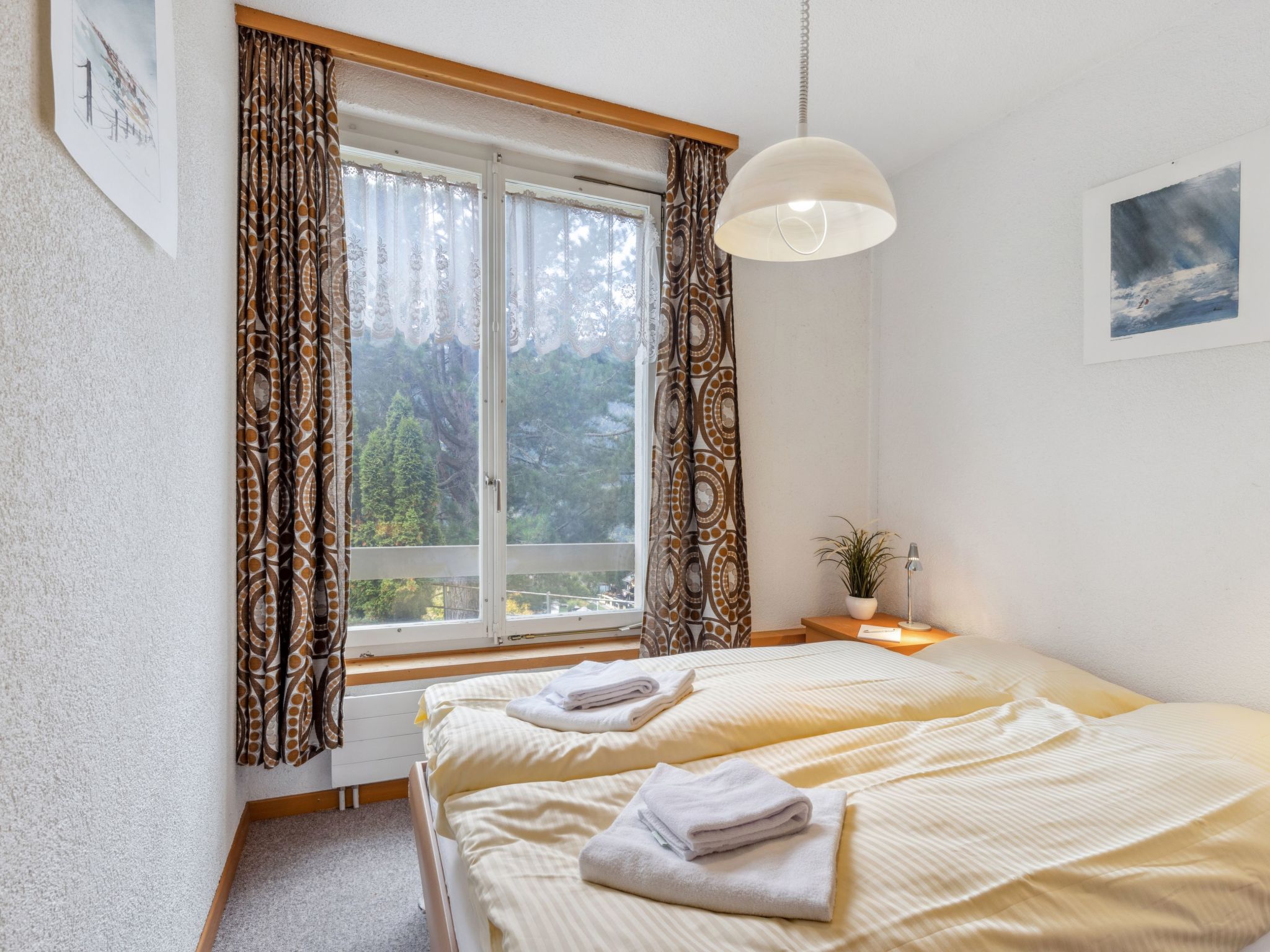 "Bristol Apt.A", 4-Zimmer-Wohnung 160 m2, im erhöhten Erdgeschoss. Geräumig und hell, komfortabel und gemütlich eingerichtet: grosses Wohn-/Esszimmer mit Kabel-TV und Flachbildschirm. Ausgang zum Balkon. 1 Zimmer mit 1 Doppelbett (2 x 90 cm, Länge 190 cm). 1 grosses Zimmer mit 2 Betten (90 cm, Länge 190 cm), 1 Doppelbett (120 cm, Länge 200 cm). 1 grosses Zimmer mit 4 Betten (90 cm, Länge 200 cm). Grosse, offene Küche (4 Glaskeramikplatten, Toaster, Wasserkocher, Mikrowelle, elektrische Kaffeemaschine, Kapseln für die Kaffeemaschine (Nespresso) extra, Racletteofen, Fondue Set (Käse)) mit Bar. Bad/WC, Dusche/WC. Teppichboden. Kleiner Balkon. Balkonmöbel. Herrliche Panoramasicht auf die Berge. Zur Verfügung: Waschmaschine, Wäschetrockner, Bügeleisen, Kinderhochstuhl, Babybett bis 2 Jahre (extra), Haartrockner. Internet (WLAN, gratis). Bitte beachten: geeignet für Familien. Nichtraucher-Unterkunft.