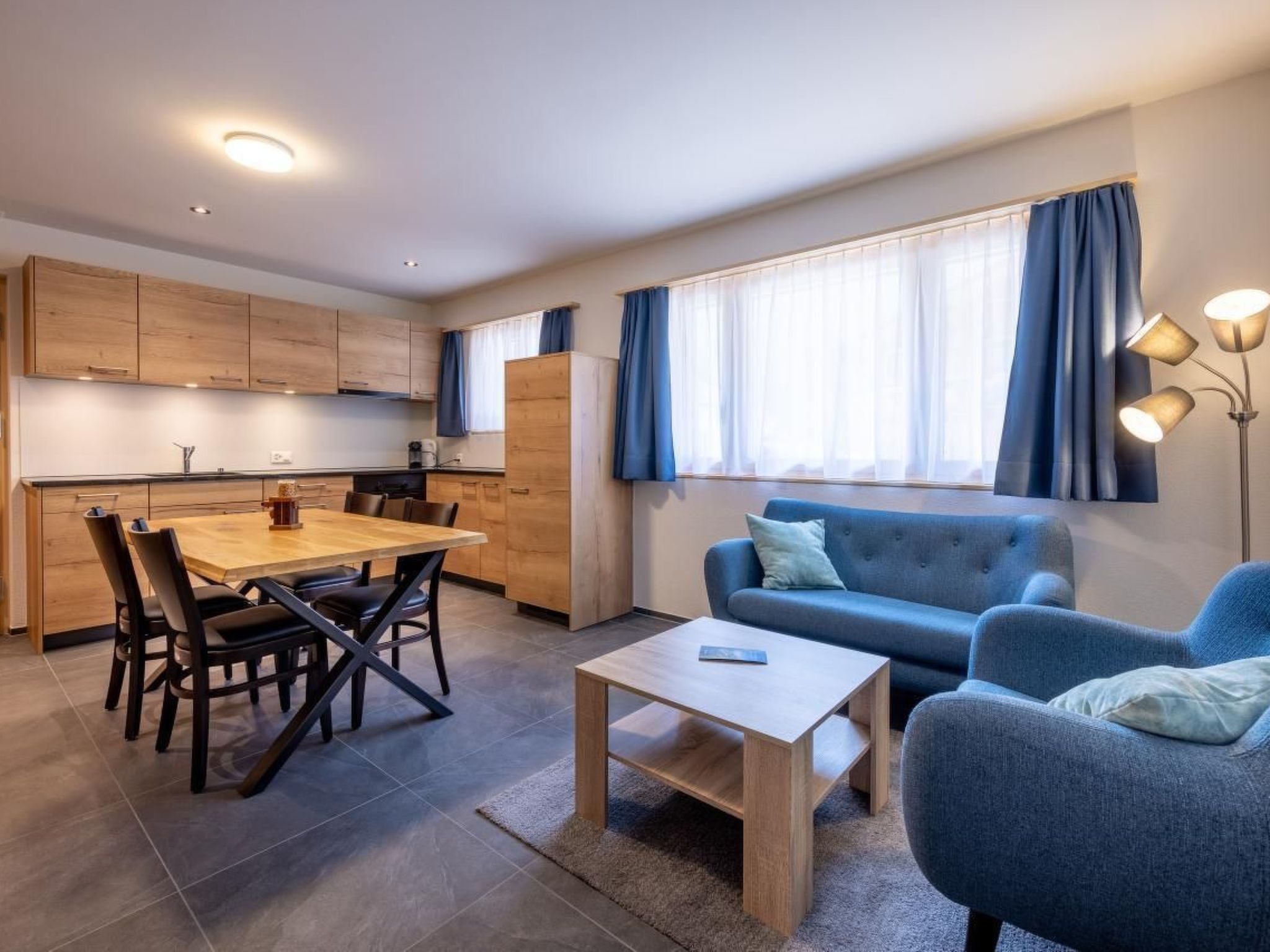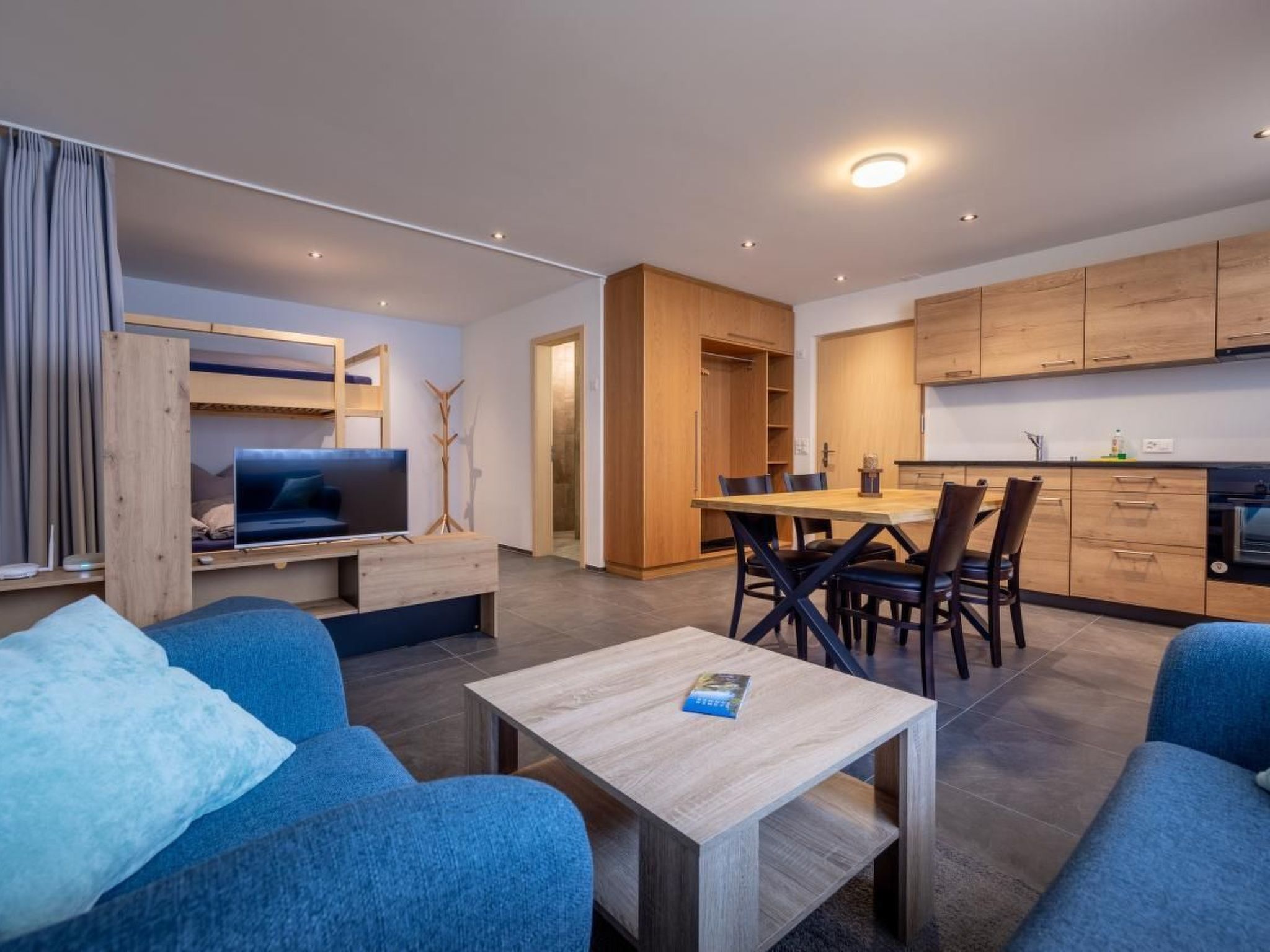 Tomspanorama verfügt über zwei Apartments im Erdgeschoss mit je vier Schlafplätzen (zwei Doppelbetten) und hochwertiger Möblierung. Die neu gebauten und sorgfältig eingerichteten Wohnungen sind ideal für Einzelreisende, Paare, Freunde oder Familien mit max. 2 Kindern. Direkt vor der Haustür warten im Sommer wie im Winter unzählige Outdoor-Erlebnisse.
