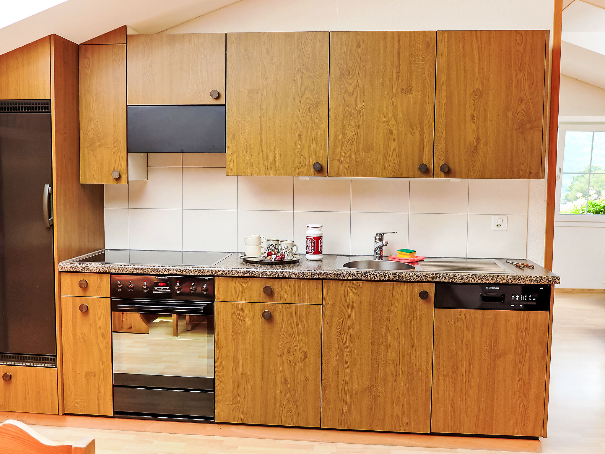 "Oltschiblick", 3-Zimmer-Wohnung 66 m2, im Dachgeschoss, Südlage. Geräumig und hell, sehr komfortabel und gemütlich eingerichtet: offenes grosses Wohnzimmer 25 m2 mit Dachfenster mit Kabel-TV, Internationale TV-Sender, Flachbildschirm und Radio. Ausgang zum Balkon. 1 Doppelzimmer 11 m2 mit 1 Doppelbett (2 x 90 cm, Länge 200 cm). 1 Zimmer 12 m2 mit 2 Betten (90 cm, Länge 200 cm). Grosse, offene Küche (Backofen, Geschirrspüler, 4 Glaskeramikplatten, Toaster, Wasserkocher, elektrische Kaffeemaschine, Kapseln für die Kaffeemaschine (Delizio) gratis, Fondue Set (Käse)) mit Essecke. Dusche/WC. Grosser Balkon 12 m2, Südlage. Balkonmöbel, Liegestühle, Abstellkammer. Herrliche Panoramasicht auf die Berge und die Landschaft. Zur Verfügung: Waschmaschine, Bügeleisen, Babybett bis 2 Jahre, Haartrockner. Internet (Wireless LAN, gratis). Parkplatz. Bitte beachten: geeignet für Familien. Nichtraucher-Unterkunft.