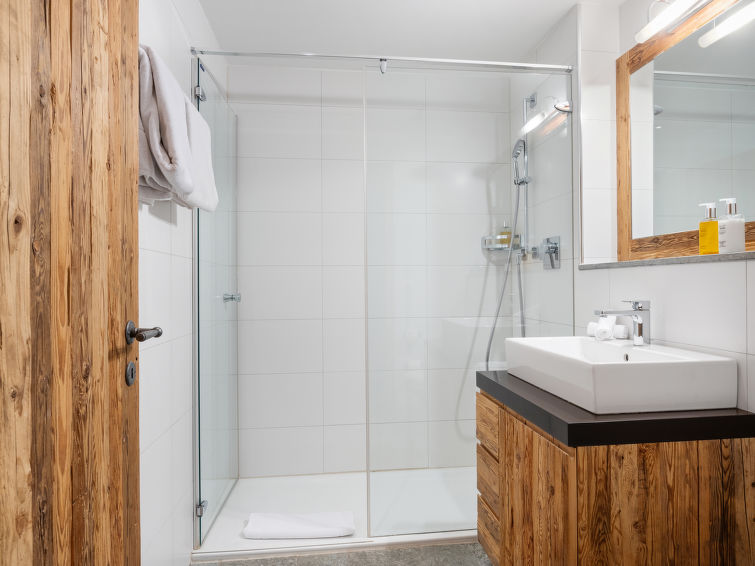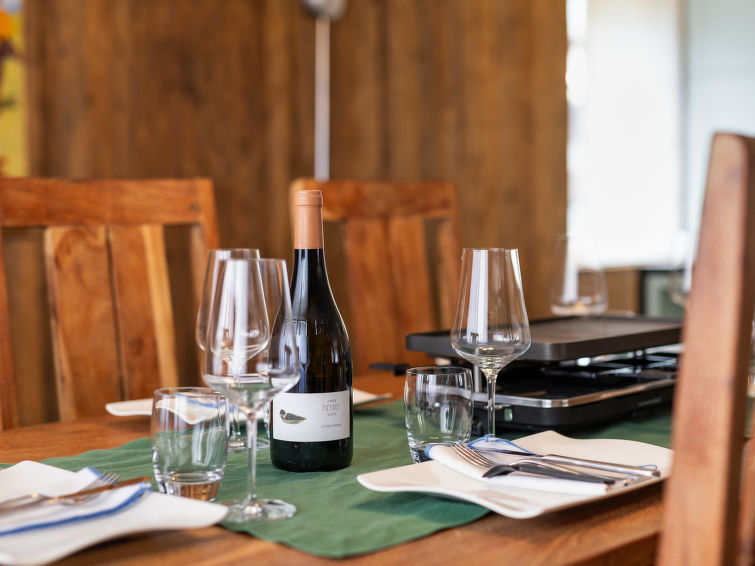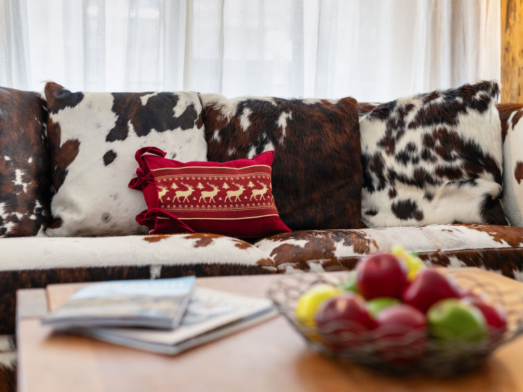 4-Zimmer-Wohnung 120 m2 im 2. Stock. Komfortabel und luxuriös eingerichtet: Wohn-/Esszimmer mit offenem Kamin, Esstisch, TV, Radio und DVD. Ausgang zum Balkon. 1 Doppelzimmer mit 1 Doppelbett und TV. 1 Doppelzimmer mit 1 Doppelbett und TV. 1 Zimmer mit 1 x 2 Etagenbetten, TV. Offene Küche (Backofen, Geschirrspüler, 4 Induktionskochplatten, Toaster, Wasserkocher, Tiefkühler, elektrische Kaffeemaschine, Kapseln für die Kaffeemaschine (Nespresso) extra, Racletteofen, Fondue Set (Käse)). Bad/WC, Dusche/WC, Whirlbadewanne. Balkon 29 m2. Balkonmöbel. Schöne Sicht auf die Berge. Zur Verfügung: Safe, Haartrockner. Internet (WLAN, gratis). Bitte beachten: Nichtraucher-Unterkunft.