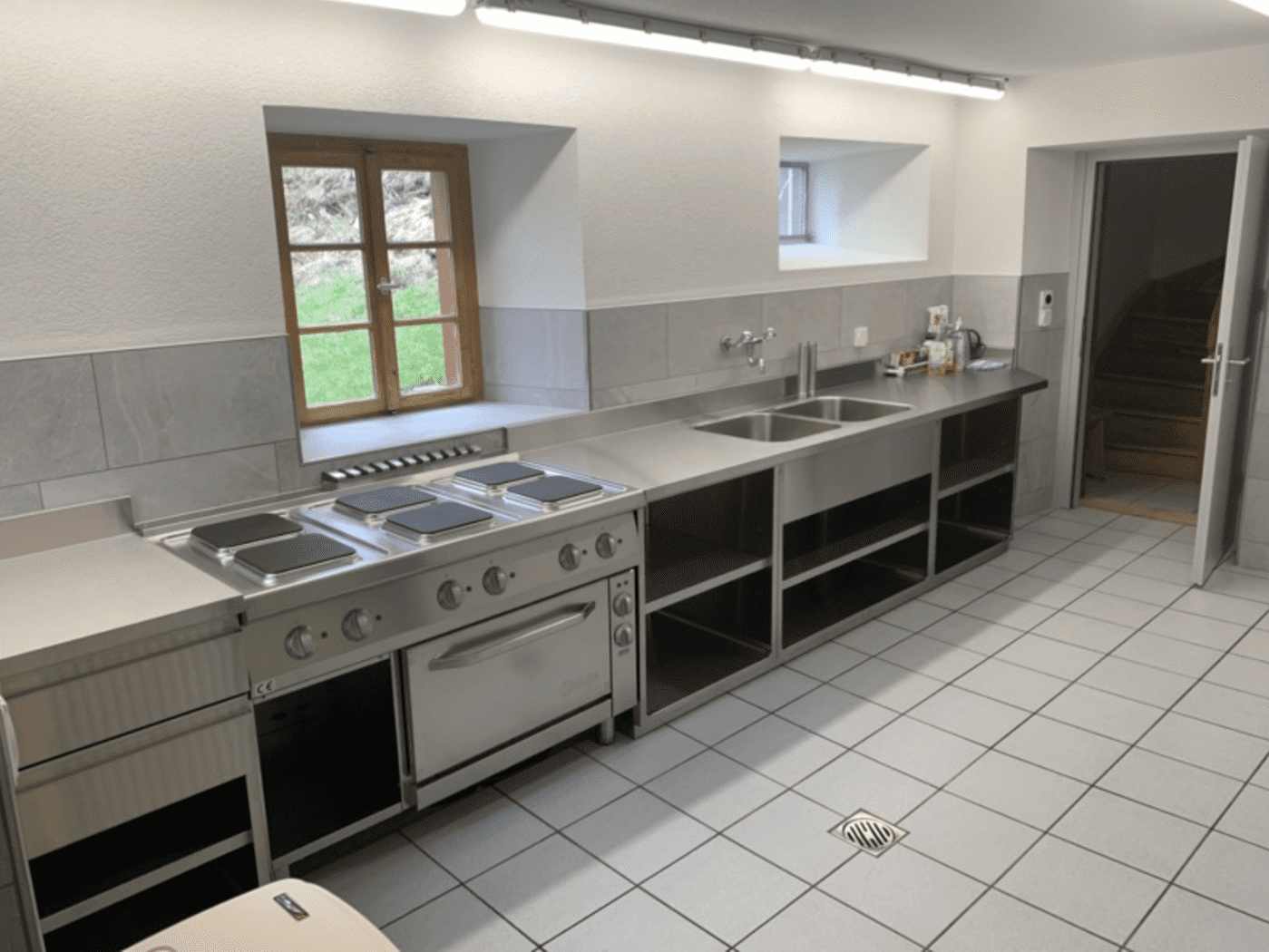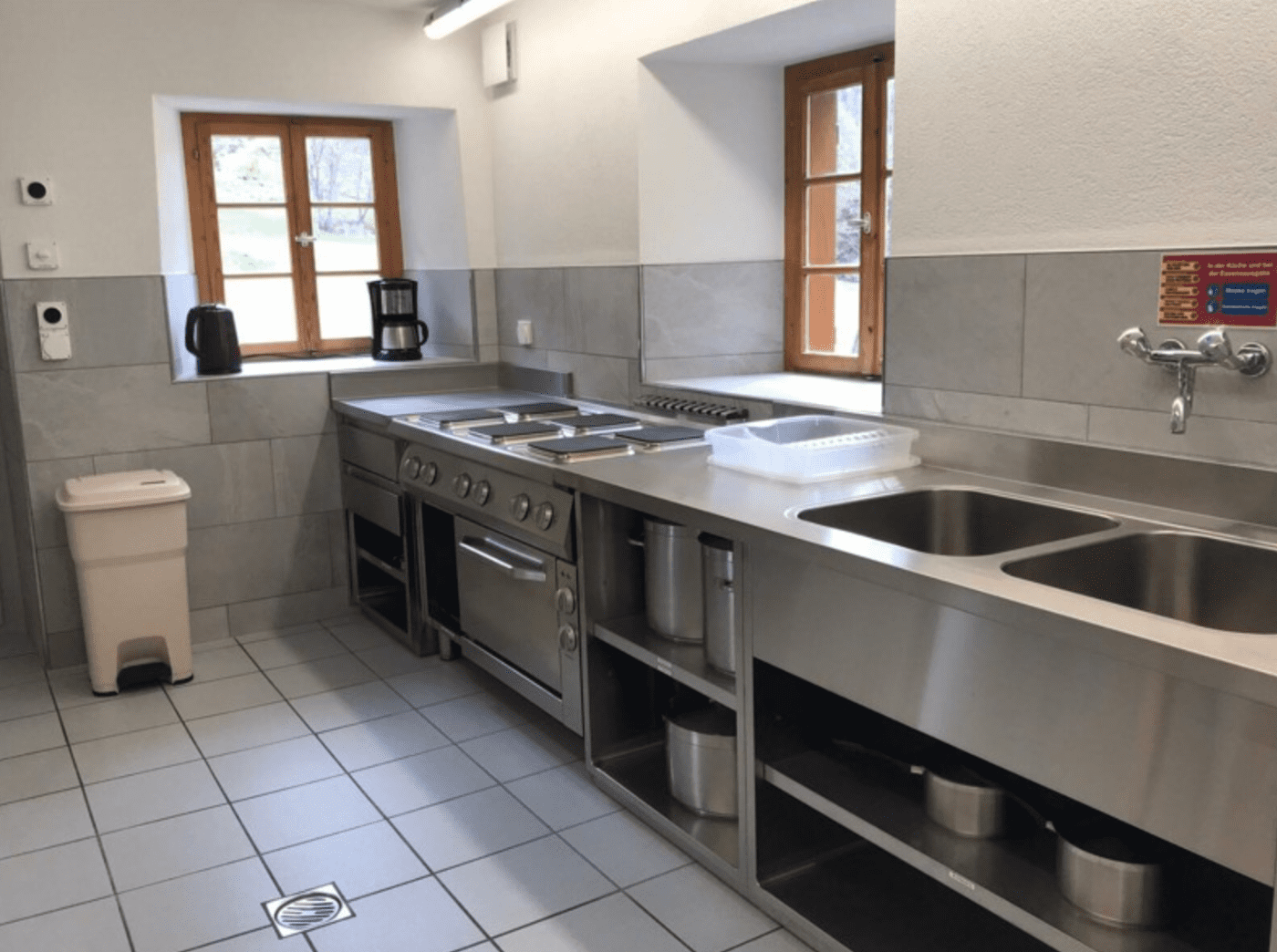 In der grossen Selbstversorgerküche kannst du für die ganze Gruppe kochen. Der Aufenthaltsraum lädt zu gemeinsamen Spielen, Gesprächen und Abendprogrammen ein. Draussen erwarten dich eine schöne Wiese, ein Bächlein sowie eine Feuerstelle für gemütliche Lagerabende unter dem Sternenhimmel.