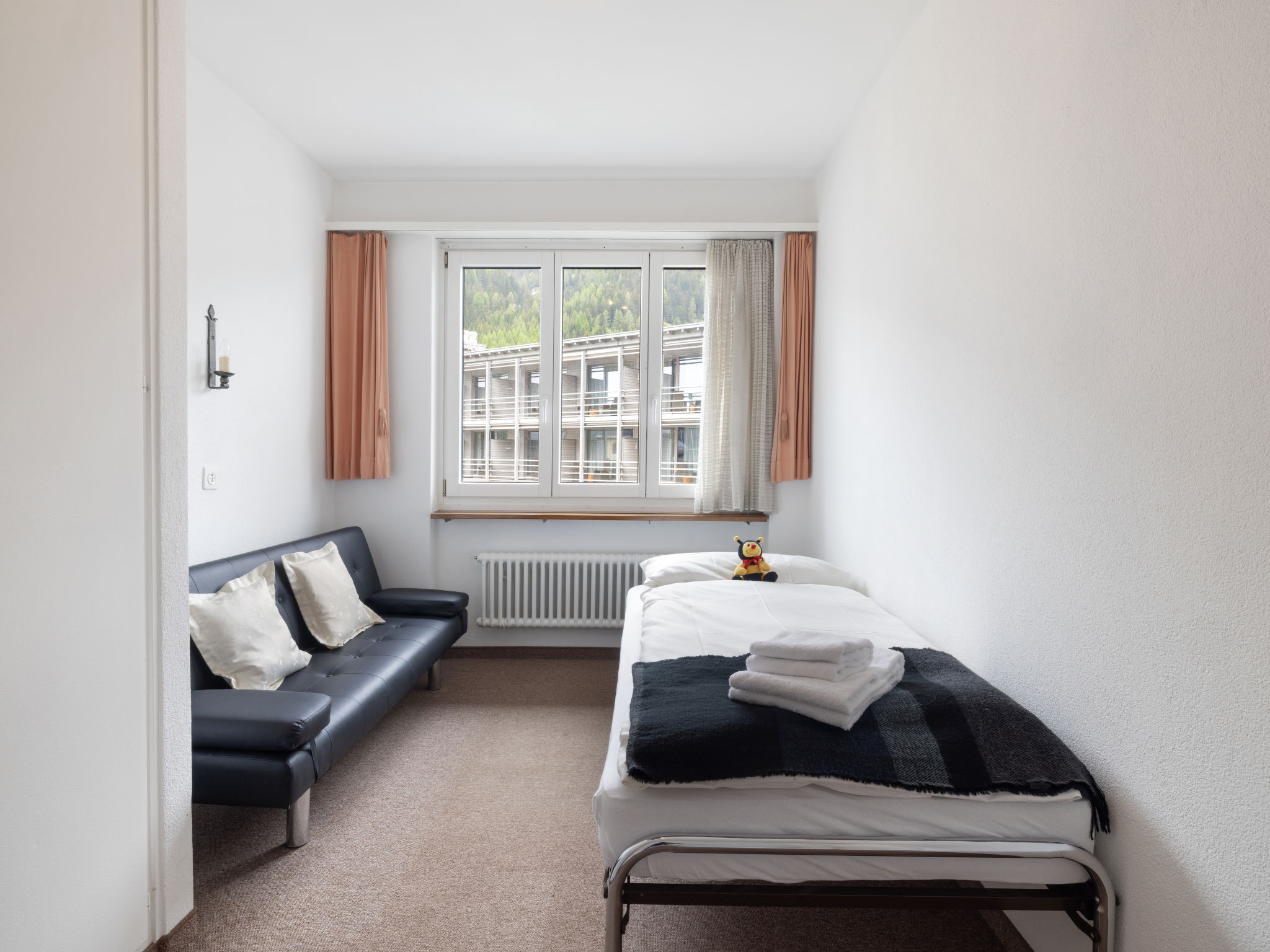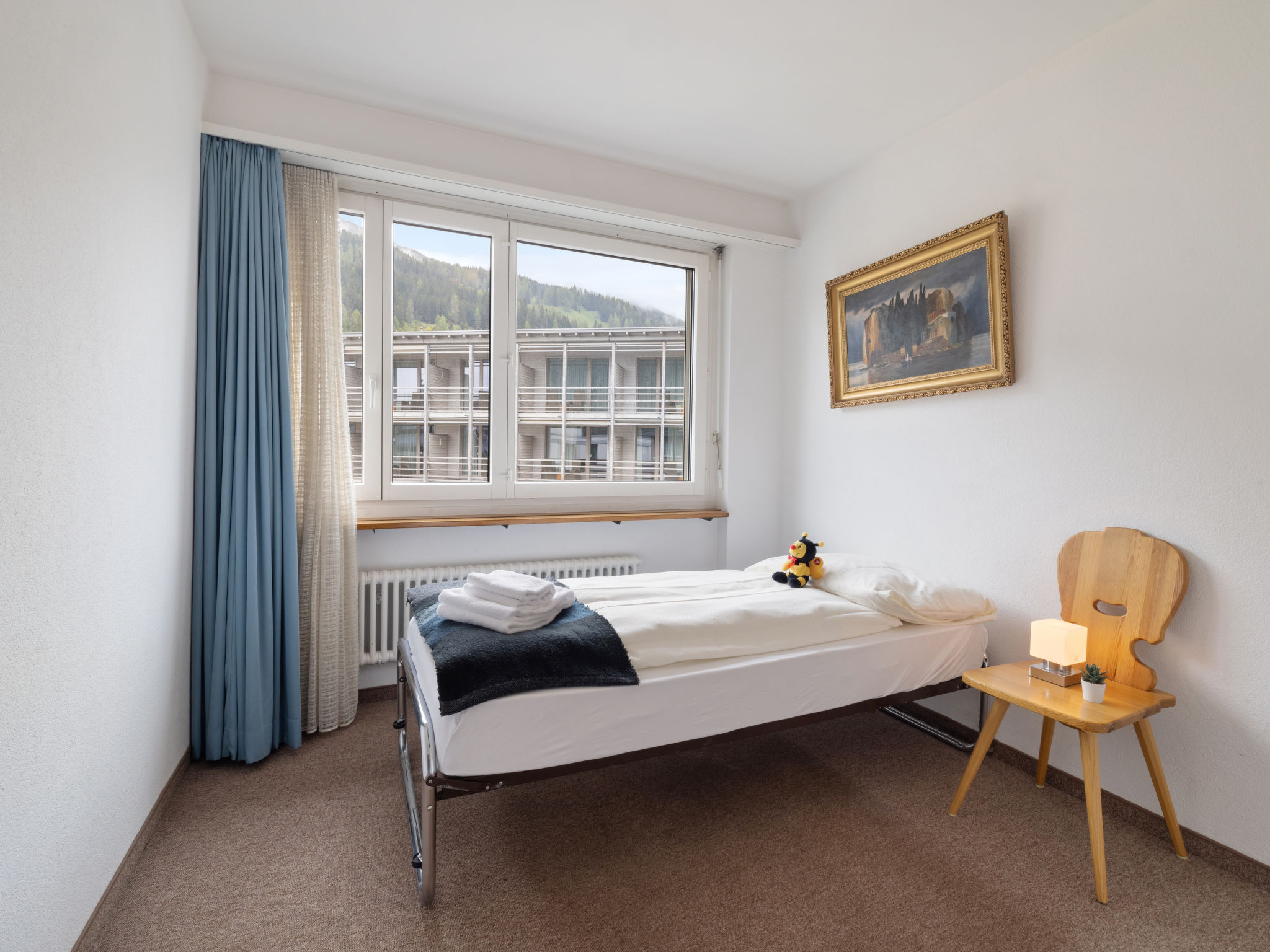 Davos-Platz: Mehrfamilienhaus "Regina", 1'560 m.ü.M., auf 4 Stockwerken. Im Ortszentrum, 900 m vom Zentrum von Davos Pltz, zentrale Lage. Im Hause: Fahrstuhl, Einstellraum für Fahrräder, Skiraum, Zentralheizung, Waschmaschine (zur Mitbenutzung). Wohnungsreinigung möglich (extra). Öffentliches Parkhaus in 50 m, öffentliche Parkplätze 20 m auf der Strasse extra. Einkaufsgeschäft, Lebensmittelgeschäft, Supermarkt 50 m, Einkaufszentrum 200 m, Restaurant, Bushaltestelle 100 m, Park "Kurpark" 500 m, Hallenbad 300 m. Golfplatz (18 Loch) 1.7 km, Surfschule 2 km, Segelschule 2 km, Tennis 4 km, Tennishalle 4 km, Minigolf 800 m, Reitstall 5 km, Sportzentrum, Radweg 500 m, Luftseilbahn 1.6 km, Bergeisenbahn 1 km, Skipisten 1 km, Skiverleih 1 km, Skibushaltestelle 200 m, Skischule 1 km, Langlaufloipe 700 m, Eisfeld 800 m, Kinderspielplatz 700 m. Bekannte Skigebiete sind gut erreichbar: Jakobshorn 2 km, Parsenn 1 km, Rinerhorn 7 km. Bekannte Seen in der Umgebung sind gut erreichbar: Davosersee 2 km. Bitte beachten: Be- und Entladen am Ferienhaus möglich.