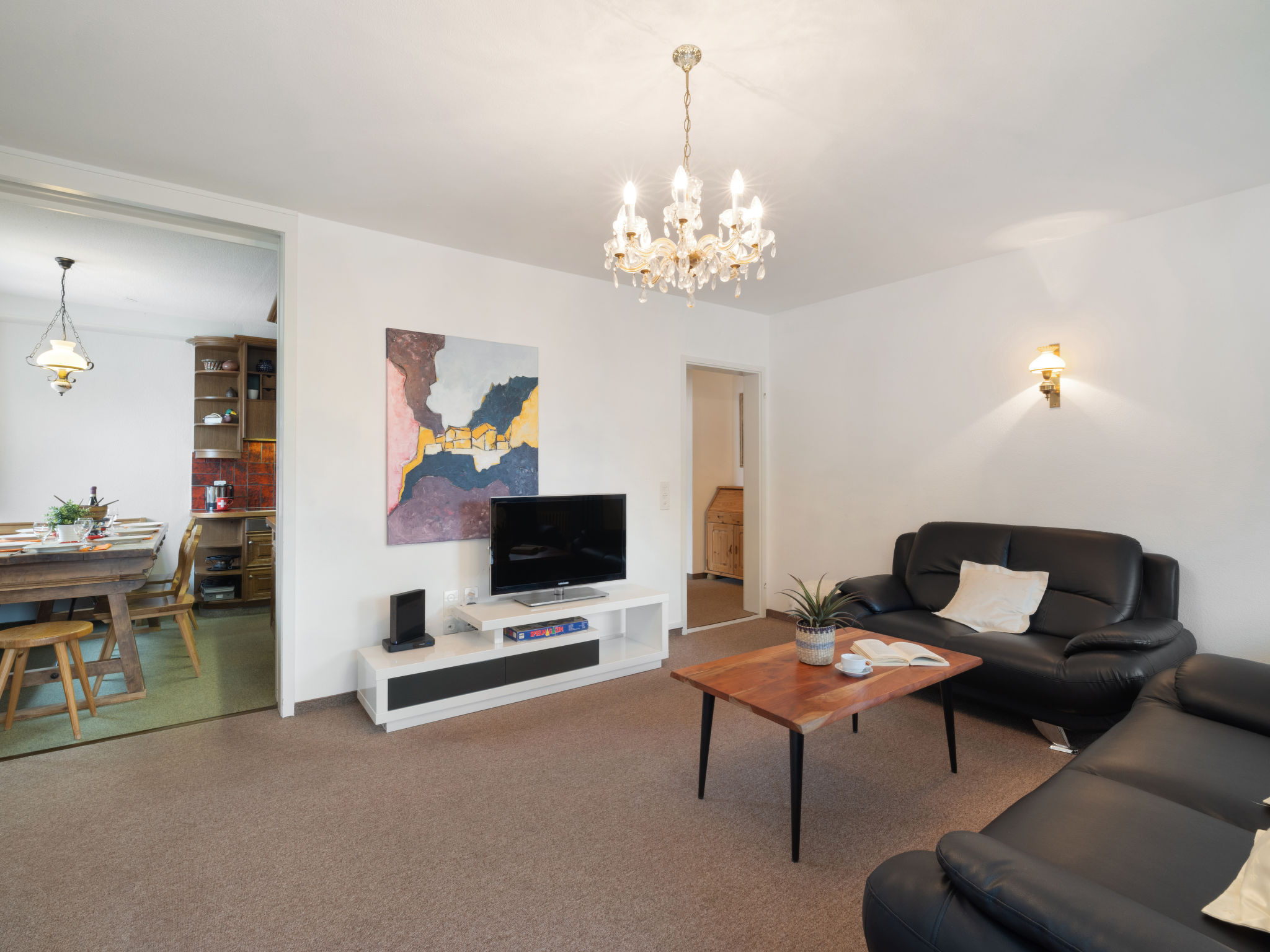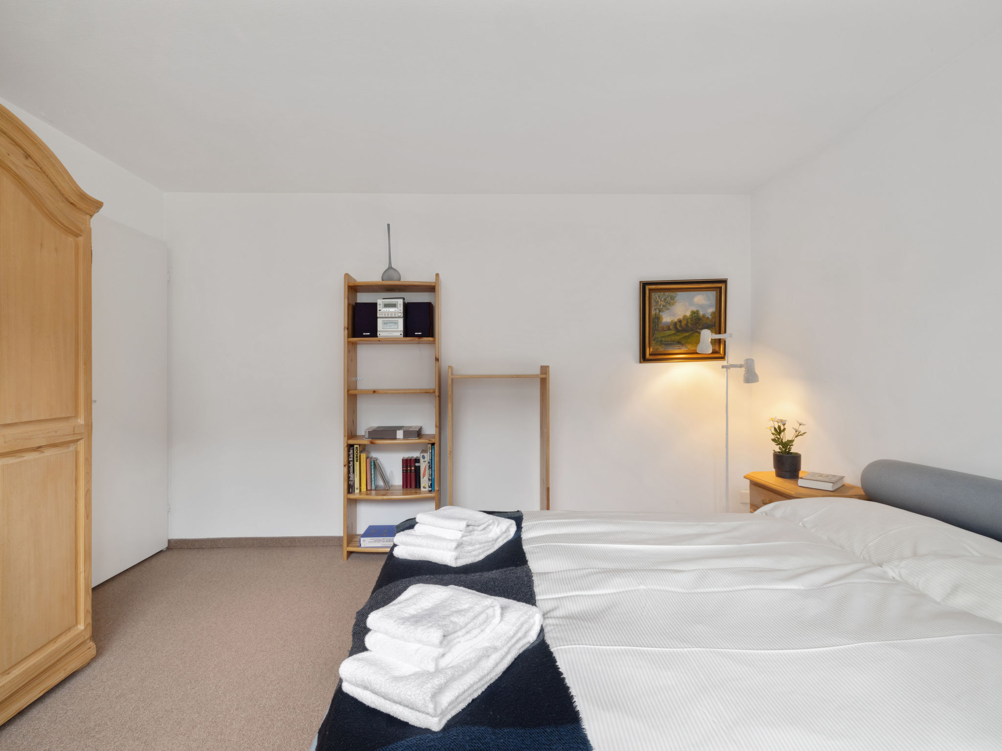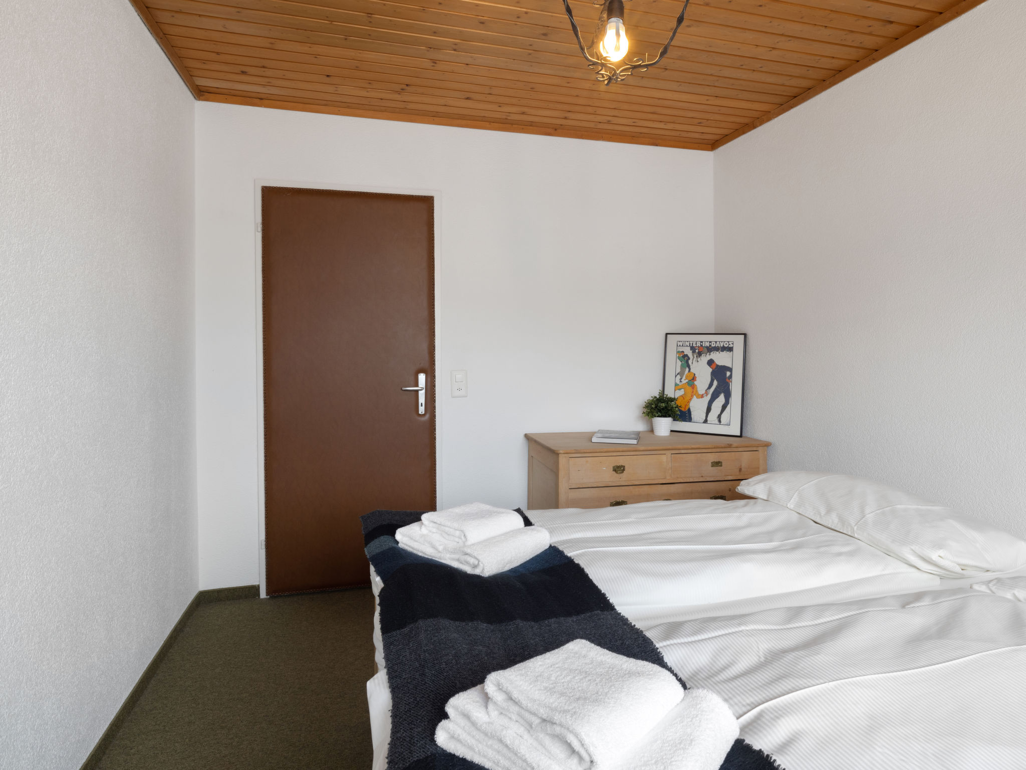 "Regina Apt Golfblick", 6-Zimmer-Wohnung 160 m2 im 4. Stock, Südostlage. Geräumig, einfach und zweckmässig eingerichtet: Wohn-/Esszimmer mit offenem Kamin (nur Deko), Kabel-TV (Flachbildschirm). Ausgang zum Balkon, Richtung Südosten. 1 Doppelzimmer 20 m2 mit 1 Doppelbett (2 x 90 cm, Länge 200 cm). 1 Zimmer 15 m2 mit 1 franz. Bett (1 x 140 cm, Länge 200 cm). 3 Zimmer, jedes Zimmer mit 1 Bett (90 cm, Länge 200 cm). Offene Küche (Backofen, Geschirrspüler, 4 Glaskeramikplatten, Toaster, Wasserkocher, Mikrowelle, elektrische Kaffeemaschine, Kapseln für die Kaffeemaschine (Nespresso) extra, Fondue Set (Chinoise, Käse)) mit Esstisch. Bad/WC, Dusche/WC, sep. WC, Doppelwaschbecken. Teppichboden. Balkon 15 m2, Südostlage. Balkonmöbel. Panoramasicht auf die Berge und das Städtchen. Zur Verfügung: Internet (WLAN, gratis). Bitte beachten: geeignet für Familien. Nichtraucher-Unterkunft, kein Parkplatz. Anstelle eines abgeschlossenen Schlafzimmers befinden sich manche Schlafplätze in einem offenen Bereich (Galerie, Nische etc.). 50047