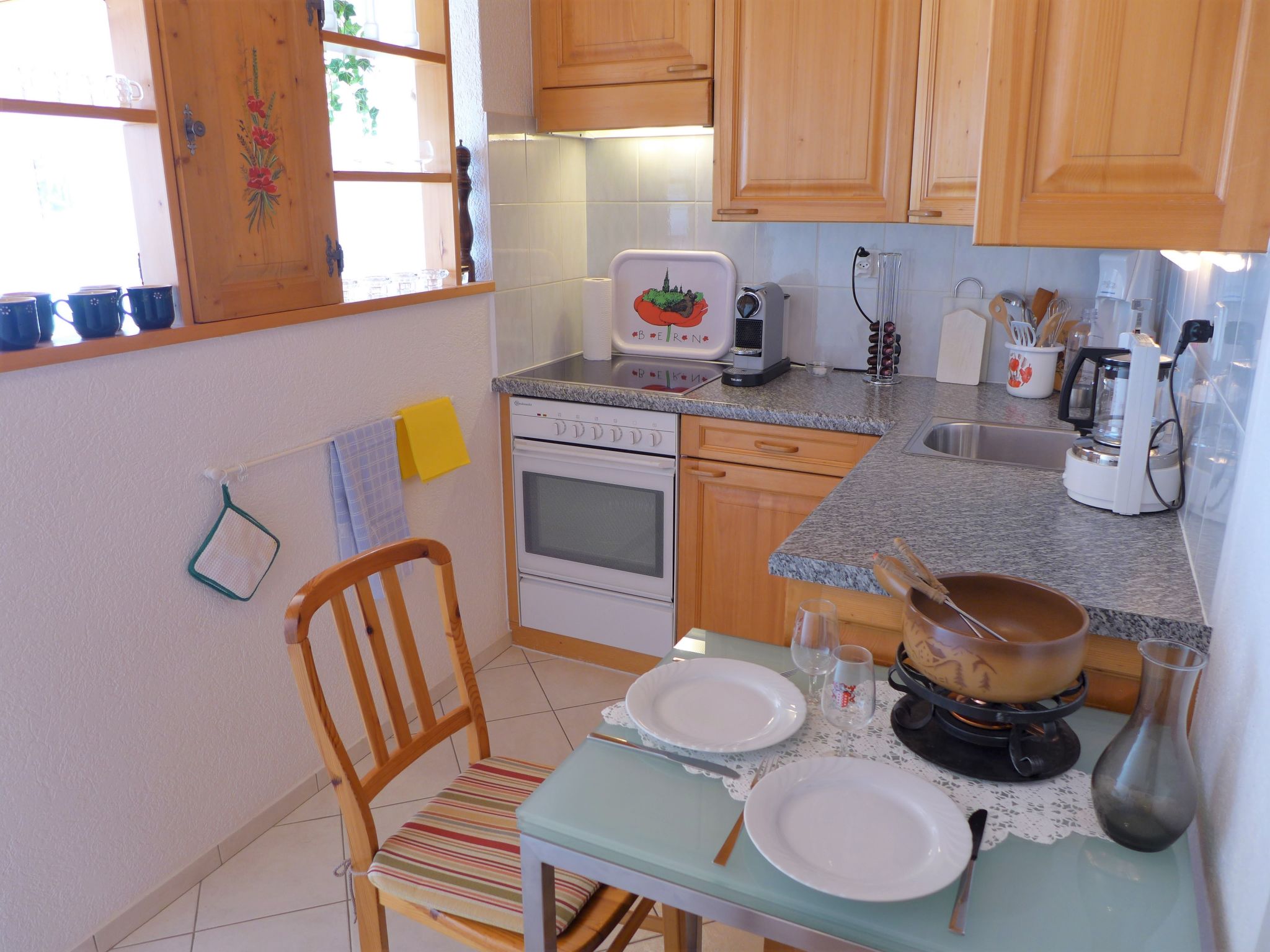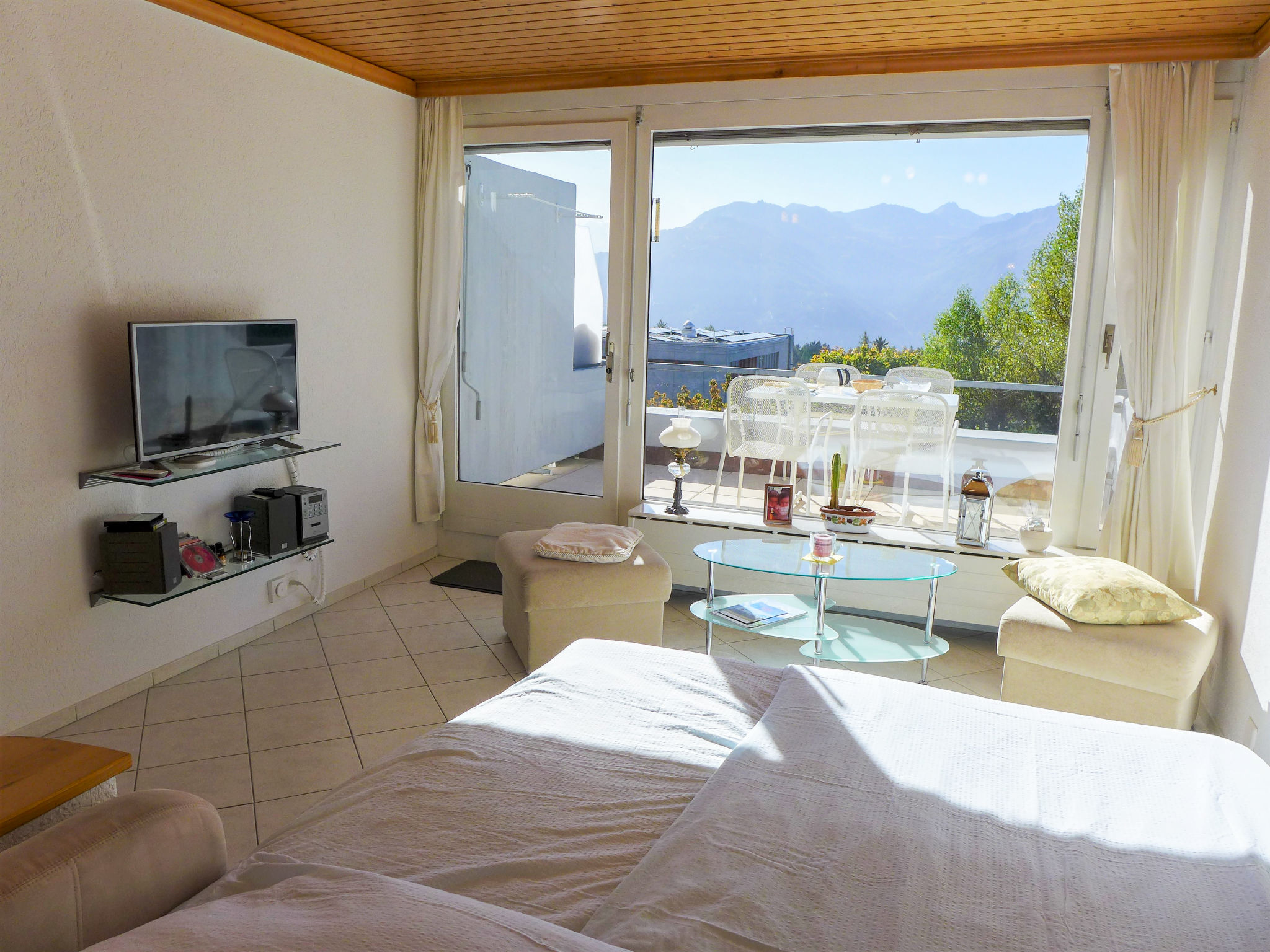 "Jeanne D'Arc Apt. B-11", 1-Zimmer-Studio 30 m2 im 1. Stock. Komfortabel und gemütlich eingerichtet: Wohn-/Schlafzimmer mit 1 Doppeldiwanbett (2 x 80 cm, Länge 200 cm), Kabel-TV, Flachbildschirm, Radio und CD. Ausgang zum Balkon. Kochnische (Backofen, 4 Glaskeramikplatten, Toaster, Wasserkocher, elektrische Kaffeemaschine, Kapseln für die Kaffeemaschine (Nespresso) extra, Racletteofen, Fondue Set (Käse)). Bad/WC. Balkon 8 m2, Südlage. Balkonmöbel. Schöne Sicht auf die Berge. Zur Verfügung: Haartrockner. Internet (Wireless LAN, gratis). Bitte beachten: Nichtraucher-Unterkunft. Waschmaschine und Trockner, im Gebäude/Bereich B, zur Verfügung.