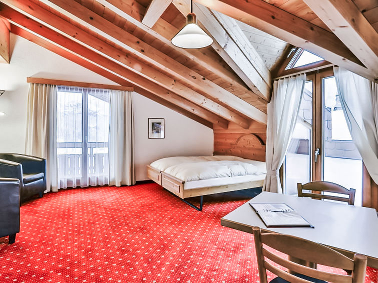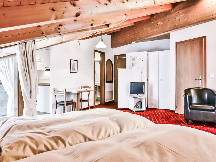 1-Zimmer-Wohnung 29 m2 im 4. Stock, Südlage. Wohn-/Schlafzimmer mit 2 Betten und Kabel-TV (Flachbildschirm). Offene Küche (Backofen, Toaster, Wasserkocher, elektrische Kaffeemaschine) mit Esstisch. Bad/WC. Balkon, Südlage Balkon, Westlage. Terrassenmöbel. Sicht auf die Berge und Eiger. Zur Verfügung: Haartrockner. Internet (Wireless LAN, gratis). Bitte beachten: Nichtraucher-Unterkunft. Maximal 1 Haustier/Hund erlaubt. Ein Fondue Set (Fleisch oder Käse) sowie ein Raclette Ofen kann an der Rezeption ausgeliehen werden.