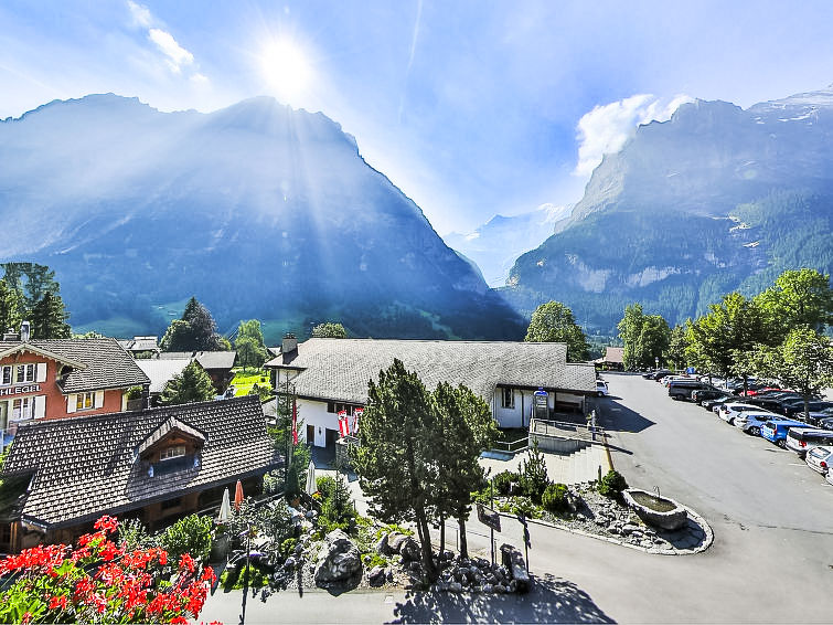 Residenz "Chalet Abendrot apARTments". Im Ortszentrum. Im Hause: Empfang, Aufenthaltsraum, Wireless LAN, Tischtennis, Billard, Spielzimmer, Fahrstuhl, Skiraum, Zentralheizung. Einkaufsservice vor Anreise möglich. Im Winter bitte Schneeketten mitbringen. Gemeinschaftsgarage (extra), öffentliche Parkplätze 200 m extra. Einkaufsgeschäft 400 m, Restaurant 10 m, Bushaltestelle "Firstbahn" 80 m, Bahnstation "Grindelwald Dorf" 800 m, Freibad 2.5 km, Hallenbad 600 m. Golfplatz (9 Loch) 2 km, Tennis 1 km, Minigolf 400 m, Sportzentrum 600 m, Bergeisenbahn 800 m, Gondelbahn 80 m, Skiverleih 50 m, Skibushaltestelle 80 m, Langlaufloipe 1 km, Kinderspielplatz 600 m. Bekannte Seen in der Umgebung sind gut erreichbar: Thuner-/Brienzersee 18 km. Bitte beachten: Der Besitzer akzeptiert keine Gruppen. Gratis Skibus. Die Nachbarschaft ist sehr lärmempfindlich. Ruhe und gutes Benehmen wird erwartet. Indisches Restaurant "Golden India" im Hause. Das im Chaletstil erbaute Appartementhaus bietet einen Jugendraum, ein Kinderspielzimmer, eine Autoeinstellhalle (Parkplatz CHF 98.00/Woche, Reservierung bei Ankunft). Modern-rustikale und gemütliche Wohnungen, die meisten mit grosszügigem Balkon oder Terrasse und wunderbarem Blick auf die Bergwelt. Bitte beachten: Beschränkte Anzahl Garagenplätze. Nicht vorreservierbar. Garagenhöhe und -breite: 12 Parklpätze 2.09x2.06 m, 15 Parkplätze 1.65x2.06 m. Max. 2000 kg.