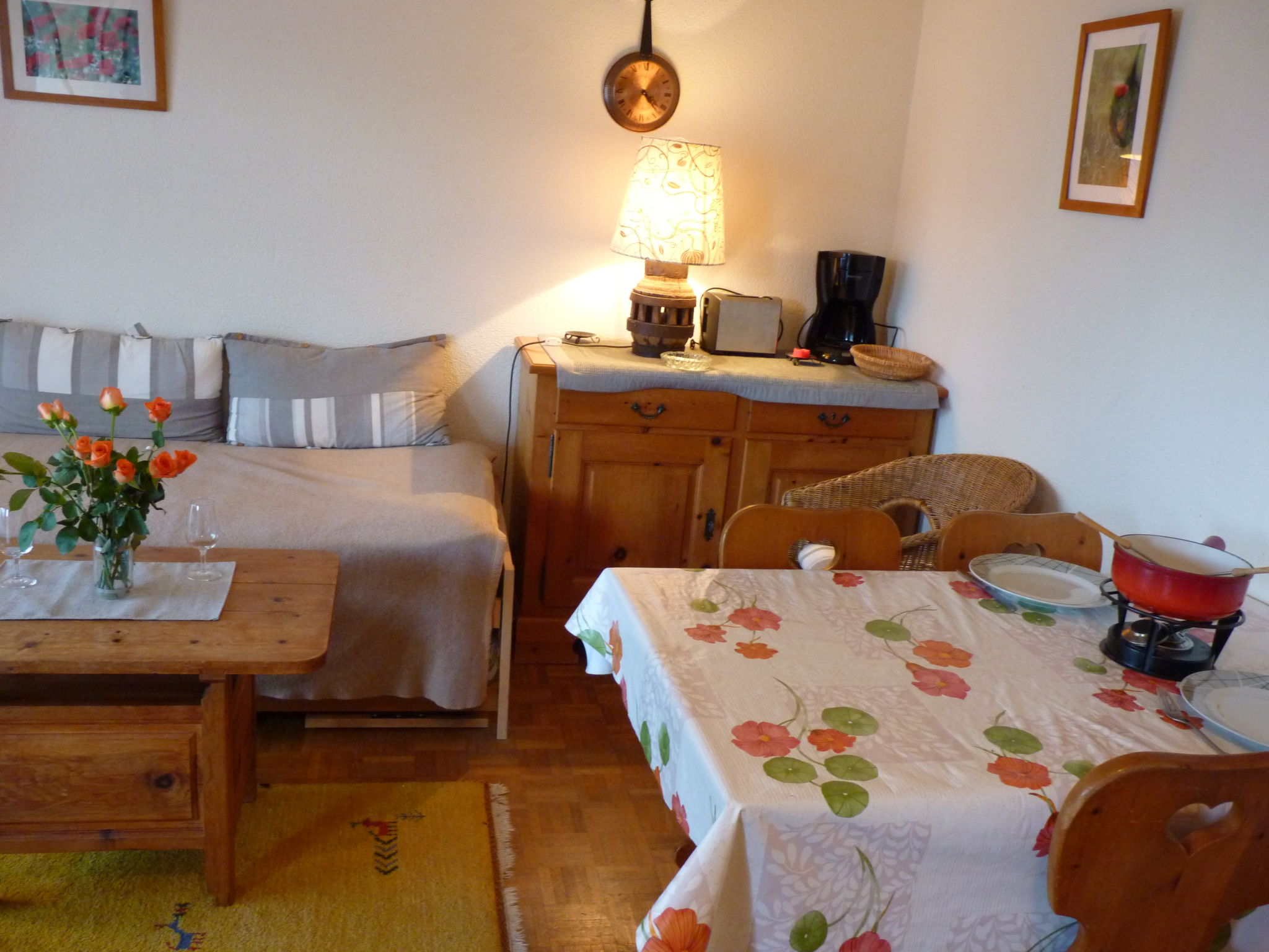 "Châtillon C 16", 2-Zimmer-Wohnung 30 m2, im Erdgeschoss, Südostlage. Einfach und zweckmässig eingerichtet: Wohn-/Esszimmer mit 2 Ausziehbetten (2 Pers. 2 x 90 cm), Esstisch, Kabel-TV, Flachbildschirm und Radio. Ausgang zum Garten, zur Terrasse. 1 Zimmer mit 2 Betten (90 cm). Kochnische (3 Kochplatten, Backofen). Bad/WC. Garten 40 m2, Südostlage. Terrassenmöbel, Liegestühle (2). Eingeschränkte Sicht auf die Berge. Parkplatz (eingezäunt). Bitte beachten: Nichtraucher-Unterkunft. Maximal 1 Haustier/Hund erlaubt.