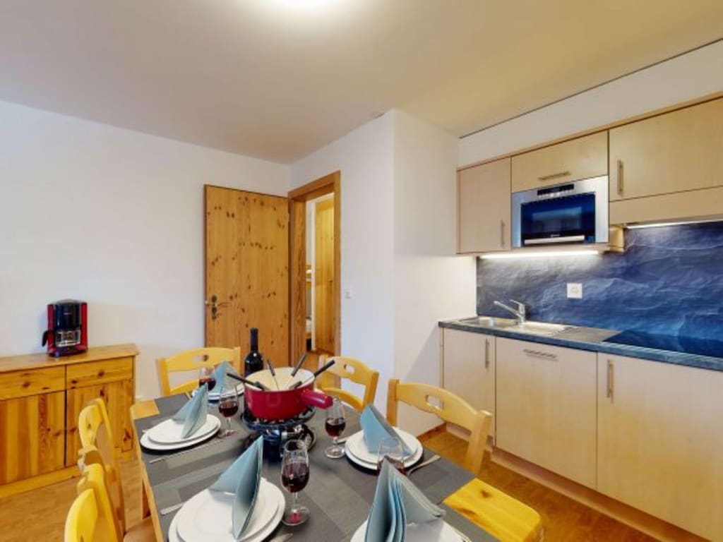 Willkommen in Ihrem gemütlichen alpinen Rückzugsort in Nendaz, im Herzen der 4 Vallées. Diese komfortable 3-Sterne-Wohnung bietet Platz für bis zu 6 Personen und liegt nur 100 Meter von der Seilbahn entfernt – ideal für Skiliebhaber. Die 40 m² große Wohnung verfügt über ein helles Wohnzimmer mit Balkon und herrlichem Blick auf das Tal und die Skipisten. Entspannen Sie sich vor dem Flachbild-Kabel-TV und nutzen Sie kostenloses WLAN. Die offene Küche ist komplett ausgestattet mit Mikrowelle, Geschirrspüler und Kaffeemaschine für all Ihre Kochbedürfnisse. Geschäfte und Freizeitaktivitäten sind nur einen kurzen Spaziergang entfernt und vereinen Komfort und Bequemlichkeit für einen unvergesslichen Alpenurlaub. Zur Schlafgelegenheit gehören ein Schlafsofa im Wohnzimmer, zwei Einzelbetten im Schlafzimmer und ein Etagenbett im Flur – ideal für Familien oder Gruppen. Das Badezimmer bietet sowohl eine Badewanne als auch eine Dusche. Zu den weiteren Annehmlichkeiten gehören eine Sauna (gegen Aufpreis), ein Skiraum, Wäschemöglichkeiten und Parkplätze im Freien auf Anfrage. Parkplätze in der Garage sind gegen Aufpreis verfügbar.