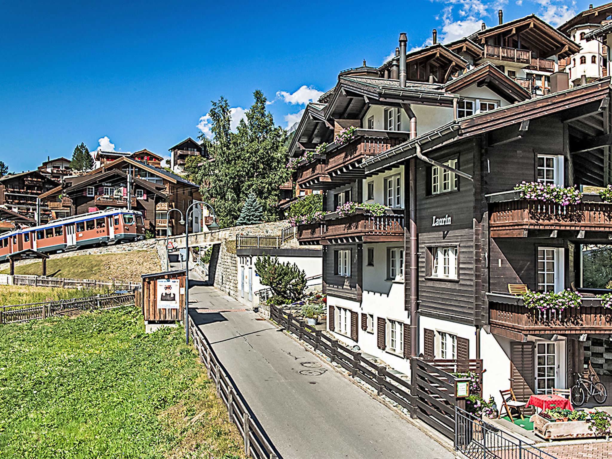 Kleines Mehrfamilienhaus "Laurin", auf 3 Stockwerken. Im Ortsteil Steinmatte, 550 m vom Zentrum, ruhige Lage. Im Hause: Skiraum, Zentralheizung. Lebensmittelgeschäft 350 m, Supermarkt 400 m, Restaurant 200 m, Bäckerei 350 m, Zentrum zu Fuss in 7 Minuten erreichbar, Bushaltestelle "Kirchbrücke" 350 m, Bahnstation "Bahnhof Zermatt" 700 m. Skiverleih 250 m, Skibushaltestelle 350 m, Skischule 500 m, Eisfeld, Kinderspielplatz 700 m. Bitte beachten: kein Fahrstuhl vorhanden. Weitere Unterkünfte sind buchbar.