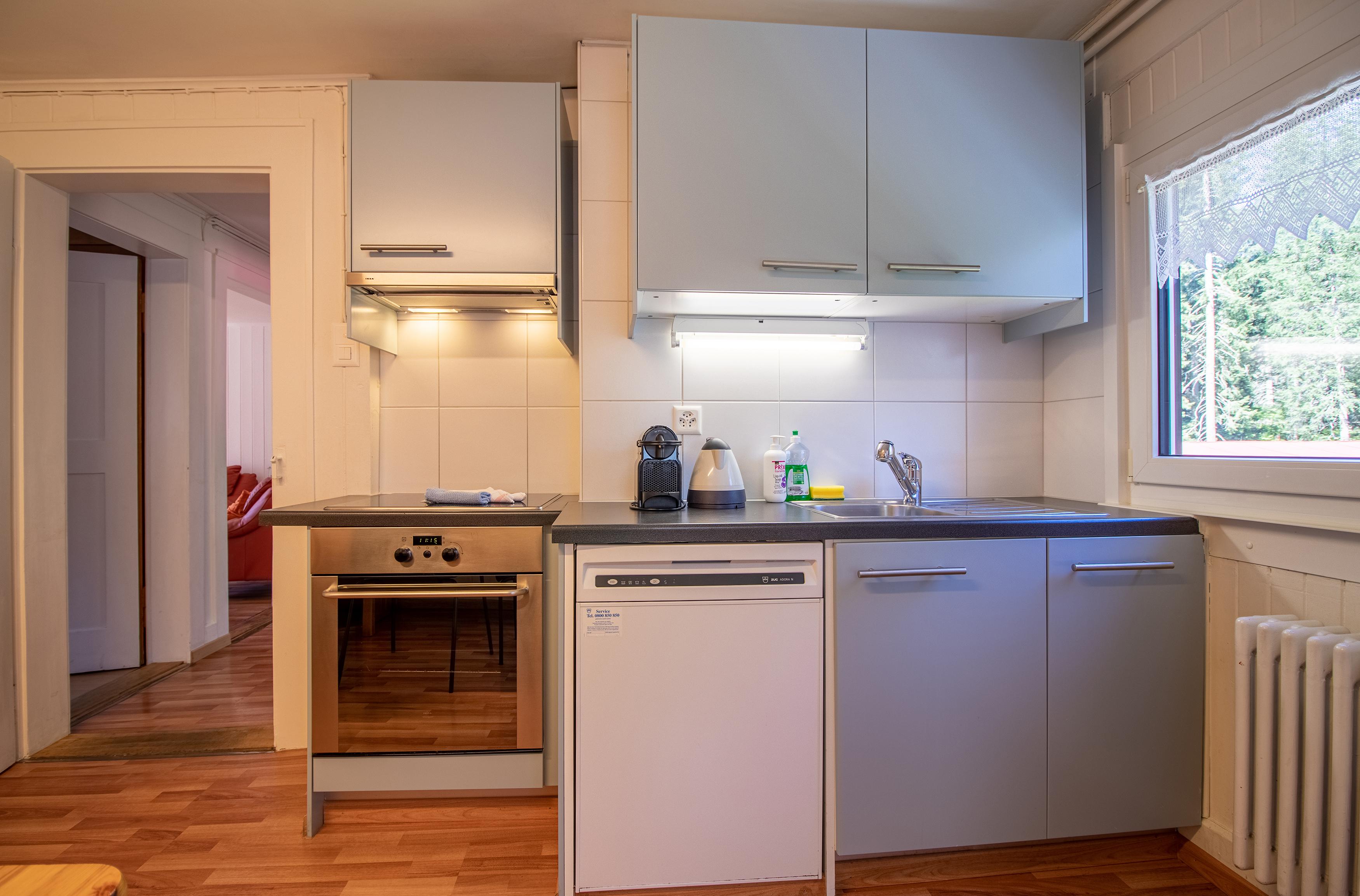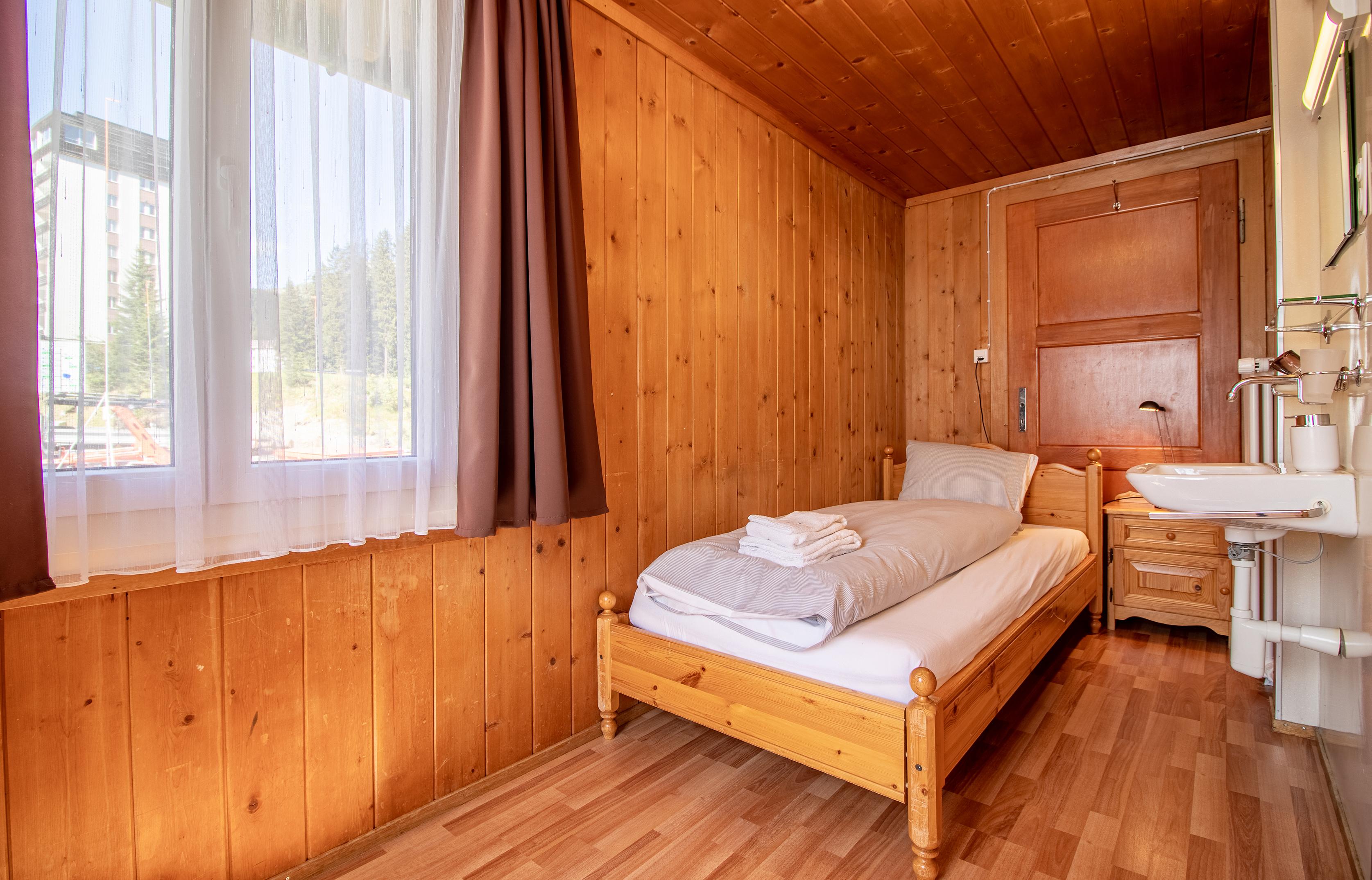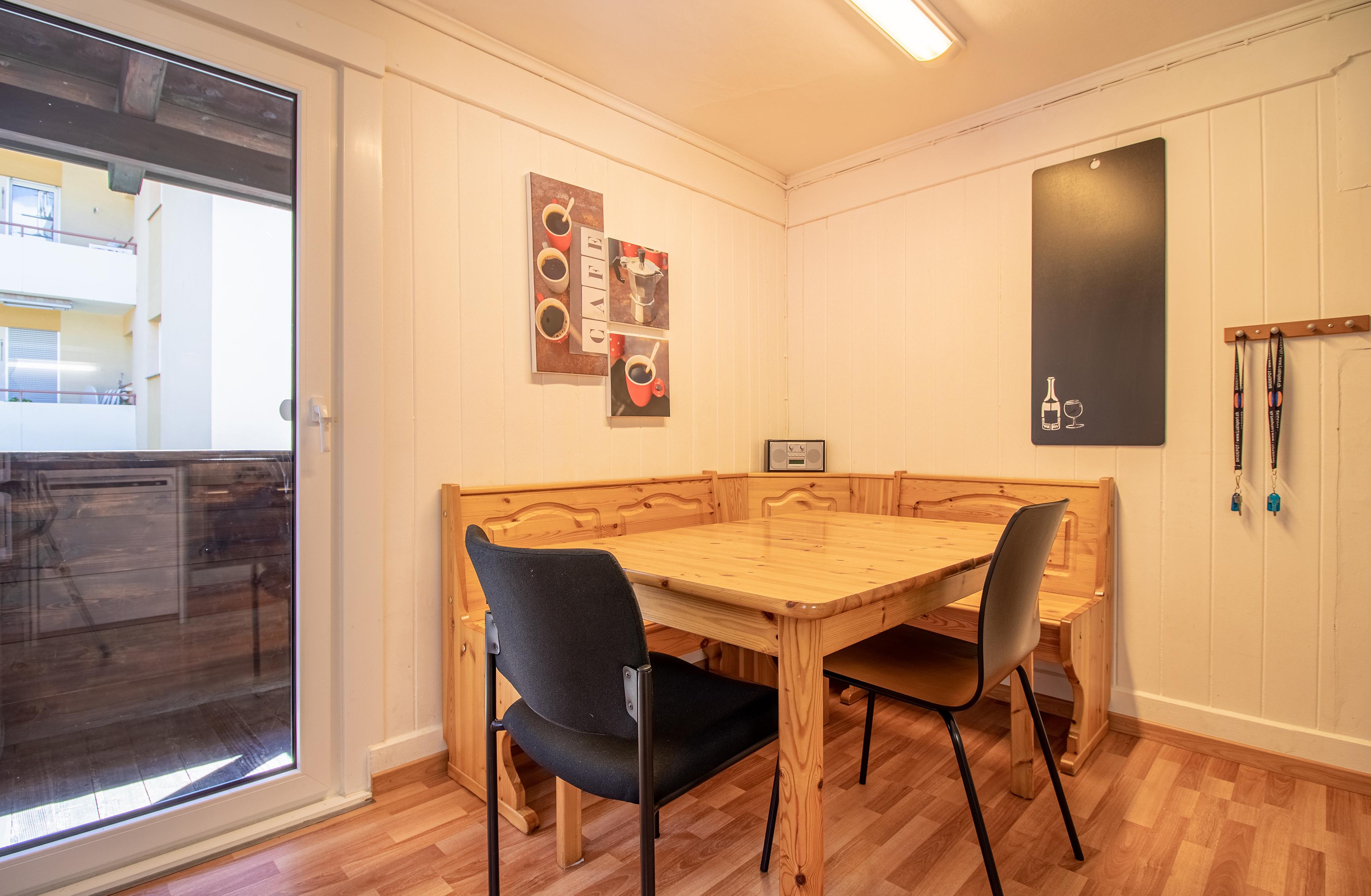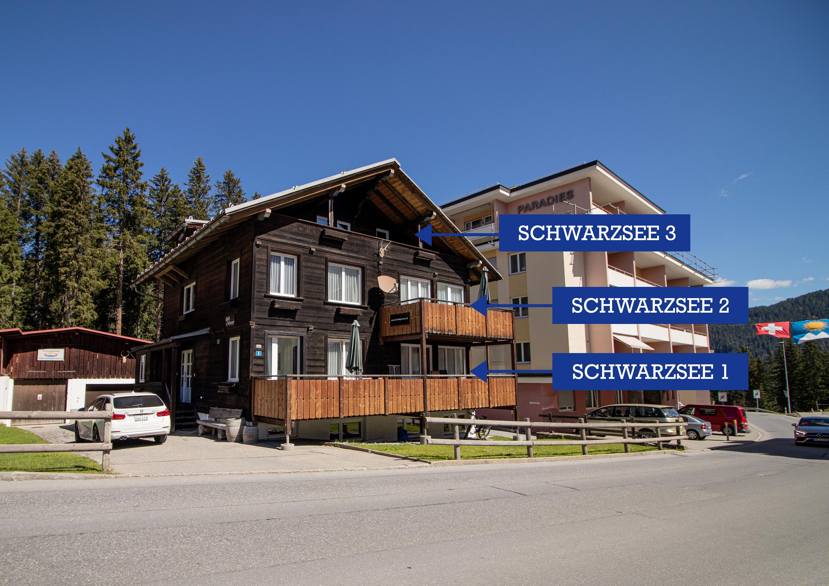 Die geräumige 4.5-Zimmer-Wohnung (75m2) befindet sich im 1. Stock eines freistehenden Holzchalets mit 3 separaten Wohnungen. Das Chalet Schwarzsee befindet sich direkt am Dorfeingang von Arosa und somit in der Nähe vom Obersee und den Einkaufsmöglichkeiten. Die nächste Bushaltestelle ist nur wenige Meter zu Fuss entfernt.