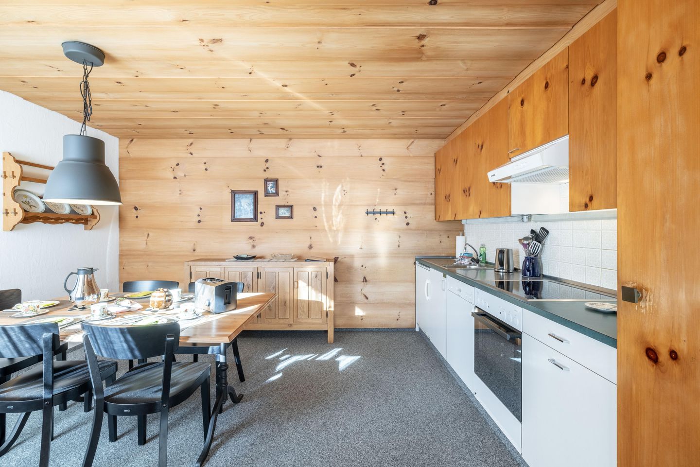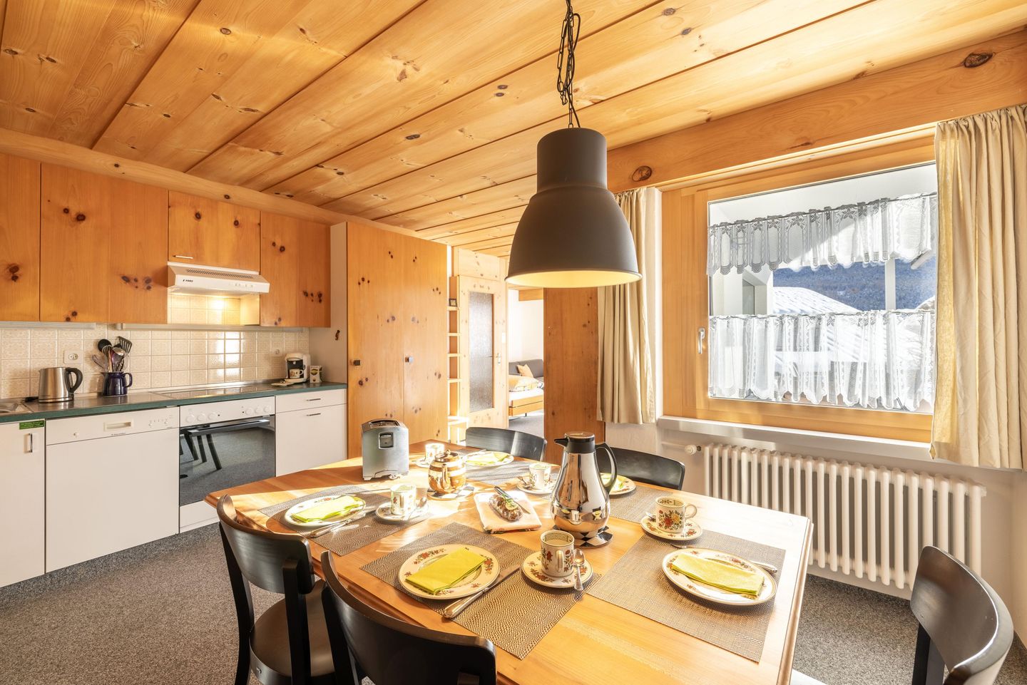 Die Ferienwohnung Chasa Val Parterre verfügt über eine Küche mit Geschirrspülmaschine, Herdplatte, Fondue und Raclette Garnitur, Doppelschlafzimmer, Einzelbett, Dusche/WC/Lavabo, Tassimo-Kaffeemaschine, Gratis-WLAN, aussen Parkplatz u.v.m.