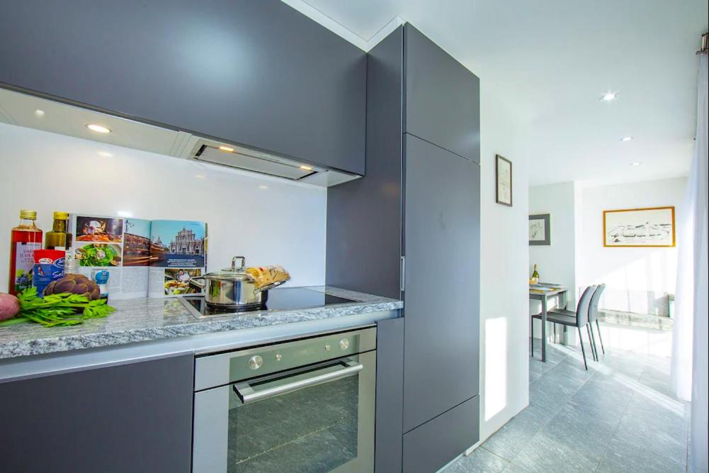 Diese Ferienwohnung mit einer Terrasse und Bergblick bietet 1 Schlafzimmer, ein Wohnzimmer, einen Flachbild-TV, eine gut ausgestattete Küche mit einem Kühlschrank und einem Geschirrspüler sowie 1 Badezimmer mit einer Dusche. In dieser Ferienwohnung werden Handtücher und Bettwäsche angeboten.