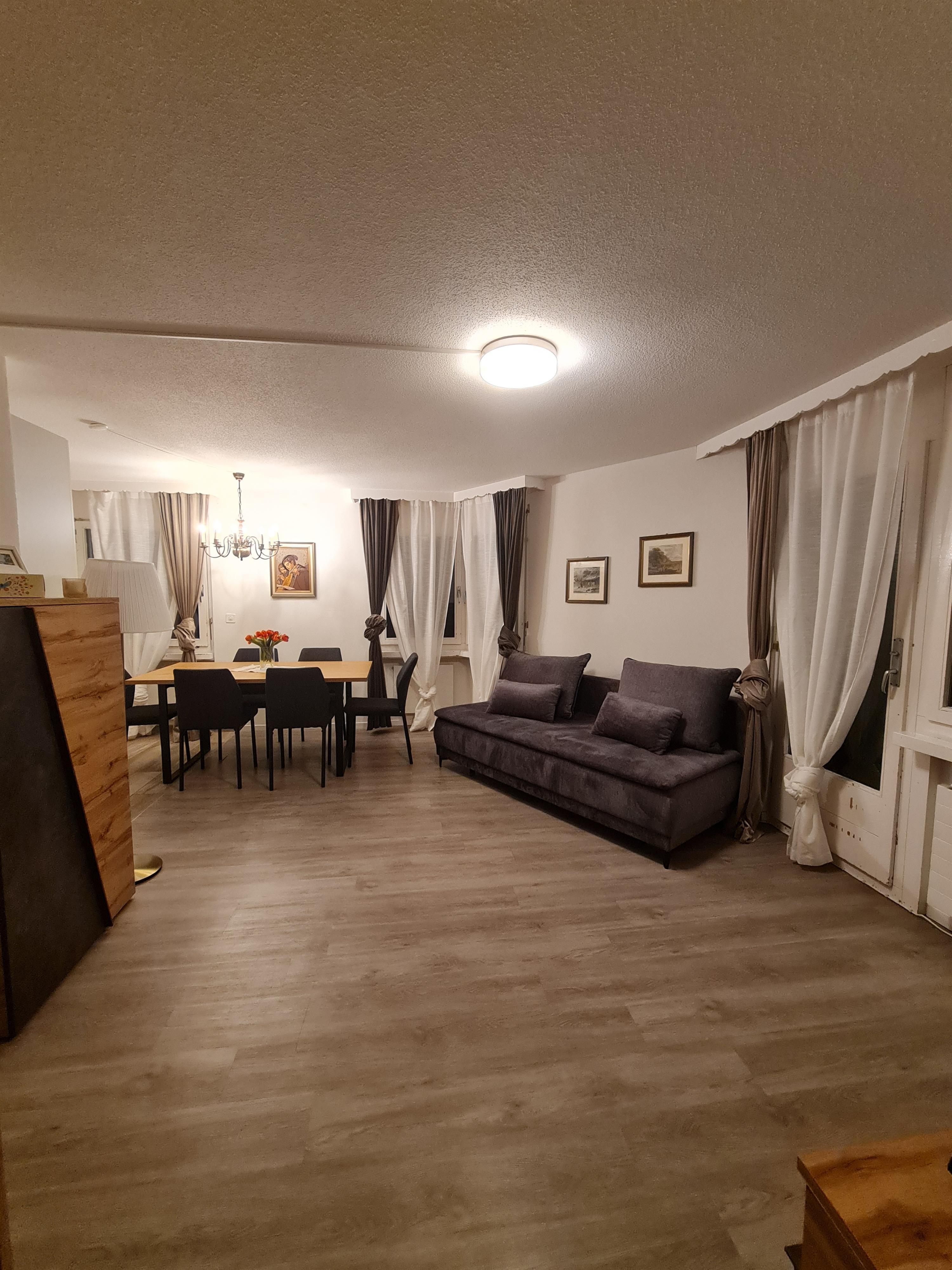Komplett renovierte (2019), helle 3.5-Zimmer-Wohnung (ca. 55m2) im 1. Obergeschoss eines Mehrfamilienhauses; für bis zu 6 Personen zuzüglich Kind oder Baby; Balkon mit Balkontisch und 2 Stühlen; Parkplatz auf Anfrage; 2 Schlafzimmer mit Doppelbett; 1 Wohnzimmer mit ausziehbarem Sofa (bis 2 Personen); Esstisch mit Stühlen; Flachbild-Kabel TV, WLAN inkl.; 1 Bad/WC mit Badewanne; gut ausgestattete Wohnküche mit Wasserkocher, Kaffeemaschine, Glaskeramik-Kochfeld, Backofen und Kühlschrank, Geschirrspüler, Fondue, Toaster; Babybett (Reise-Babybett) ist gegen pauschalen Aufpreis vorhanden; das Haus Agrimonia steht an einer tollen Lage; in nur 4 Minuten zu Fuss erreichen Sie das Bolgen Jakobshorn Skigebiet; für Wanderer ist man in 2-3 Minuten zu Fuss am Landwasser Fluss auf dem Spazierweg; Bahnhof und Einkaufmöglichkeiten sind 5-6 Minuten entfernt; Haustiere auf Anfrage; Nicht-Raucher Wohnung.