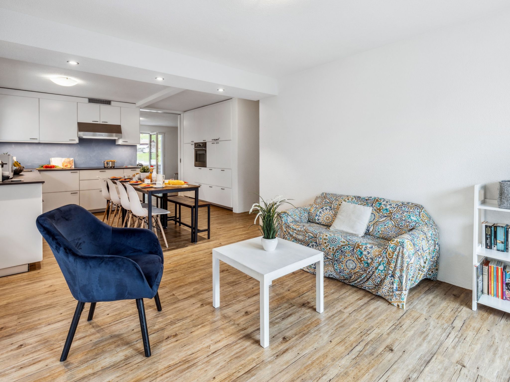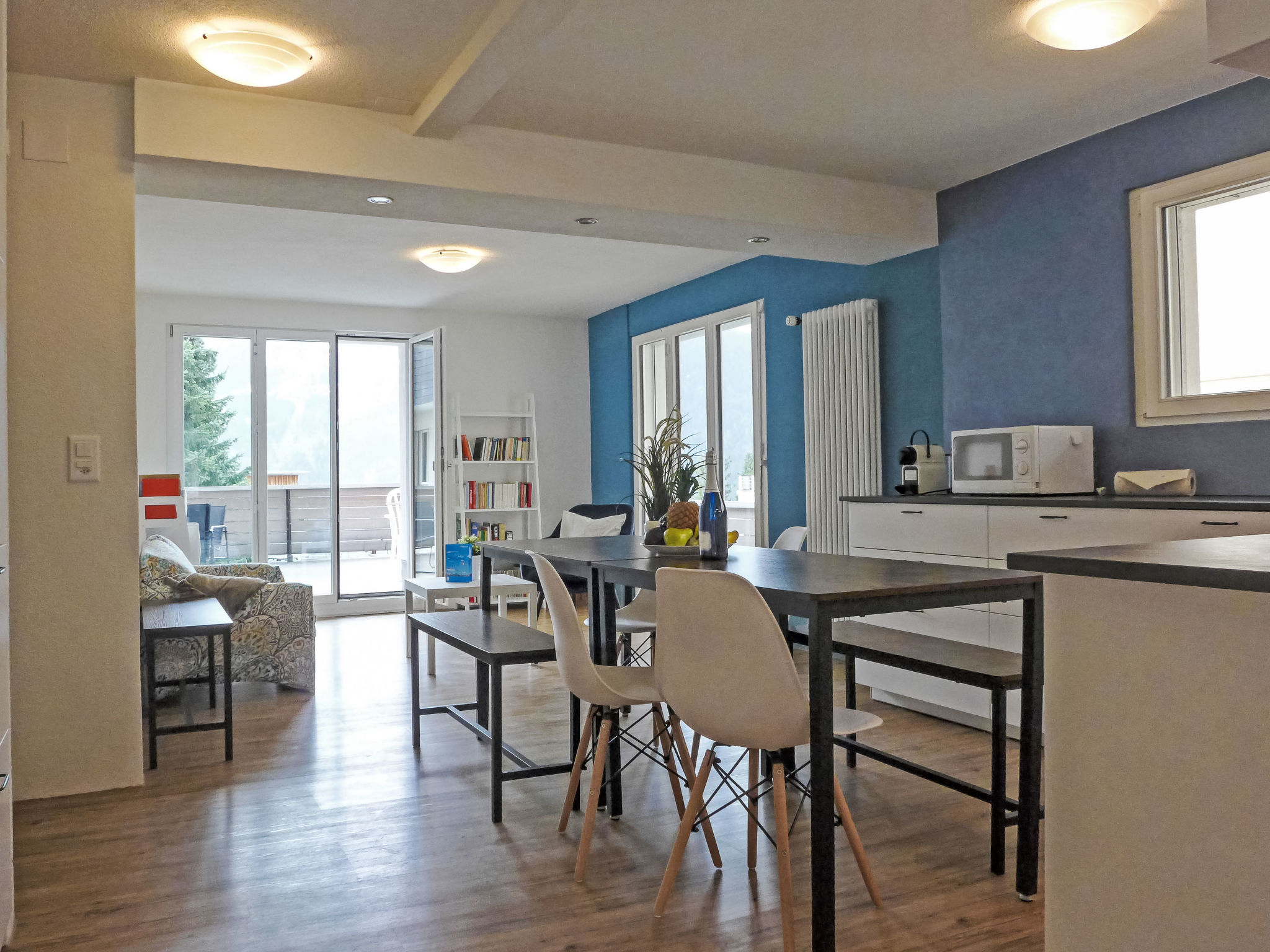 "BeKb-Gebäude Apt. 01", 4-Zimmer-Wohnung im 1. Stock. Geräumig und hell, komfortabel und modern eingerichtet: grosses Wohn-/Esszimmer 120 m2. Ausgang zur Terrasse. Wohn-/Schlafzimmer mit 2 Betten (80 cm, Länge 200 cm), TV. Ausgang zum Balkon. 1 Doppelzimmer mit 2 Betten (90 cm, Länge 200 cm), Dusche/WC. 1 Doppelzimmer mit 2 Betten (90 cm, Länge 190 cm). Grosse Wohnküche (Backofen, Geschirrspüler, 4 Induktionskochplatten, Toaster, Wasserkocher, Mikrowelle, elektrische Kaffeemaschine, Kapseln für die Kaffeemaschine (Nespresso) extra, Racletteofen, Fondue Set (Chinoise, Käse)). Dusche/WC. Balkon, Ostlage, grosse Terrasse, Westlage. Terrassenmöbel. Schöne Sicht auf die Berge und die Ortschaft. Zur Verfügung: Haartrockner. Internet (WLAN, gratis). Bitte beachten: geeignet für Familien. Nichtraucher-Unterkunft.
