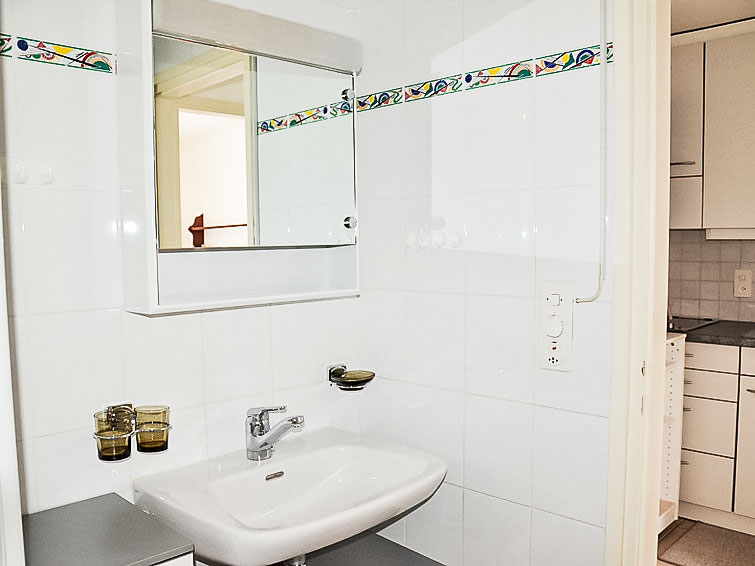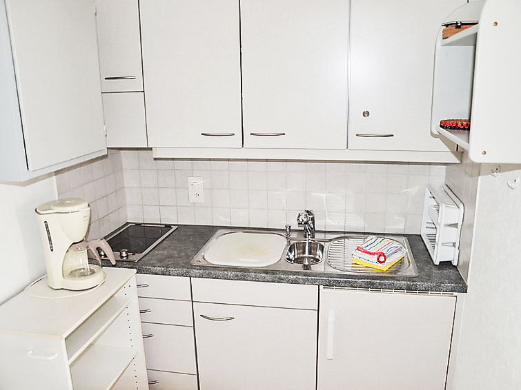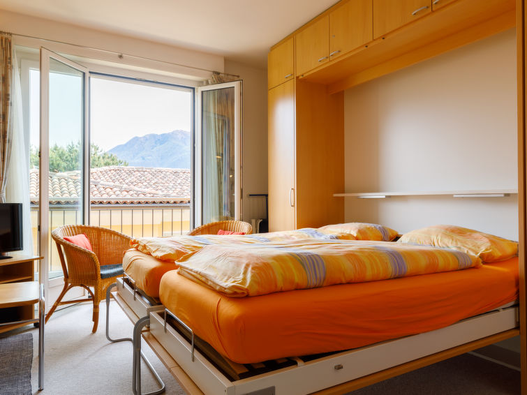 1-Zimmer-Wohnung 29 m2 im 2. Stock. Hell, komfortabel und gemütlich eingerichtet: Wohn-/Esszimmer mit 2 Wandschrankbetten (90 cm, Länge 200 cm), Esstisch, Kabel-TV, Flachbildschirm, Radio, CD und Stereoanlage. Kochnische im Eingang (2 Glaskeramikplatten, elektrische Kaffeemaschine, Kapseln für die Kaffeemaschine (Nespresso) extra). Dusche/WC. Heizung. Kleiner Balkon. Sicht auf die Berge und die Landschaft. Zur Verfügung: Internet (WLAN, gratis). Bitte beachten: Nichtraucher-Unterkunft. Maximal 1 Haustier/Hund erlaubt. NL-00012324