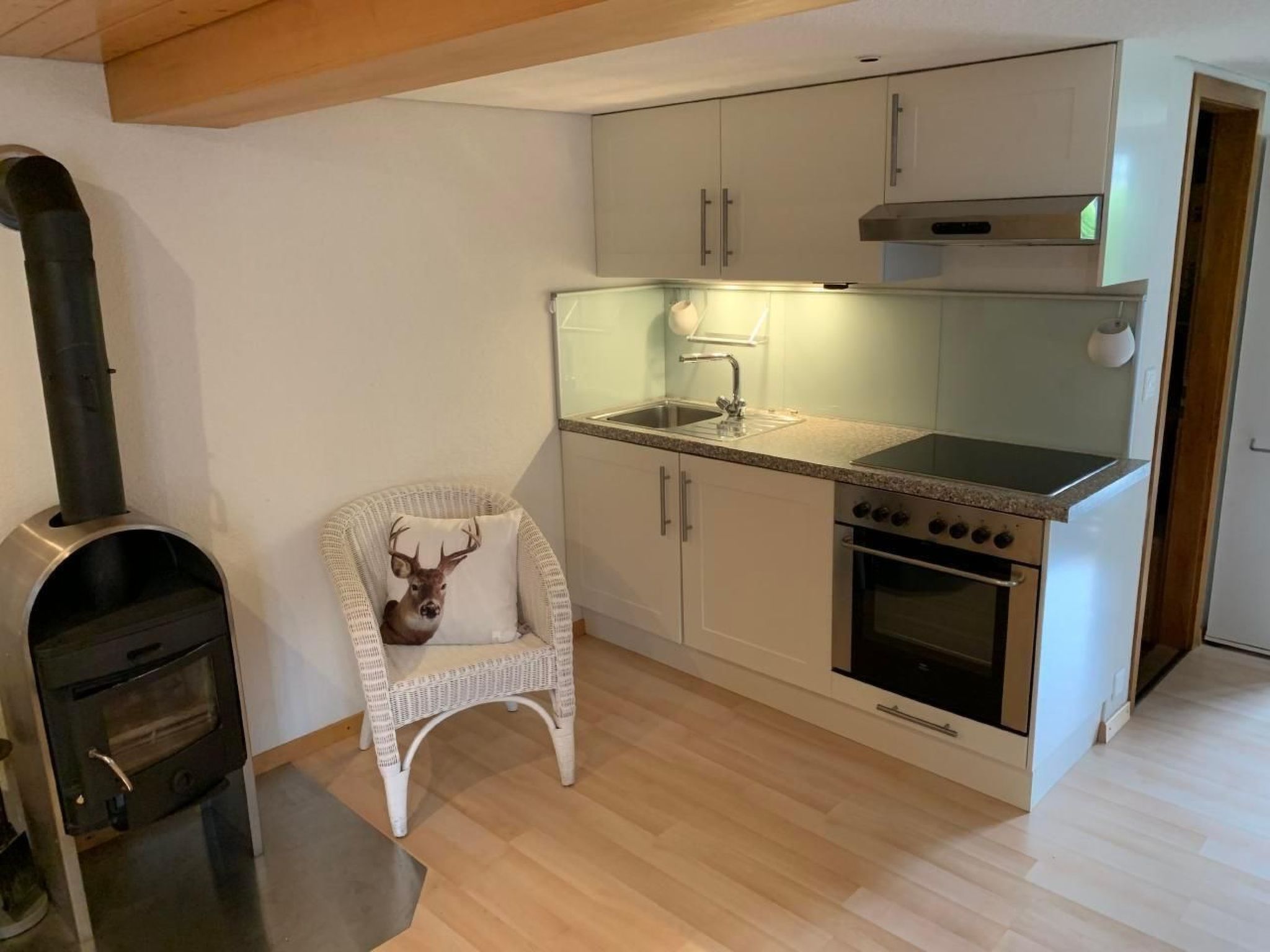 Im Erdgeschoss des traditionellen Chalet Fluehblüemli befindet sich das wunderschöne Studio. Der gemütliche Wohnraum ist nebst moderner Bodenheizung mit einem gemütlichen Ofen ausgestattet. Eine gut ausgestattete Küchenecke ergänzt das heimelige Studio. Das Bad wurde im Mai 2020 komplett saniert. Die Wohnung ist mit viel Charme ausgestattet. Ein moderner Flach TV mit UPC Box und gratis Gäste W-Lan lassen keinen Wunsch offen. Der gemeinschaftliche Terrassensitzplatz mit Cheminée bietet einen phantastischen Blick auf die Eigernordwand und die Berge. Ein Parkplatz steht direkt neben dem Haus zur freien Verfügung.