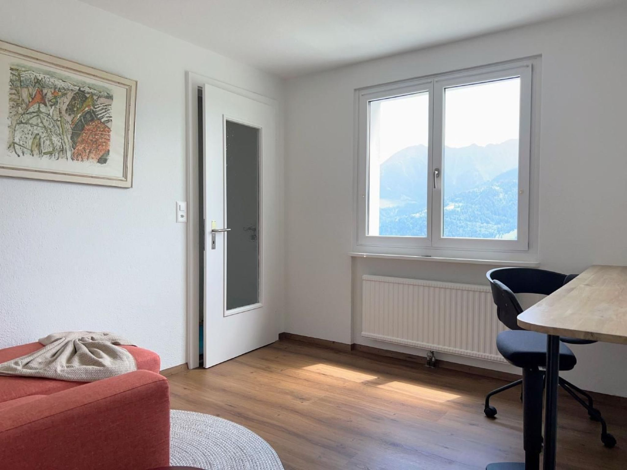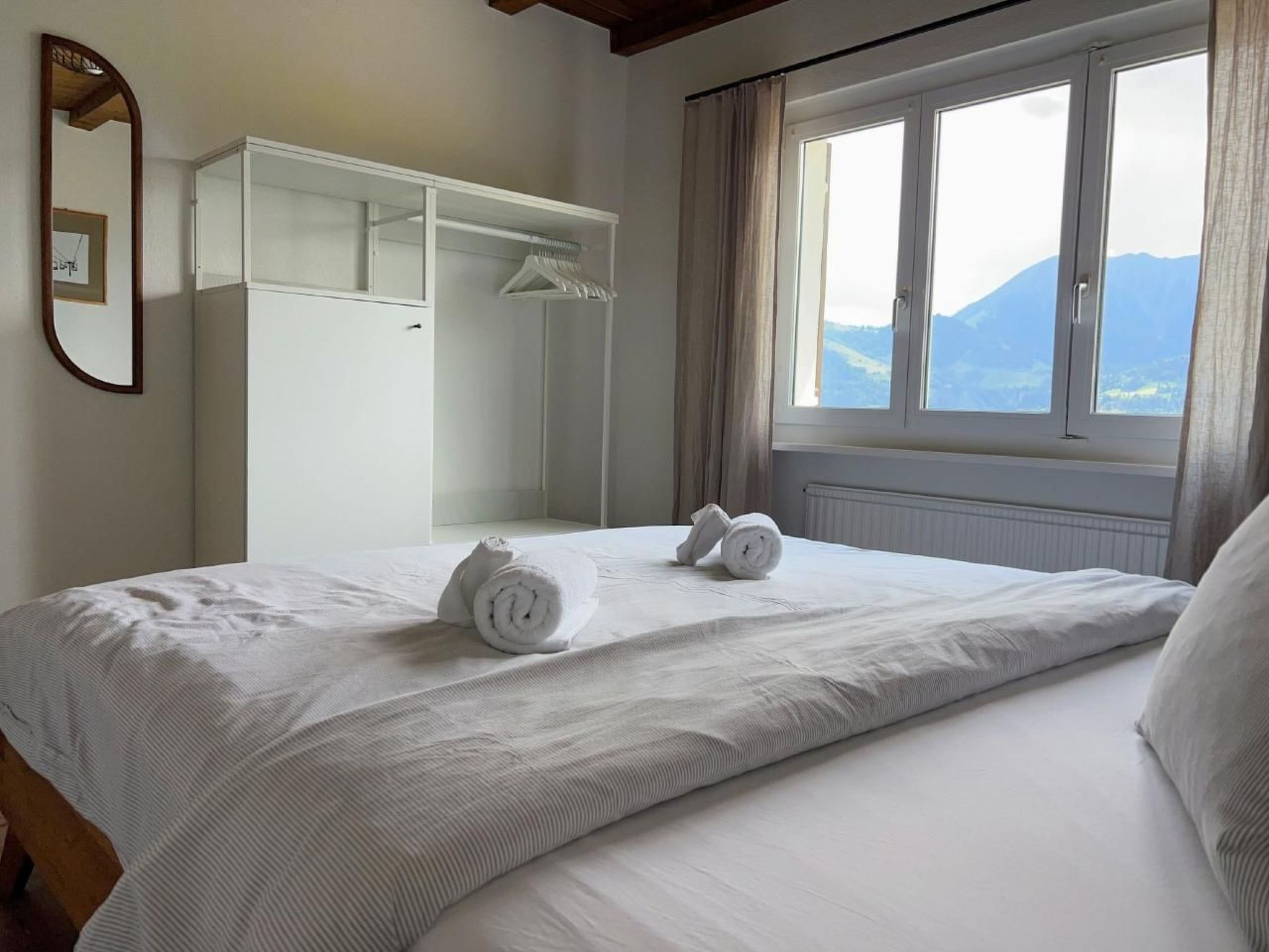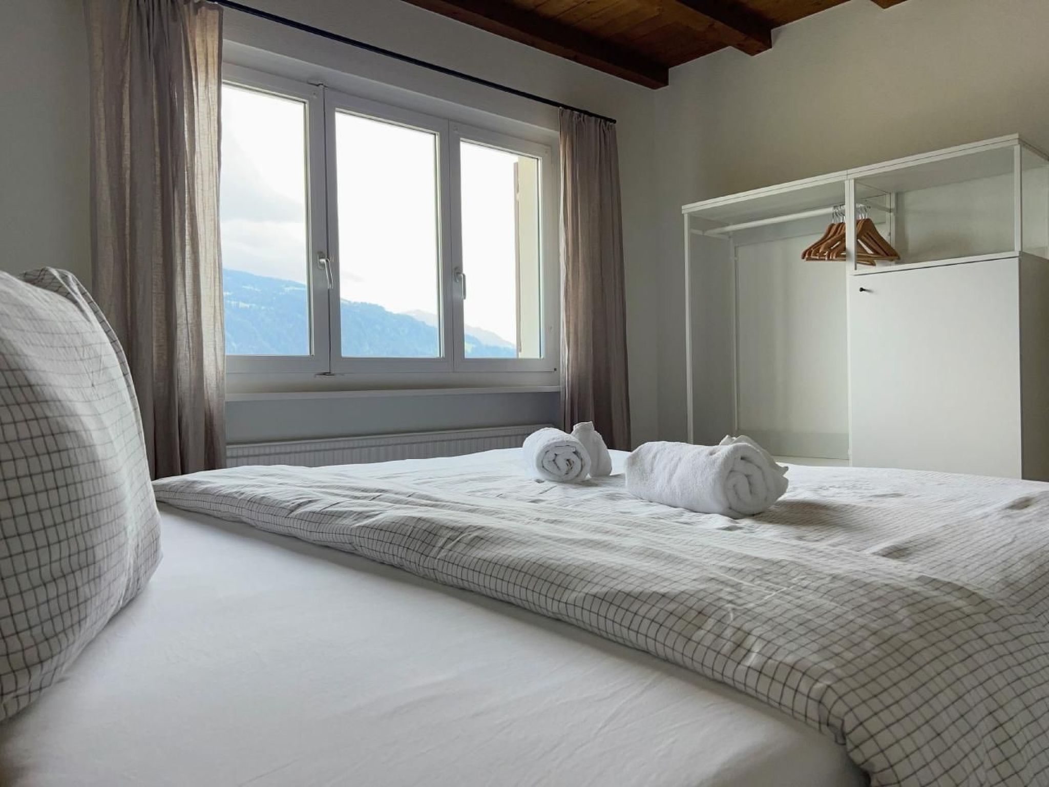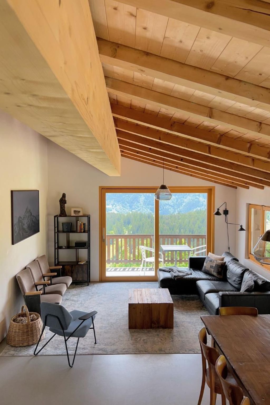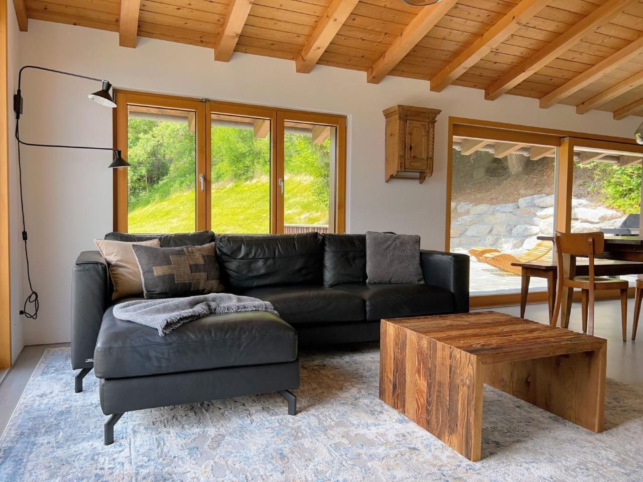 4 der 5 Schlafzimmer haben Bergblick - und das einzige Geräusch, das Sie nachts hören werden, sind vielleicht Kuhglocken. Der große, offene Ess-/Sitzbereich lädt zum gemütlichen Beisammensein mit bis zu 10 Personen an einem Tisch ein - oder verteilt auf den Raum und den Balkon/Terrasse.