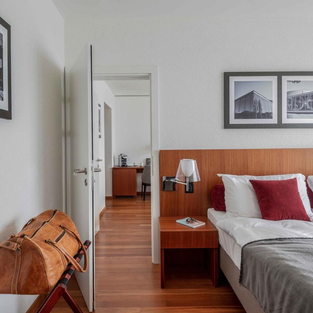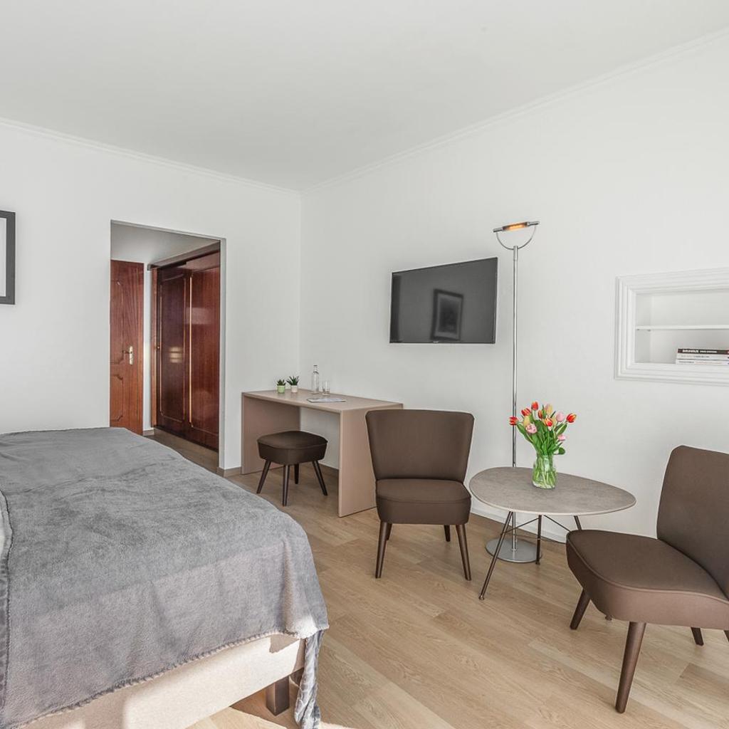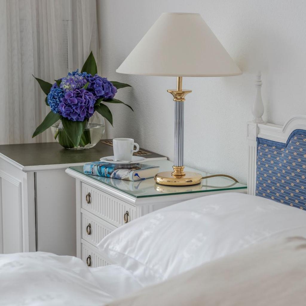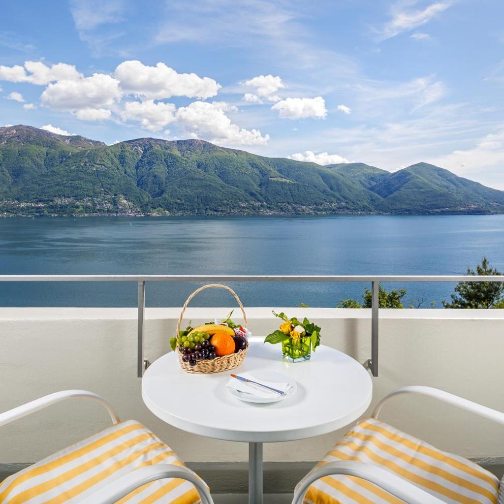 Die Zimmer verfügen alle über eine Minibar, Sat-TV und ein Badezimmer mit Bademänteln und einem Haartrockner. Alle Zimmer im Hauptgebäude bieten einen Balkon mit Panoramablick auf den See.
