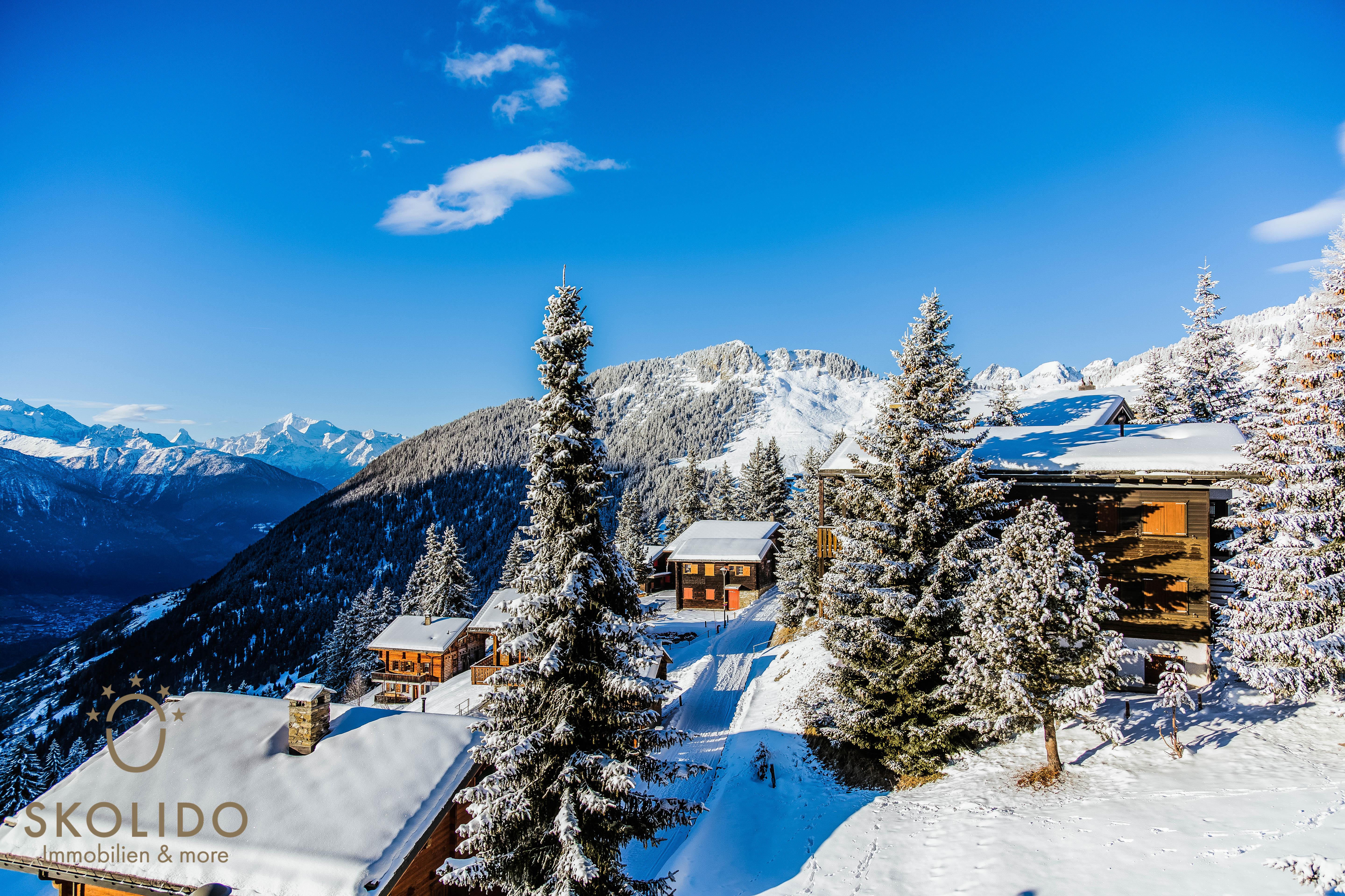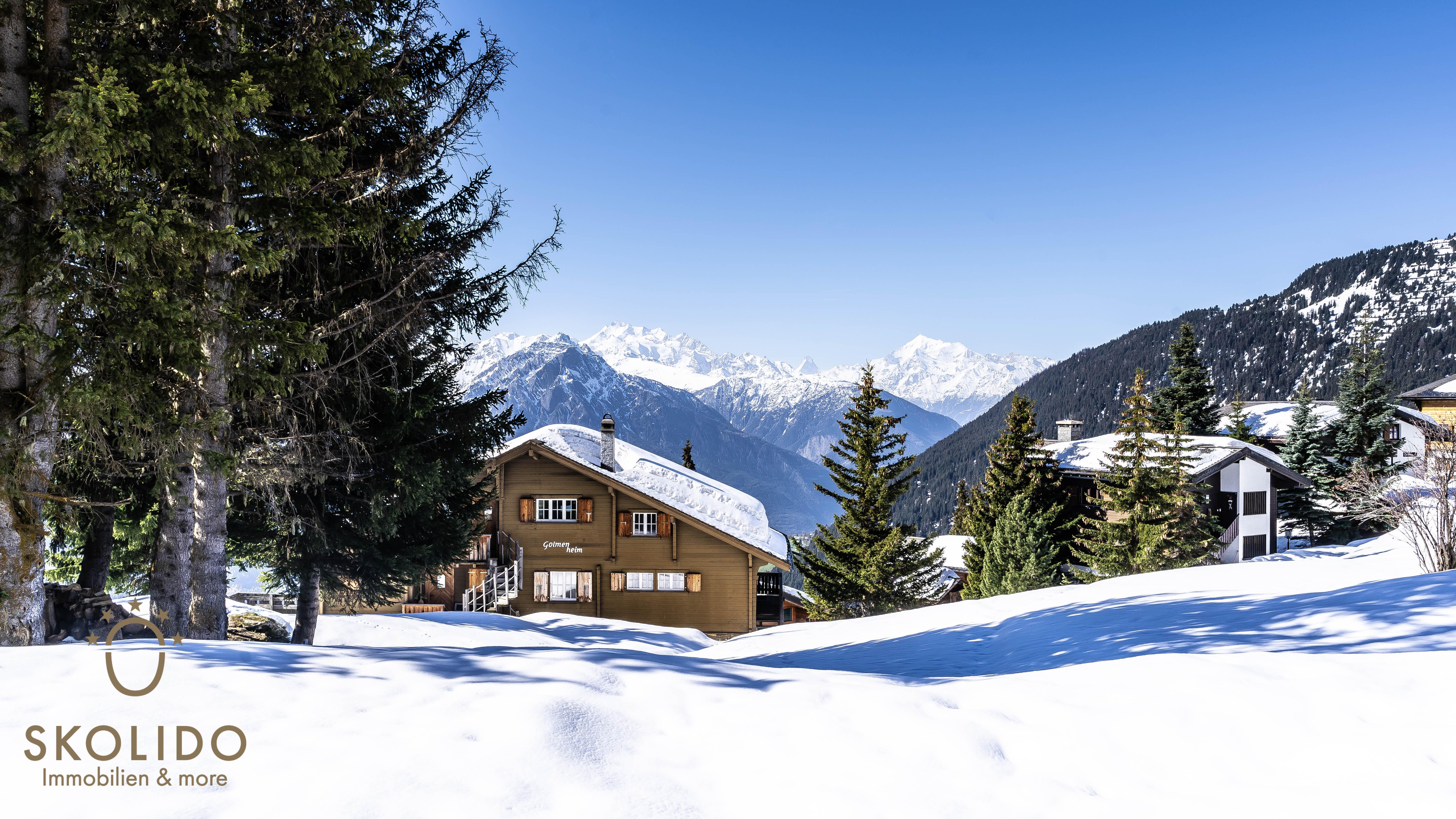 Das heimelige Chalet Golmenheim liegt auf der autofreien Riederalp im Gebiet Golmenegg an sehr sonniger und idyllischer Lage auf rund 1980 Metern Höhe. Das grosszügige Grundstück bietet viel Ruhe und eine offene Aussicht auf die umliegende Bergwelt. Im Chalet befinden sich mehrere Ferienwohnungen unterschiedlicher Grösse, die durch ihre gute Ausstattung und den hohen Holzanteil eine warme, alpine Atmosphäre vermitteln. Allen Gästen steht ein gemeinsamer Skikeller mit Trocknungsraum zur Verfügung. Im Winter ist ein direkter Ski-in Zugang möglich, während die nahe Aletschpromenade eine schnelle Verbindung zur Gondelbahn Moosfluh bietet. Im Sommer ist das Chalet ein idealer Ausgangspunkt für Wanderungen und Mountainbike-Touren. Von den Wohnungen aus geniesst du einen freien Panoramablick über das Rhonetal bis zu den höchsten Gipfeln des Wallis.