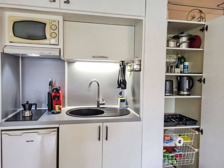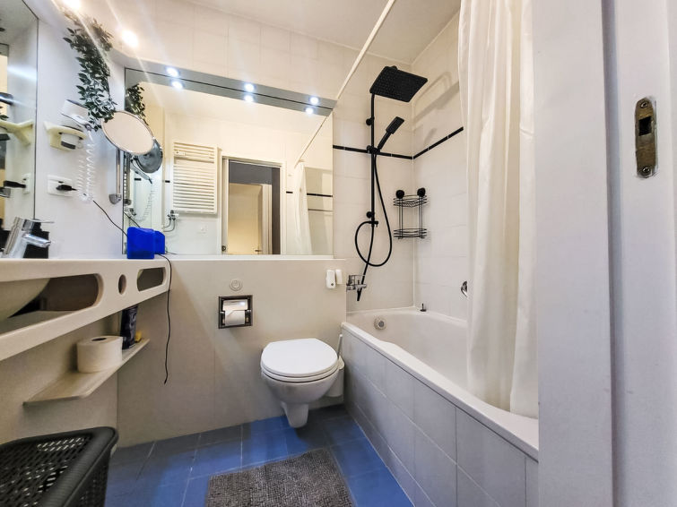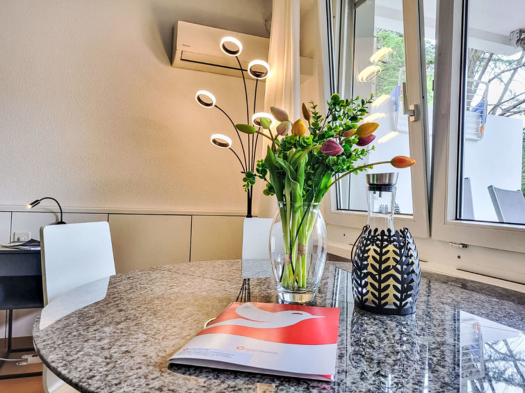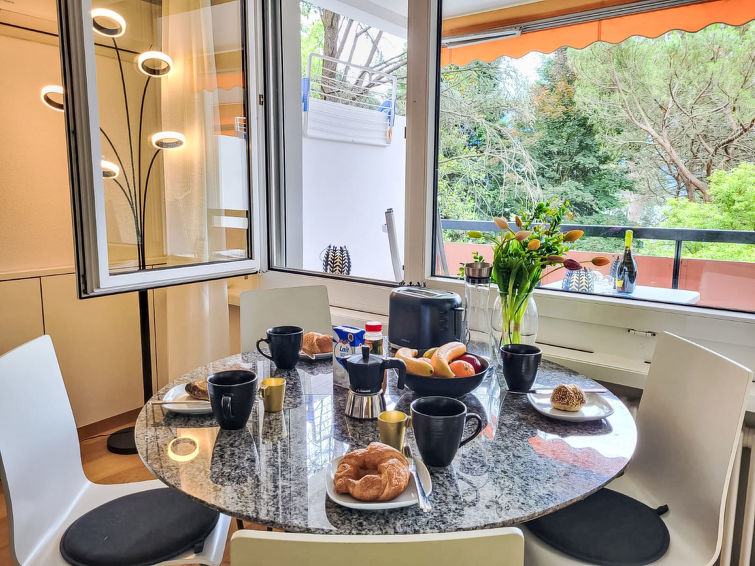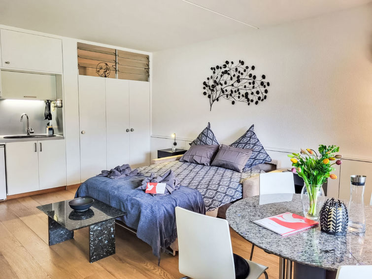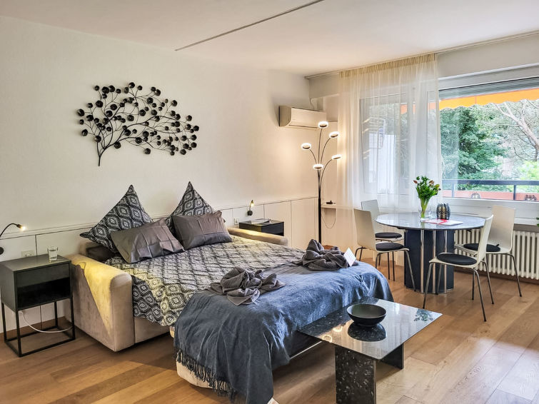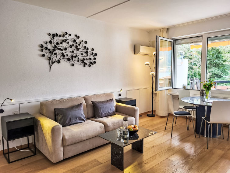 "Amazing Apt. 505", 2-Zimmer-Wohnung 45 m2 im 5. Stock. Geräumig und hell, zweckmässig und gemütlich eingerichtet: offenes Wohn-/Esszimmer mit 1 Doppelbett (1 x 160 cm, Länge 200 cm), Kabel-TV, Internationale TV-Sender, Flachbildschirm und Klimaanlage. Ausgang zum Balkon. 1 kleines Zimmer mit 1 Bett (130 cm, Länge 200 cm). Kleine Kochnische (2 Glaskeramikplatten, Toaster, Wasserkocher, Mikrowelle, elektrische Kaffeemaschine, Kapseln für die Kaffeemaschine (Nespresso) extra). Bad/WC. Heizung. Balkon 10 m2, Südwestlage. Balkonmöbel. Schöne Sicht auf den See, die Berge und die Landschaft. Zur Verfügung: Waschmaschine (extra). Kinderhochstuhl, Babybett bis 2 Jahre (extra). Internet (Wireless LAN, gratis). Parkplatz beim Haus. Bitte beachten: Nichtraucher-Unterkunft. NL-00009877