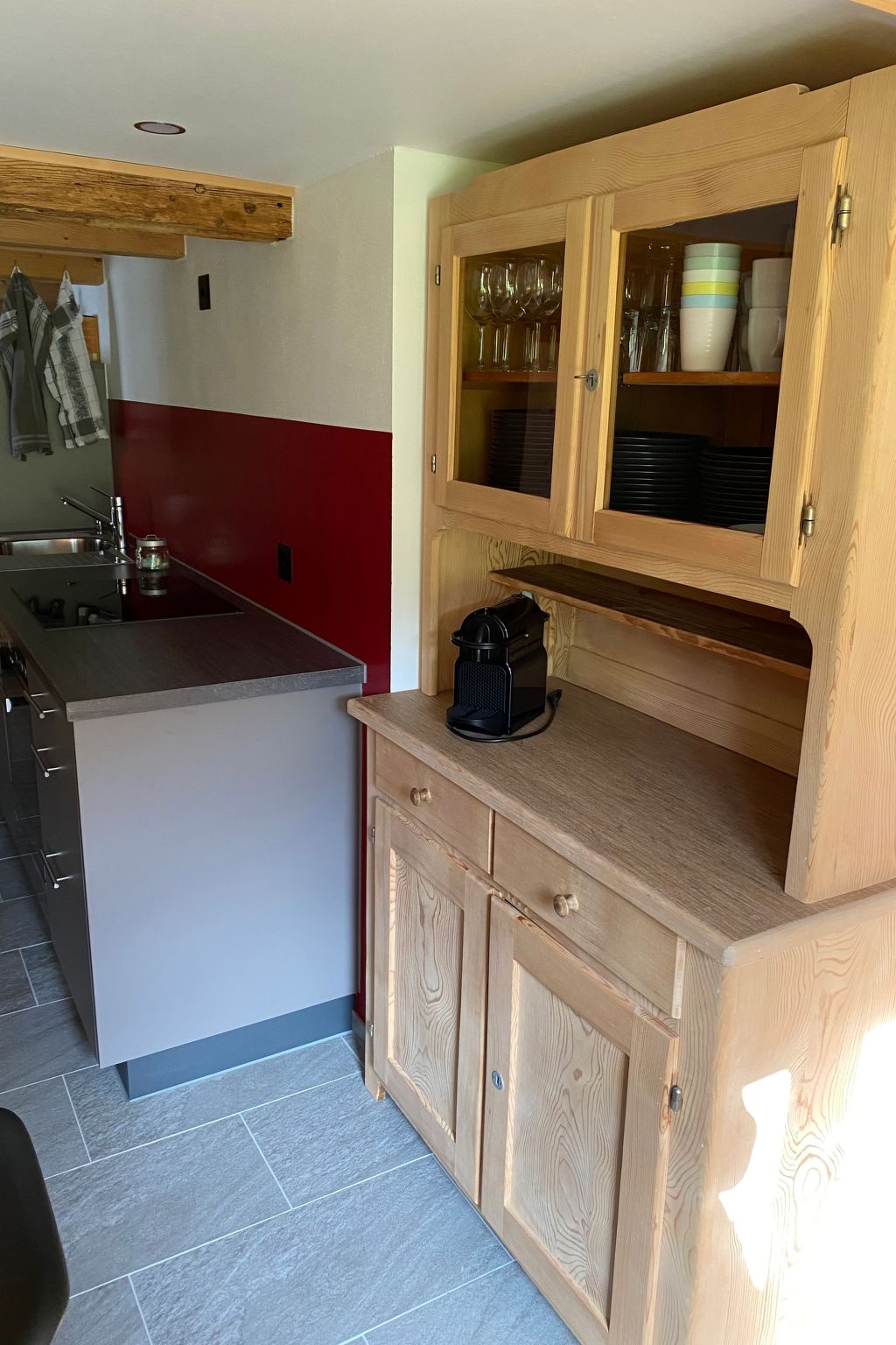 Im Inneren der Wohnung erwarten Sie ein behagliches Wohnzimmer, eine voll ausgestattete Küche, ein komfortables Schlafzimmer und ein modernes Badezimmer mit Dusche. Die Küche lässt keine Wünsche offen und ist mit einem Cerankochfeld, einem Backofen, einem Geschirrspüler, einer Kapsel-Kaffeemaschine, einem Wasserkocher sowie ausreichend Geschirr bestückt. So wird die Selbstverpflegung zum reinen Vergnügen. Zusätzlich sind Geschirrtücher, Lappen, Frottéwäsche und Bettwäsche vorhanden. Ein besonderes Highlight ist der große Sitzofen im Wohnzimmer, der mit Holz befeuert eine wohlige Atmosphäre schafft.