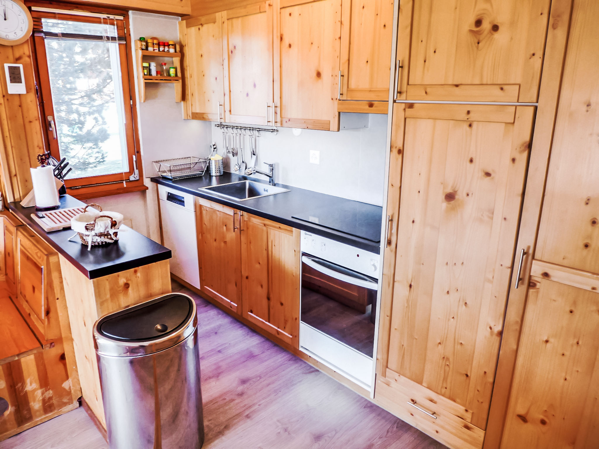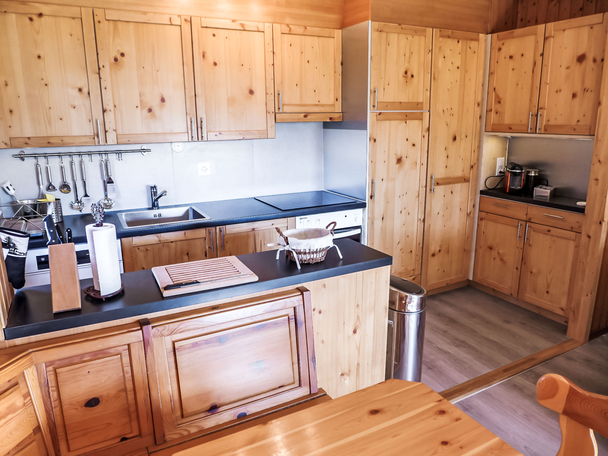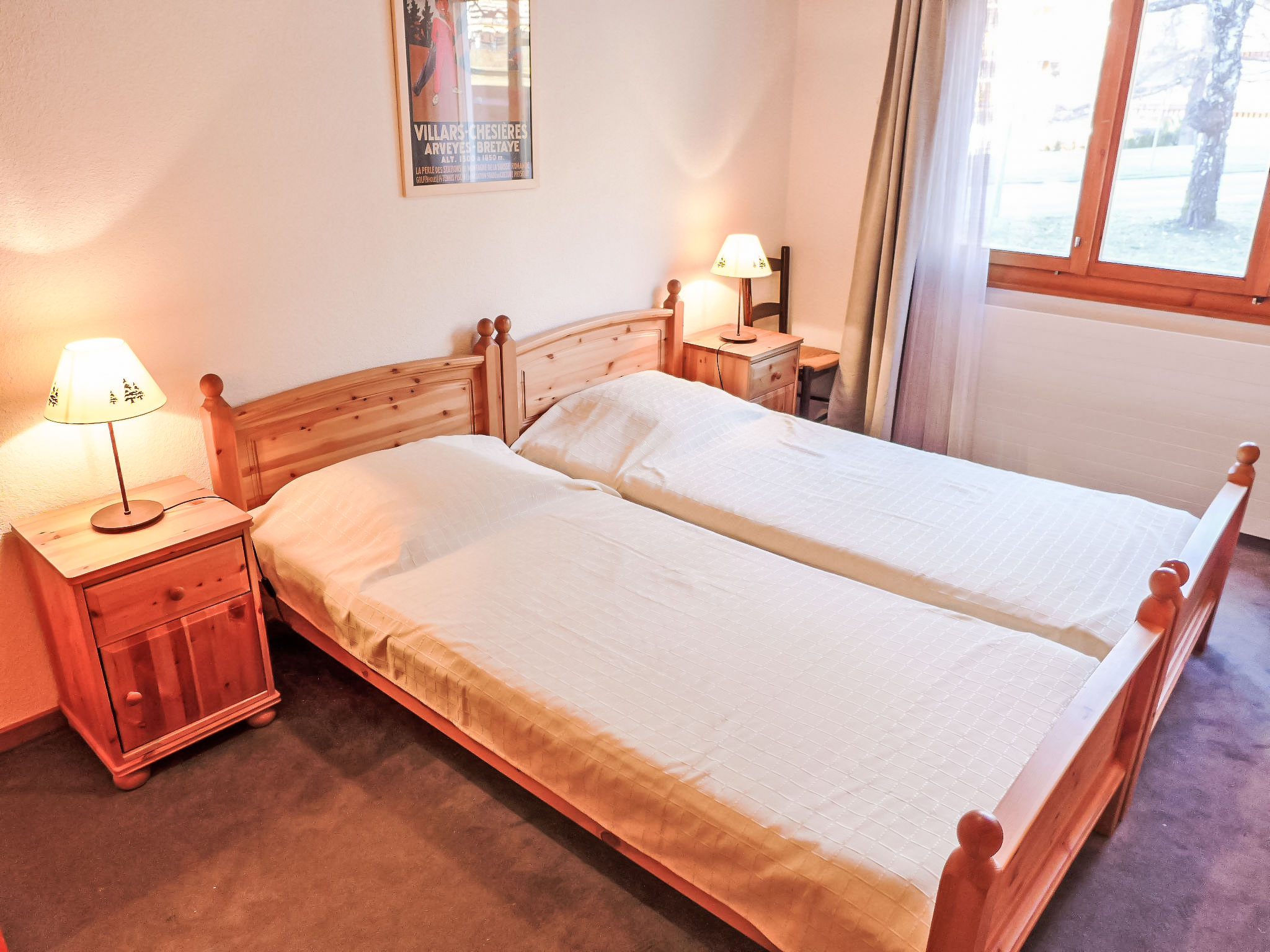 "Diamant 1", 3-Zimmer-Wohnung 70 m2, im Erdgeschoss, Südlage. Renoviert im Jahre 2016, komfortabel und schön eingerichtet: Wohn-/Esszimmer mit Esstisch und TV (Flachbildschirm), DVD. Ausgang zum Garten, Richtung Süden. 1 Kinderzimmer mit 2 x 2 Etagenbetten. 1 Zimmer mit 2 Betten (90 cm, Länge 200 cm). Offene Küche (Backofen, Geschirrspüler, 4 Glaskeramikplatten, Toaster, Wasserkocher, elektrische Kaffeemaschine, Kapseln für die Kaffeemaschine (Nespresso), Racletteofen, Fondue Set (Käse)). Bad/WC, sep. WC, Doppelwaschbecken. Terrasse 10 m2. Schöne Panoramasicht auf die Berge. Zur Verfügung: Haartrockner. Internet (WLAN, gratis). Garage Nr. 12. Maximal 2 Haustiere/Hunde erlaubt.