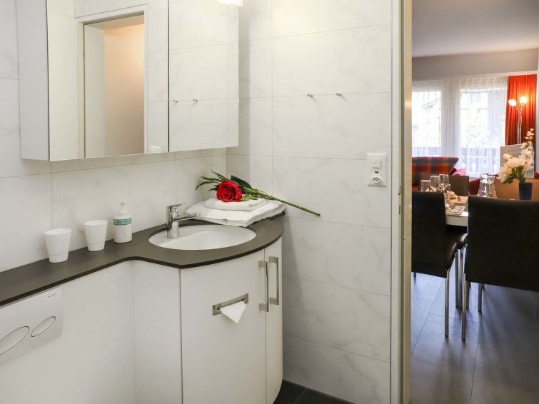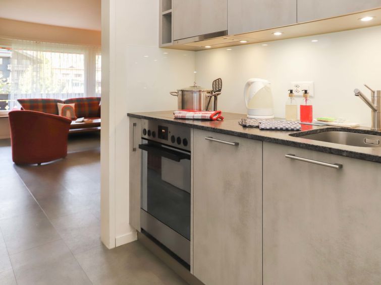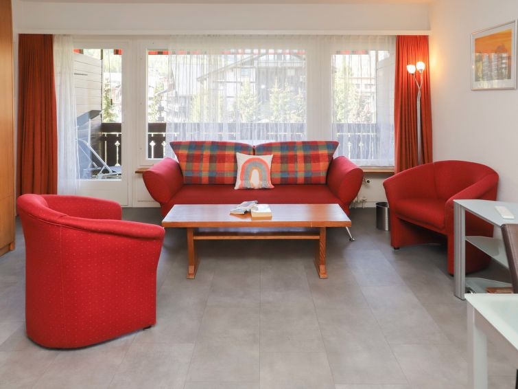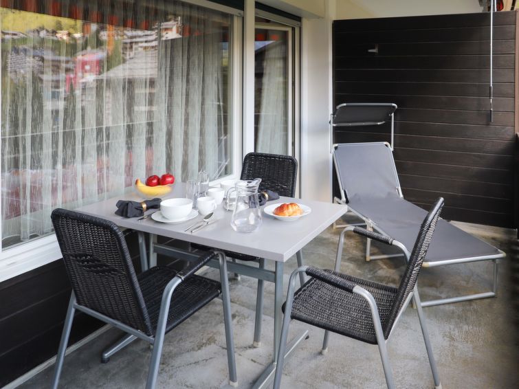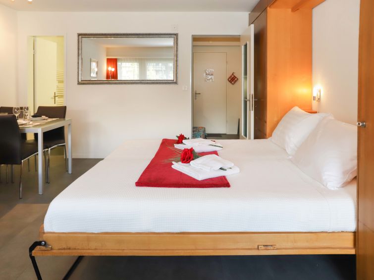 1-Zimmer-Wohnung 33 m2 im 4. Stock, Südlage. Wohn-/Esszimmer mit 2 Wandklappbetten und TV (Flachbildschirm), Radio. Kochnische im Eingang (3 Kochplatten, Backofen, Geschirrspüler, elektrische Kaffeemaschine). Bad/WC. Balkon. Terrassenmöbel. Sehr schöne Sicht auf die Berge und das Matterhorn. Zur Verfügung: Internet (WLAN, gratis). Bitte beachten: Nichtraucher-Unterkunft. Wunderschöne Sicht auf das Matterhorn.