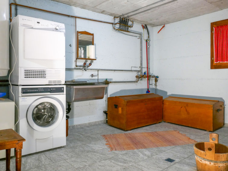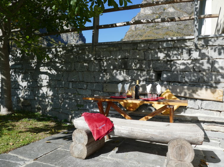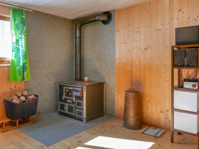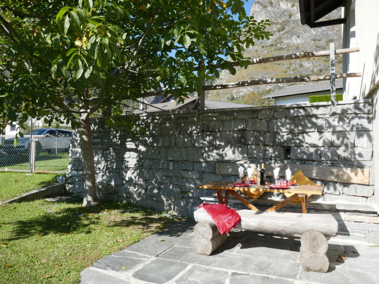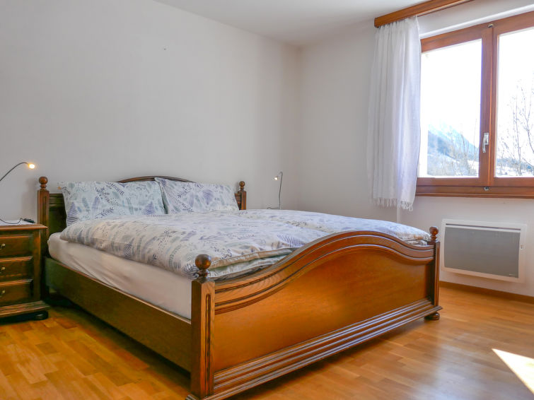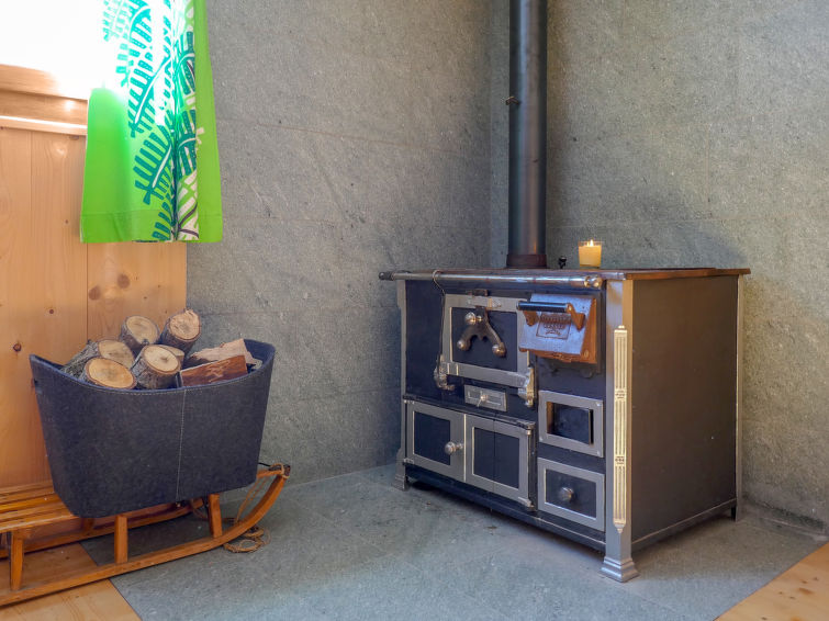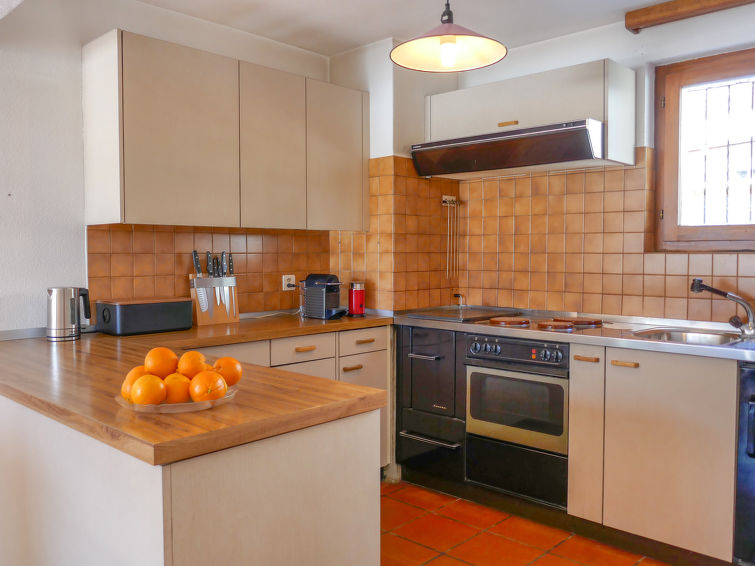 "Al Noce", 4-Zimmer-Haus 130 m2 auf 2 Stockwerken. Geräumig und hell, zweckmässig und komfortabel eingerichtet: offenes Wohn-/Esszimmer mit Panoramafenster Richtung Süden mit offenem Kamin, Kabel-TV, DVD, DVD Sammlung vorhanden und E-Heizung. Ausgang zum Balkon. 1 Doppelzimmer mit 1 Doppelbett (2 x 90 cm, Länge 190 cm). 1 Doppelzimmer mit 1 Doppelbett (1 x 160 cm, Länge 190 cm). Offene Küche (3 Kochplatten, Backofen, Tiefkühler, elektrische Kaffeemaschine, Kapseln für die Kaffeemaschine (Nespresso) extra, Racletteofen, Fondue Set (Käse)). Bad/Bidet/WC. Unteres Geschoss: (Leiter) mit Essecke, Stereoanlage und Holzofen. Dusche/WC, Sauna. Grosser Balkon. Balkonmöbel, Liegestühle (2). Schöne Sicht auf die Berge und das Tal. Zur Verfügung: Waschmaschine, Wäschetrockner, Bügeleisen, Kinderhochstuhl, Babybett bis 3 Jahre (extra), Haartrockner, Holz (gratis). Internet (Wireless LAN, gratis). Bitte beachten: geeignet für Familien. Nichtraucher-Haus. Feuerlöscher. NL-00002077