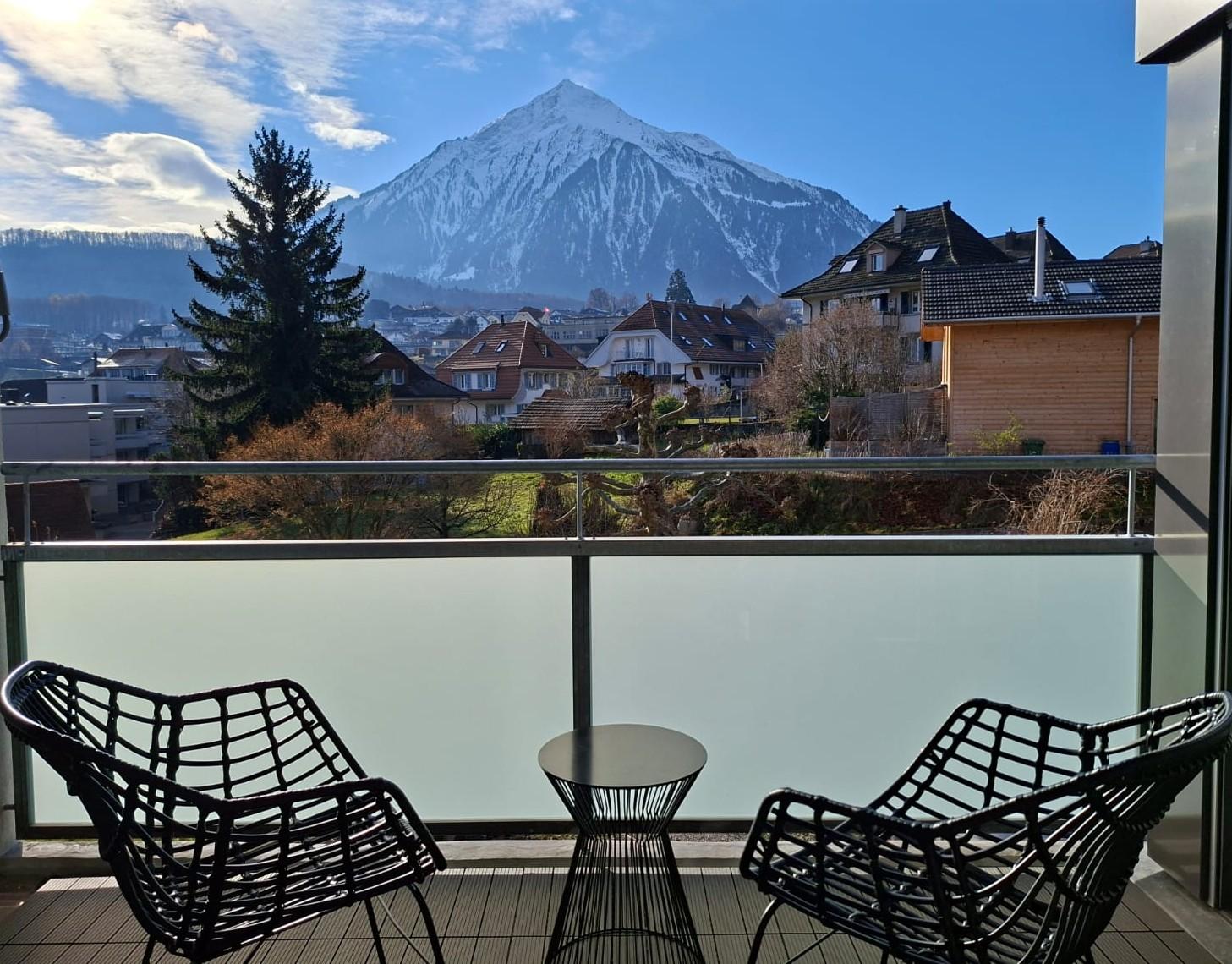 Willkommen in der Ferienwohnung Summit View - Ihrem perfekten Rückzugsort in der schönsten Bucht Europas am Thunersee. Hier, im Herzen des Berner Oberlandes, erwartet Sie eine lichtdurchflutete, modern ausgestattete Unterkunft mit atemberaubendem Blick auf den Niesen, den legendären "Pyramidenberg" der Schweiz. Die berühmte Spiezer Bucht ist bequem zu Fuss erreichbar. Geniessen Sie See, Natur und mediterranes Flair. Ideal für Ausflüge nach Interlaken, Grindelwald und die Jungfrauregion.