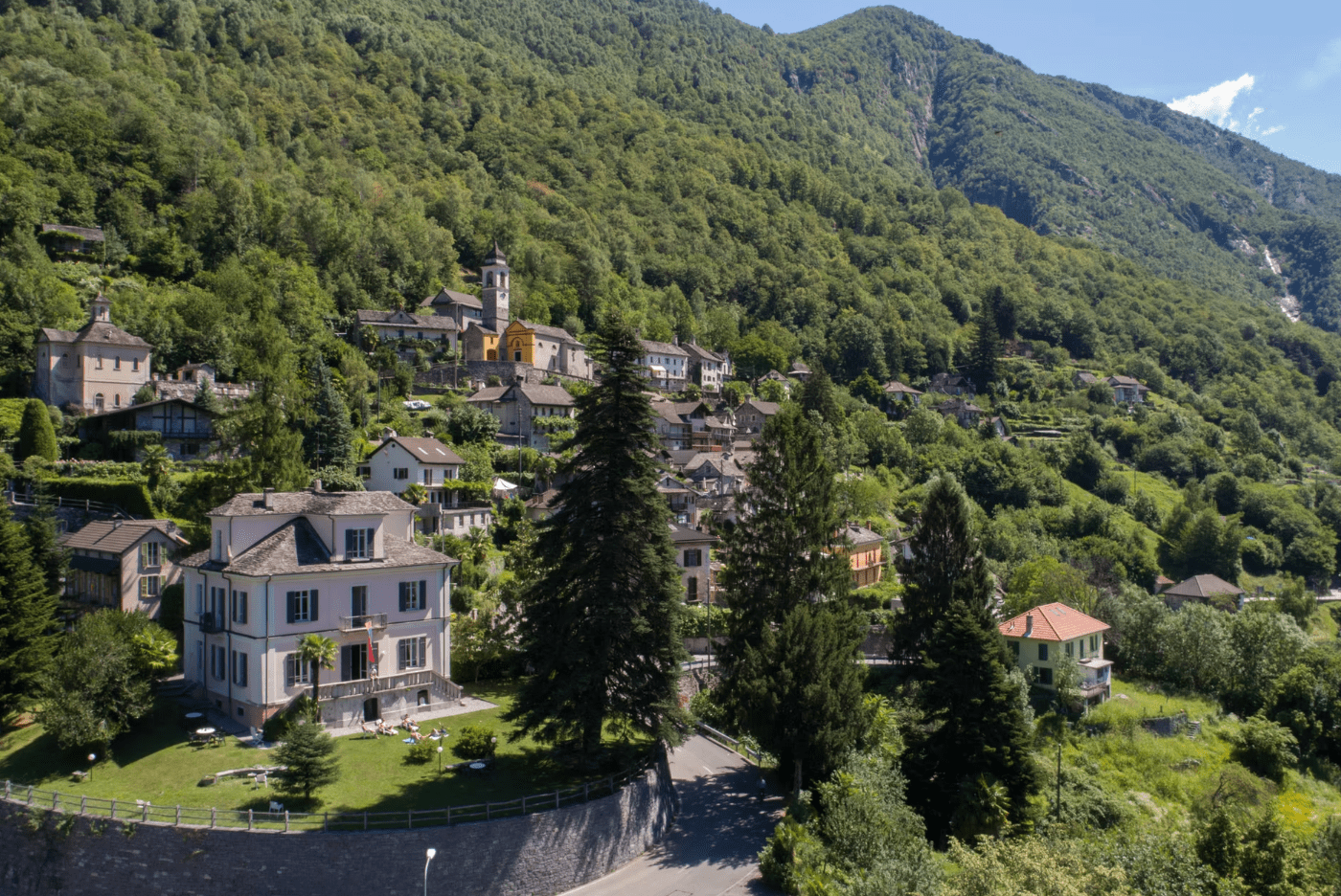 Die Villa Edera aus dem 19. Jahrhundert liegt im ersten Dorf des Onsernonetals, in Auressio (Kanton TI, Schweiz)– direkt neben dem Onsernone Tourismus Info Point, wo Du Dich persönlich zu Touren, Badeplätzen und Kultur beraten lassen kannst. Nur rund 20 Minuten von Locarno entfernt, erwartet Dich ein liebevoll renoviertes Haus mit Palmen-Garten, Wiese und weitem Blick in die Berge – ideal für Gruppen, Familien, Klassenlager, Kletter- und Bike-Trips oder Retreats.