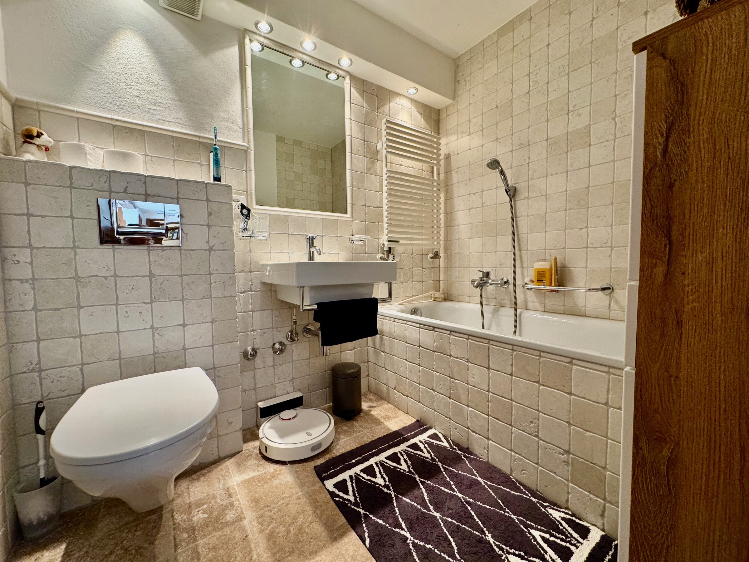 There is a guest WC in the entry hall, room for coats and boots, cable TV, wifi throughout. The building has a table tennis table you can use free of charge and a sauna which can be booked for a small fee.