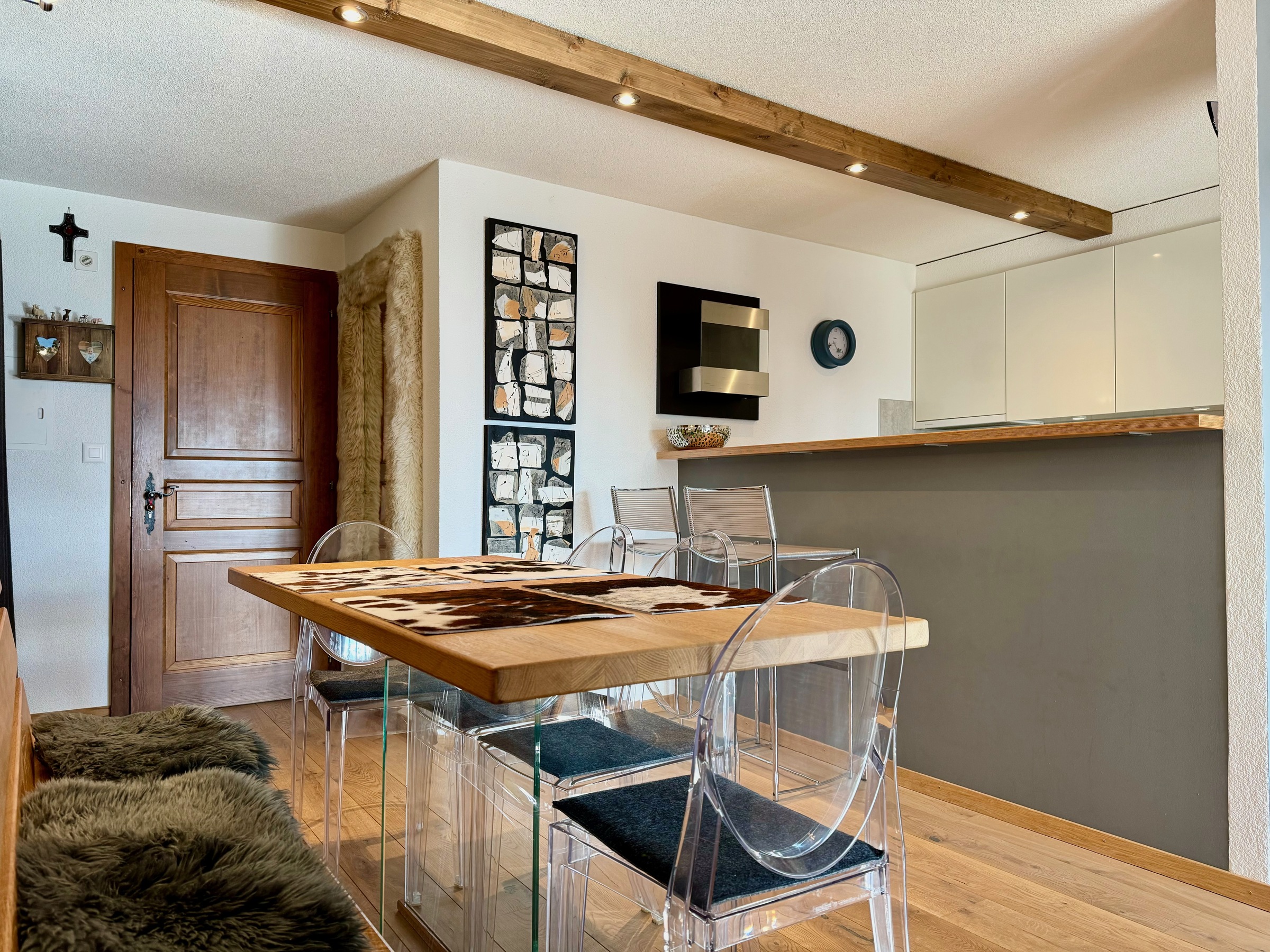 The apartment is in an excellent location just moments from the Medran ski lift. It has an open feel with kitchen, dining, living room in one with balcony doors and a wall mounted fire feature.