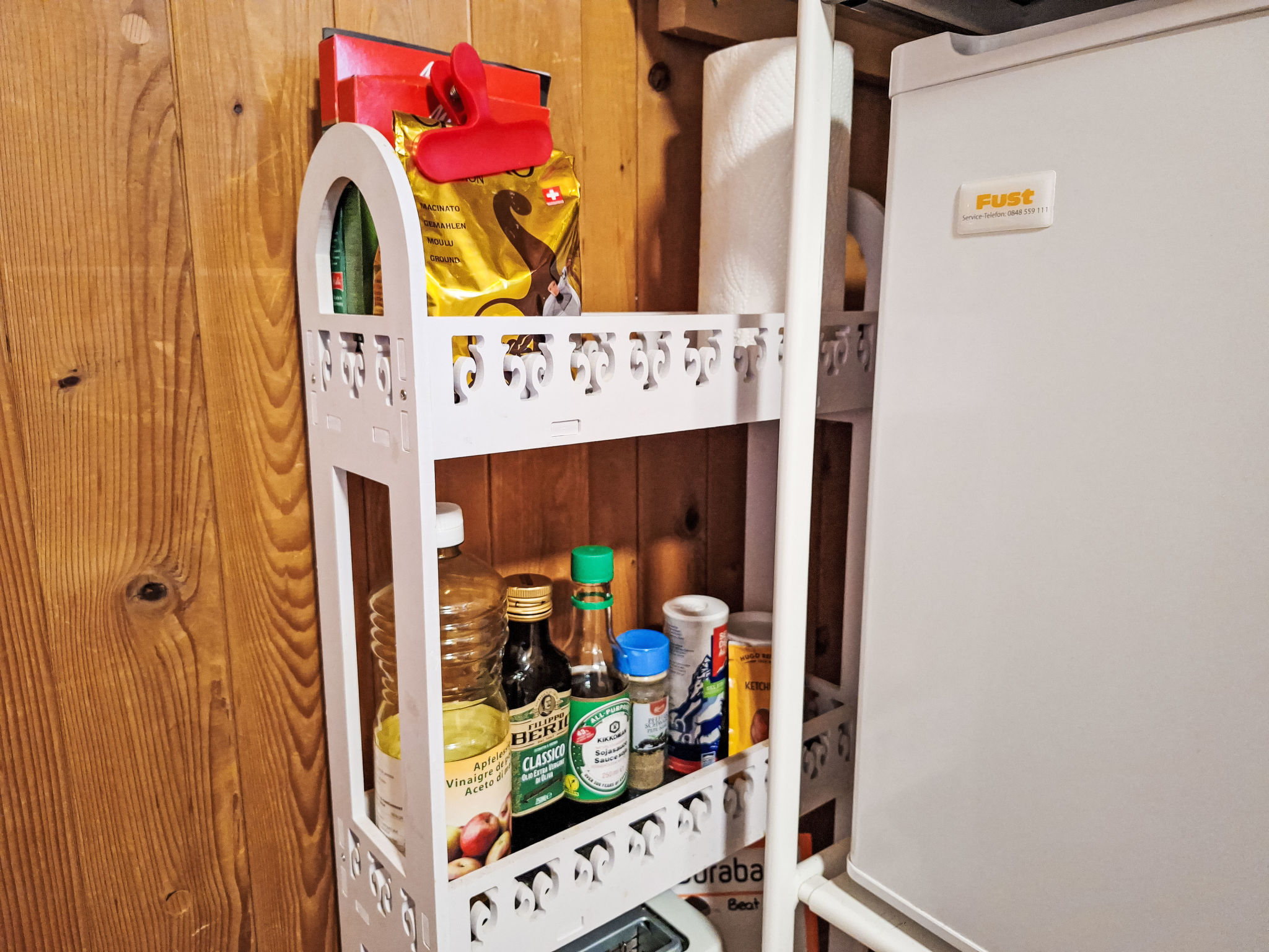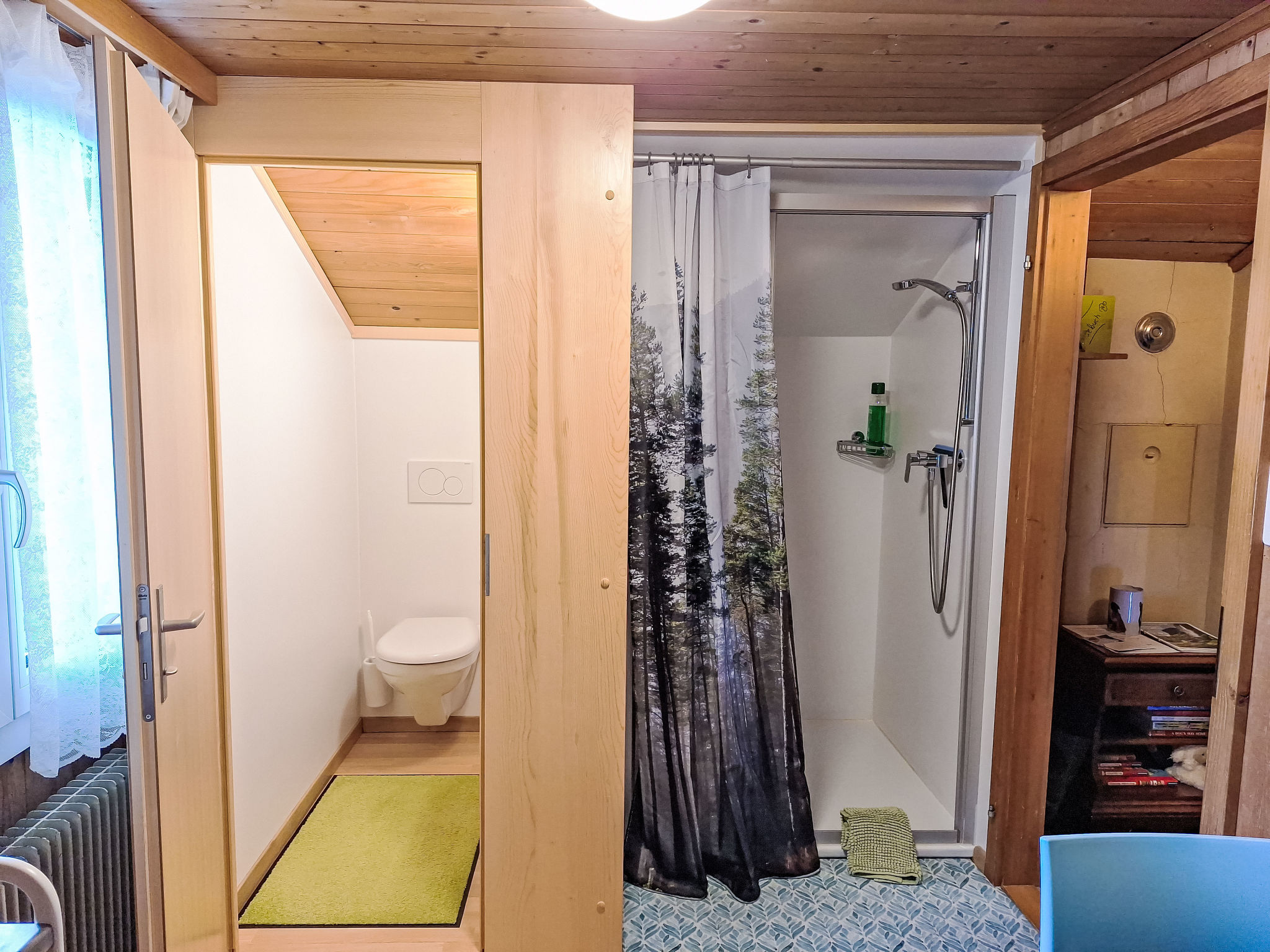 "Vreneli", 1-Zimmer-Wohnung 25 m2, im Dachgeschoss. Teilweise abgeschrägt, einfach und gemütlich eingerichtet: 1 Zimmer mit 3 Betten (90 cm, Länge 200 cm). Wohnküche (1 Kochplatte, Toaster, Wasserkocher, elektrische Kaffeemaschine, Racletteofen, Fondue Set (Käse)) mit Esstisch und Radio. Dusche, sep. WC. Sehr schöne Sicht auf die Berge und die Landschaft. Zur Verfügung: Babybett bis 2 Jahre (extra), Haartrockner. Internet (Wireless LAN, gratis). Parkplatz. Bitte beachten: Kühlschrank ohne Gefrierfach, Nichtraucher-Unterkunft.