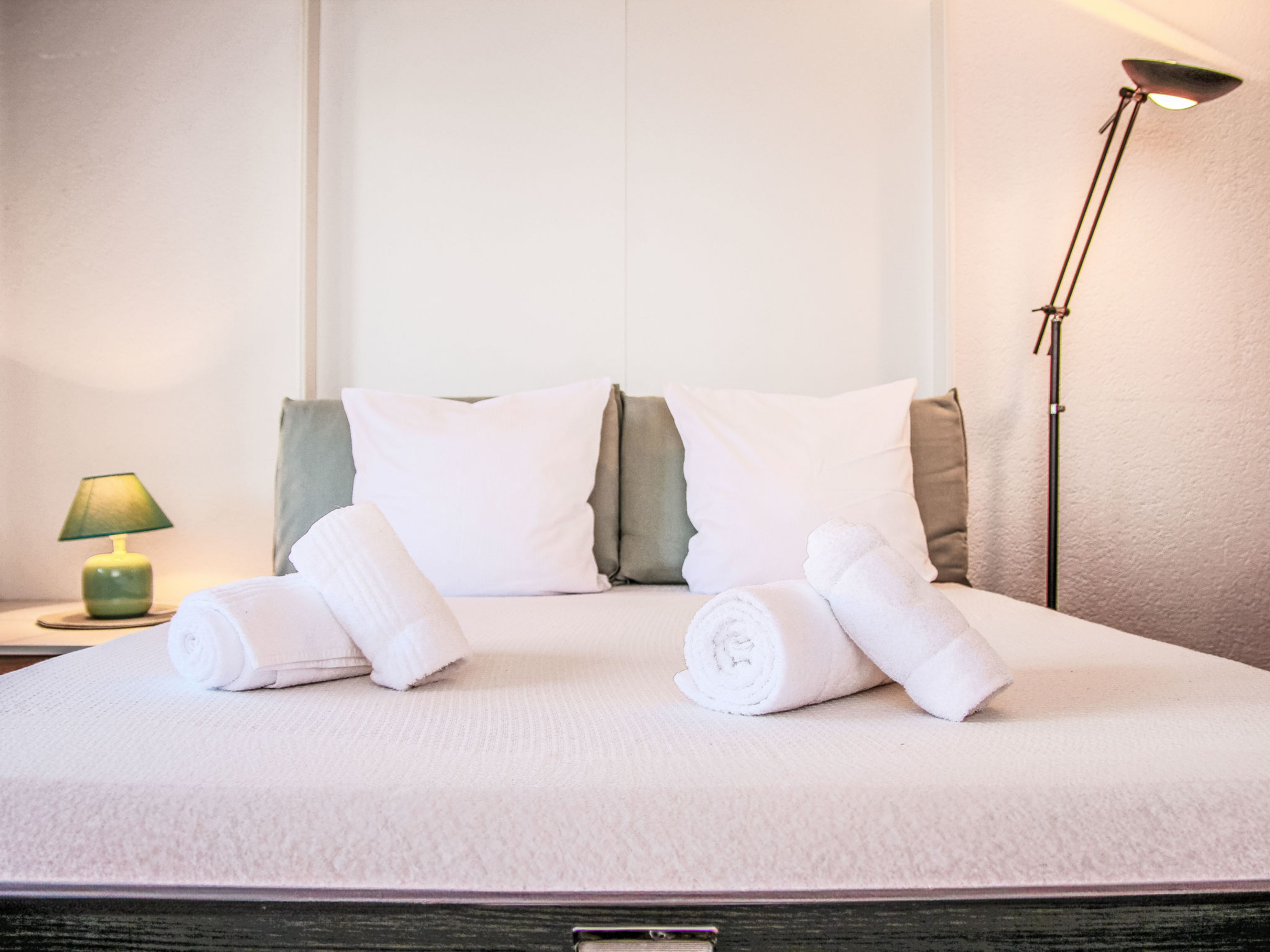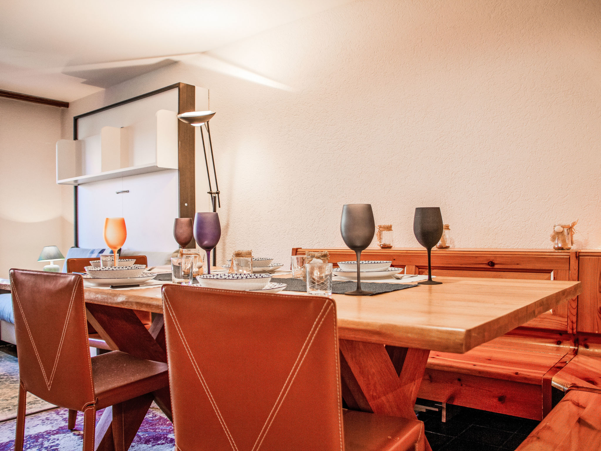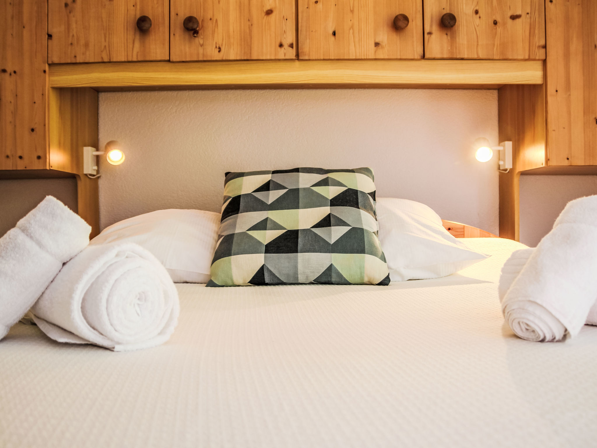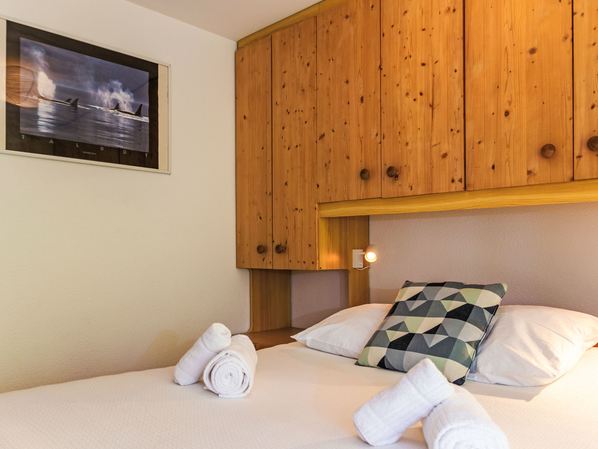 "Eden Roc 51", 2-Zimmer-Wohnung 47 m2 im 1. Stock. Objekt geeignet für 2 Erwachsene + 2 Kinder. Komfortabel und geschmackvoll eingerichtet: Wohn-/Esszimmer mit 1 Wandschrankbett (80 cm, Länge 190 cm), 1 franz. Wandschrankbett (140 cm, Länge 190 cm), Schwedenofen und Kabel-TV. Ausgang zum Balkon. 1 Zimmer mit 1 franz. Bett (150 cm, Länge 200 cm). Offene Küche (Backofen, Geschirrspüler, 4 Glaskeramikplatten, Wasserkocher, Mikrowelle, elektrische Kaffeemaschine, Kapseln für die Kaffeemaschine (Nespresso La Mocca) extra, Racletteofen, Fondue Set (Käse)). Bad/WC. Balkon 16 m2, Nordlage, Terrasse, Südlage. Terrassenmöbel, Balkonmöbel, Liegestühle (4). Eingeschränkte Sicht. Zur Verfügung: Internet (WLAN). Bitte beachten: geeignet für Familien. Nichtraucher-Unterkunft. Maximal 1 Haustier/Hund erlaubt.