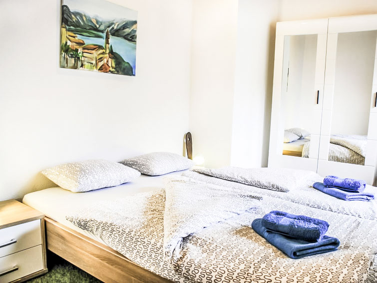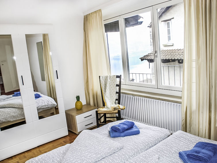 "Casa Eduardo Apt.2", 3-Zimmer-Wohnung 75 m2 im 1. Stock, Südostlage. Geräumig und hell, renoviert im Jahre 2018, komfortabel und gemütlich eingerichtet: offenes Wohn-/Esszimmer mit Esstisch, Kabel-TV, Internationale TV-Sender, Flachbildschirm, Radio und Stereoanlage. Ausgang zur Terrasse. 1 Doppelzimmer mit 1 Doppelbett (2 x 90 cm, Länge 200 cm). 1 Doppelzimmer mit 1 Doppelbett (2 x 80 cm, Länge 200 cm). Küche (Backofen, Geschirrspüler, 4 Glaskeramikplatten, elektrische Kaffeemaschine, Kapseln für die Kaffeemaschine (Nespresso) extra). Dusche/WC. E-Heizung. Terrasse 12 m2 teilweise überdacht, Südlage. Terrassenmöbel. Sehr schöne Panoramasicht auf den See, die Berge und die Landschaft. Zur Verfügung: Waschmaschine, Kinderhochstuhl, Babybett bis 3 Jahre (extra), Haartrockner. Internet (Wireless LAN, gratis). Bitte beachten: geeignet für Familien. Nichtraucher-Unterkunft. Feuerlöscher, kein Fahrstuhl. NL-00003745