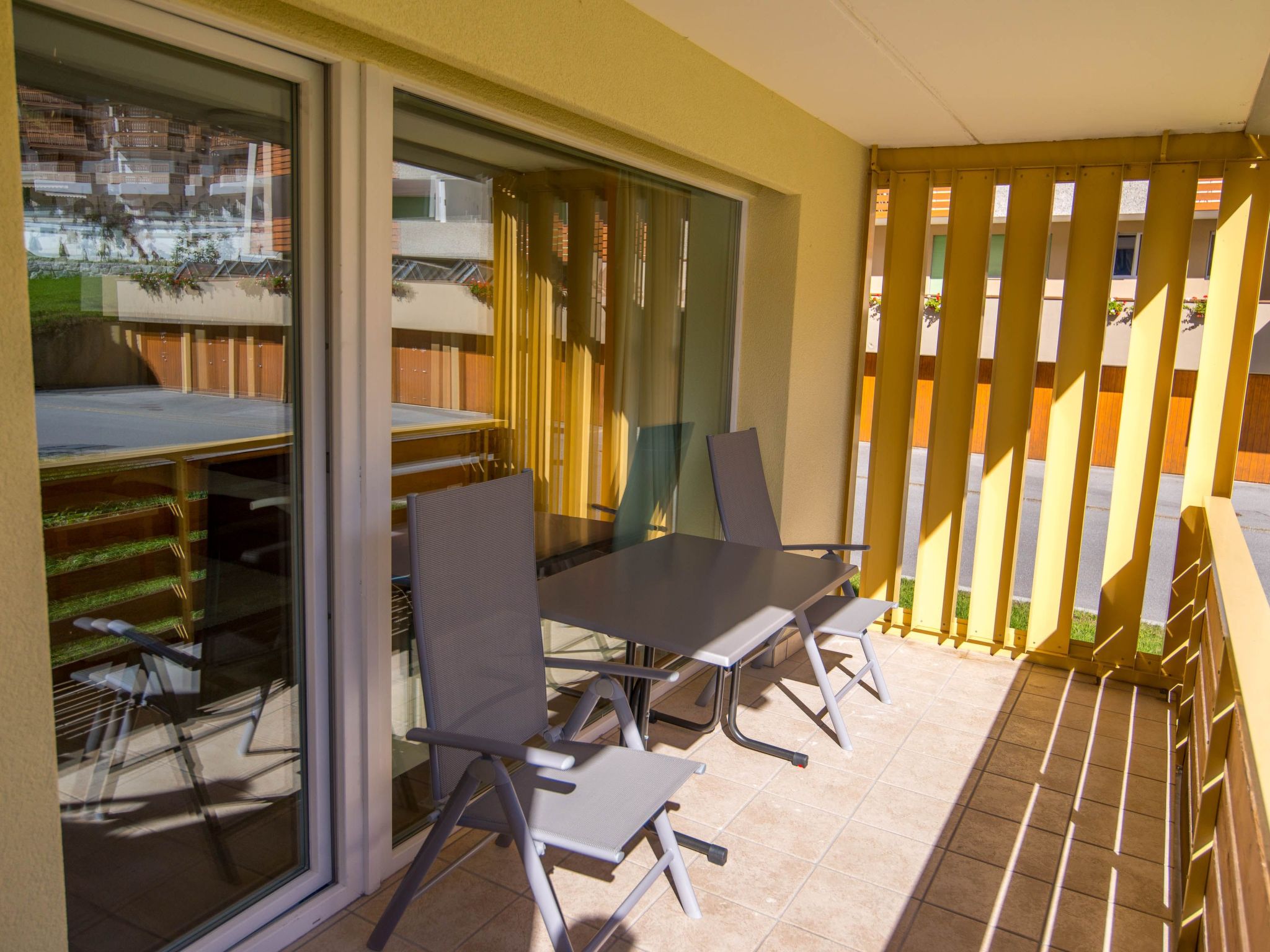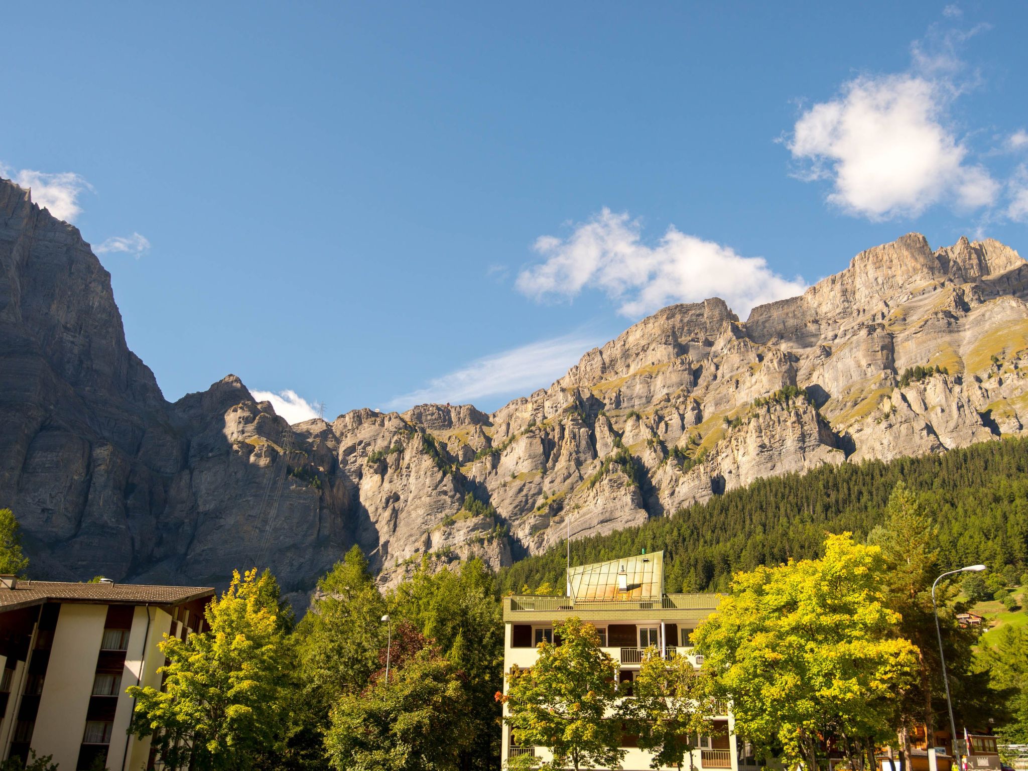 Panoramasicht auf Leukerbad und die umliegende Bergwelt. Alle Wohnungen (ausser: kleines Studio) mit grossem und sonnigem Balkon.