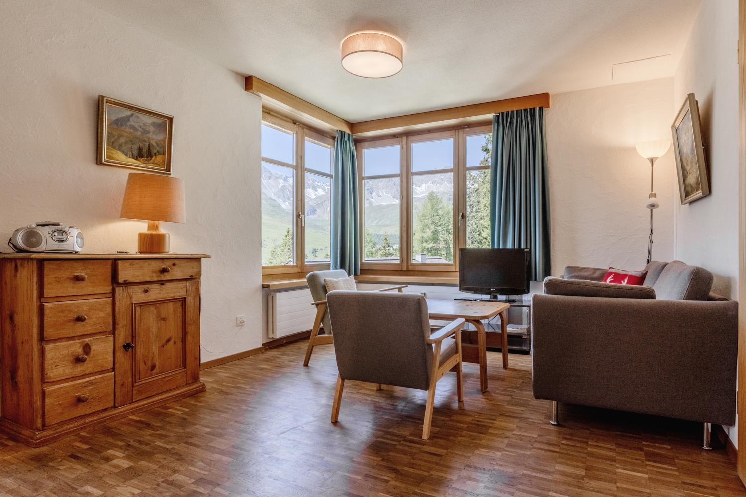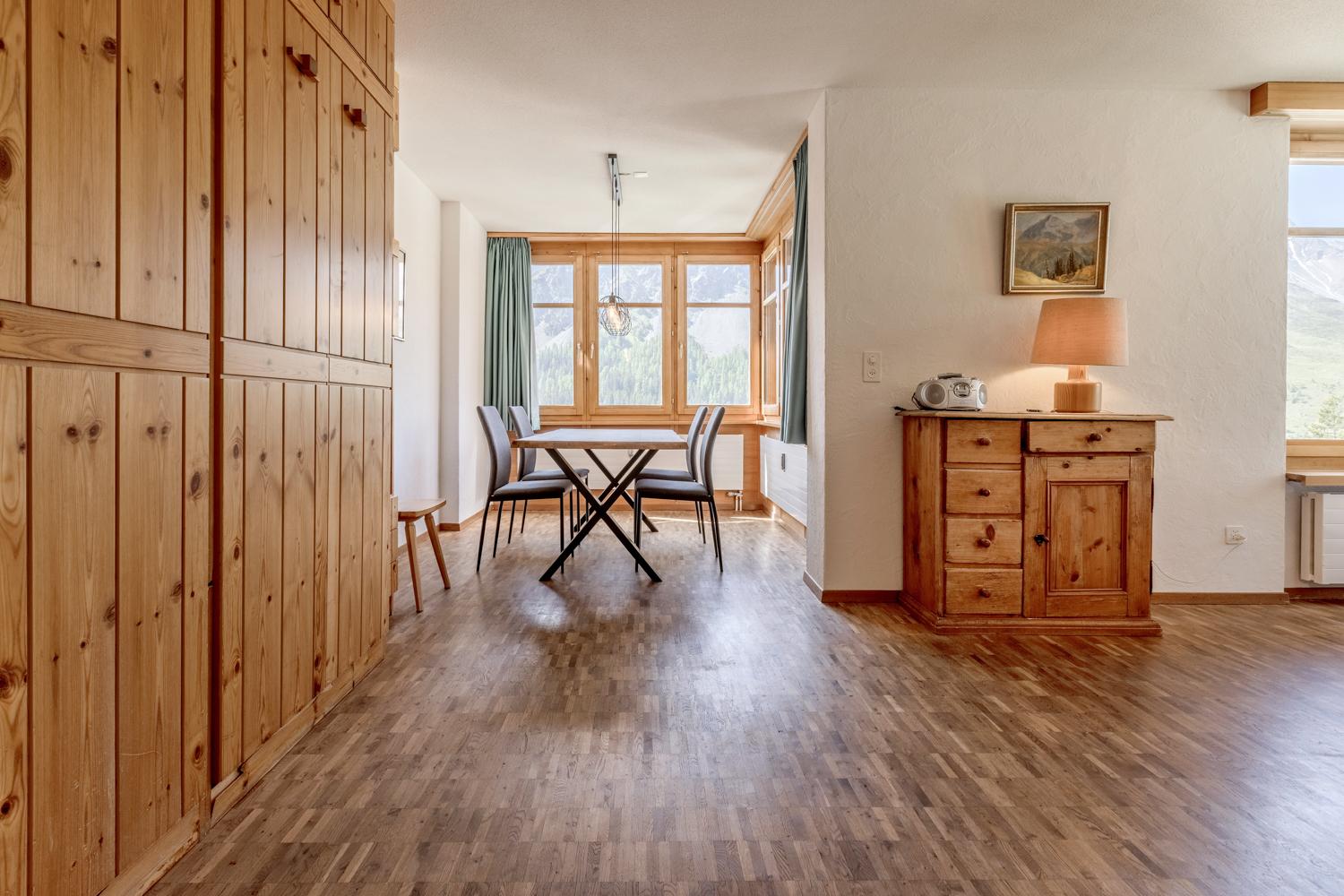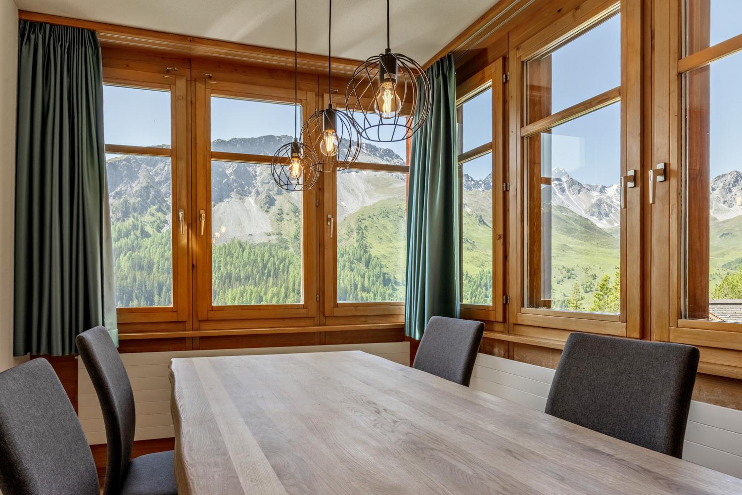 Das Chalet Tschuggenweg steht erhöht an der Sonnenbergstrasse (Nr. 15), aussichtsreich und ruhig gelegen. 5 - 8 Gehminuten vom Zentrum, der neuen Gondelbahn Innerarosa und dem Sammelplatz der Kinderskischule entfernt.