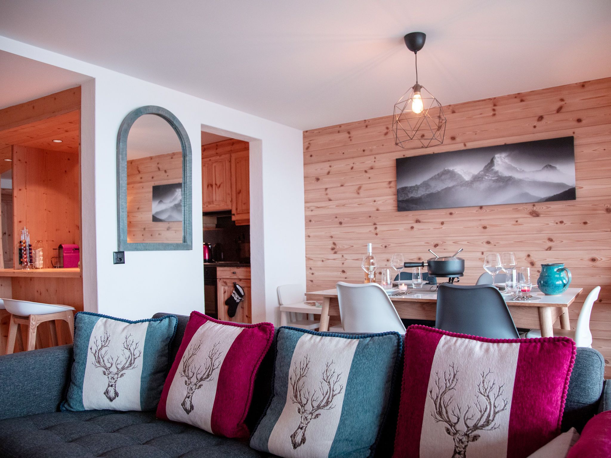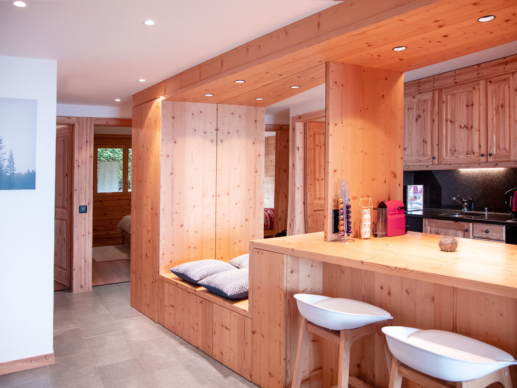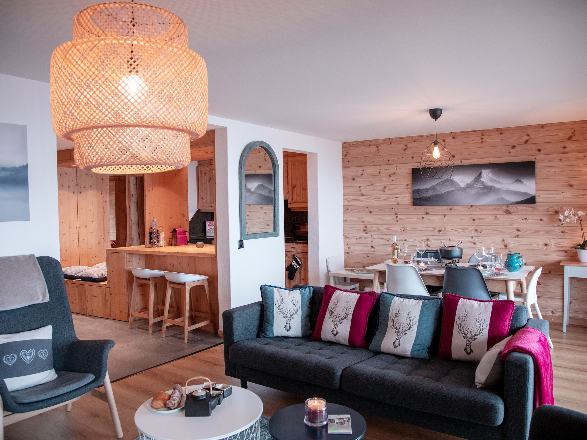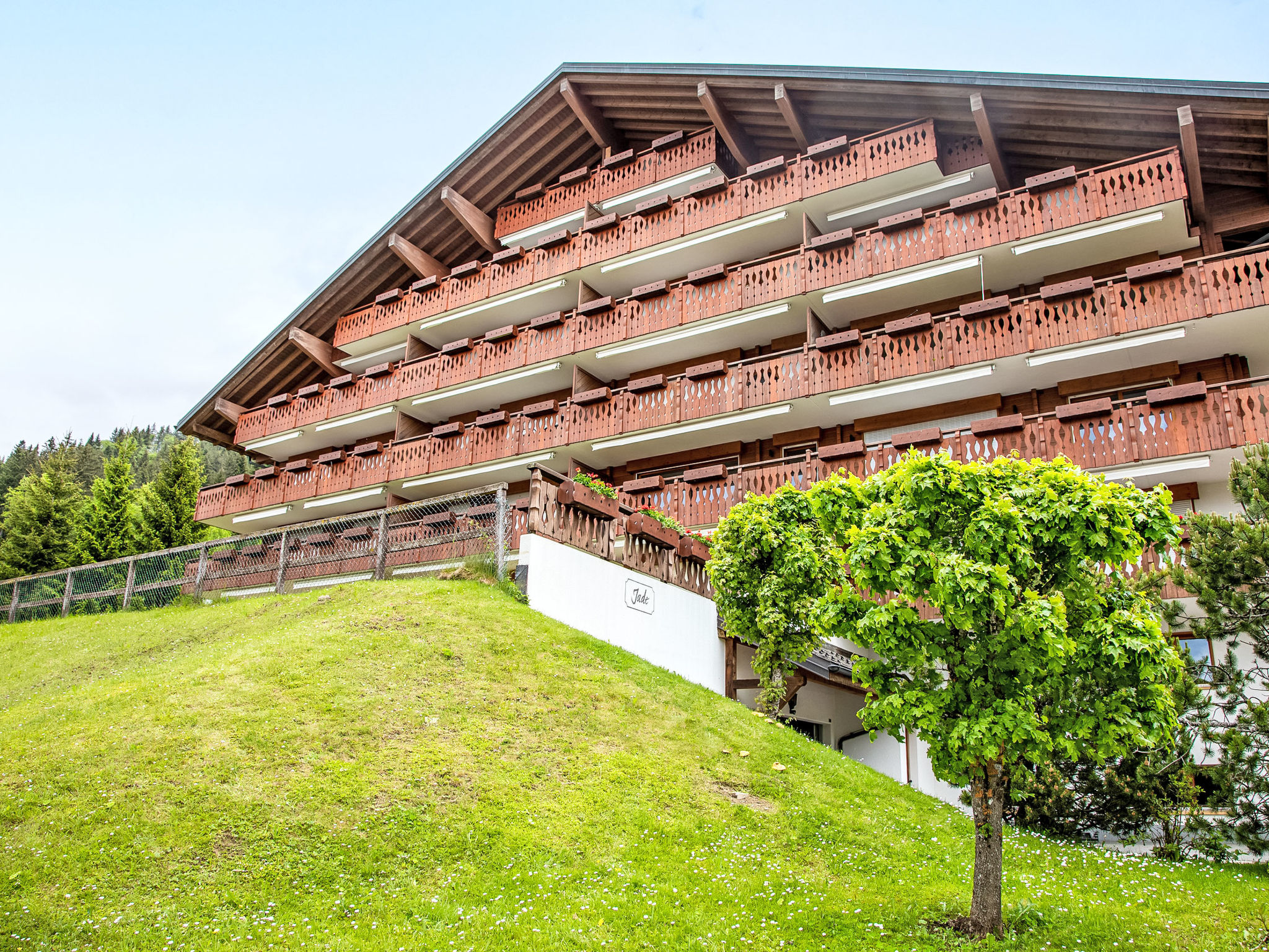 "Jade 22", 3-Zimmer-Wohnung 77 m2 im 2. Stock, Südwestlage. Komfortabel und geschmackvoll eingerichtet: Wohn-/Esszimmer mit offenem Kamin, Esstisch und TV (Flachbildschirm). Ausgang zum Balkon, Richtung Südwesten. 1 Zimmer mit 1 franz. Bett (1 x 160 cm). 1 Zimmer mit 2 Betten (80 cm). Ausgang zum Balkon, Richtung Norden. Offene Küche (Backofen, Geschirrspüler, 4 Glaskeramikplatten, Toaster, Wasserkocher, Mikrowelle, elektrische Kaffeemaschine, Kapseln für die Kaffeemaschine (Nespresso) extra, Racletteofen, Fondue Set (Chinoise, Käse)) mit Bar. Bad/WC, Dusche/WC. Grosser Balkon 16 m2, Südwestlage, kleiner Balkon, Nordlage. Balkonmöbel. Schöne Sicht auf die Berge. Zur Verfügung: Haartrockner. Internet (Wireless LAN, gratis). Garage Nr. 22 (1 Auto). Bitte beachten: Nichtraucher-Unterkunft.