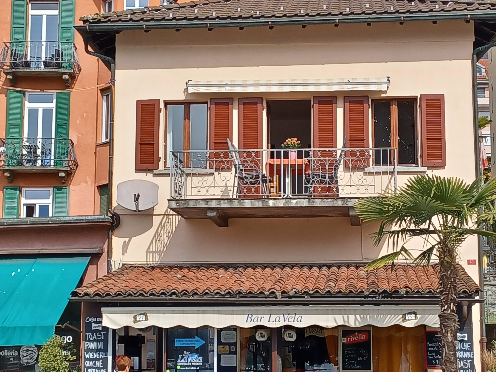 Muralto / Locanro: Kleines, gemütliches, einfaches Haus "Casa Vela da Reto", 207 m.ü.M., einseitig angebaut. Belebte, sonnige Lage, verkehrsberuhigte Zone, 30 m vom See, Strasse zu überqueren, an einer Strasse, Richtung Südwesten. Im Hause: Bar, Waschmaschine, Wäschetrockner (zur Mitbenutzung). Zufahrt bis zum Haus. Einkaufsgeschäft 1 km, Bäckerei 500 m, Zentrum zu Fuss in 10 Minuten erreichbar, Bushaltestelle "Locarno Stazione" 850 m, Bahnstation "Locarno Muralto" 600 m, Fähre "Debarcadero" 500 m, Kieselstrand "Lago Maggiore" 130 m, Hallenbad 1.5 km, Thermalbad "Termali Salini Spa, Locarno" 1.5 km, Strandbad 1.5 km, Badesee "Lago Maggiore", See Lago Maggiore. Golfplatz 1.9 km, Tennis 1.2 km, Minigolf 1.2 km, Kinderspielplatz 100 m. Nahe gelegene Sehenswürdigkeiten: Falconeria, Locarno, Monte Verità, Isole di Brisago, Swissminiature, Melide, Castelli di Bellinzona. Bekannte Skigebiete sind gut erreichbar: Bosco Gurin. Bekannte Seen in der Umgebung sind gut erreichbar: Lago Maggiore, Lago di Lugano, Lago di Orta (IT). Wandergebiete: Valle Verzasca, Valle Maggia,Centovalli, Valle Onsernone. Bitte beachten: Be- und Entladen am Ferienhaus möglich.