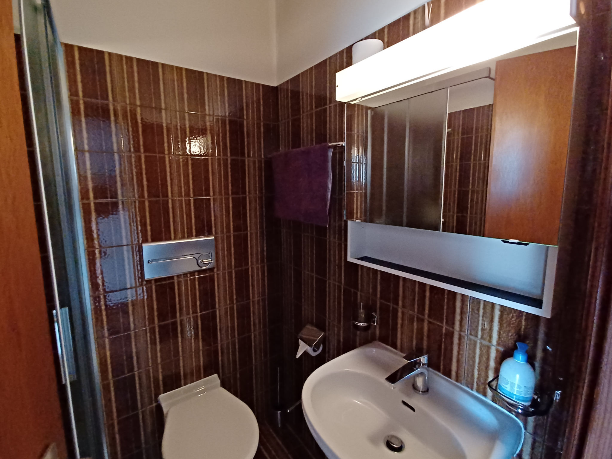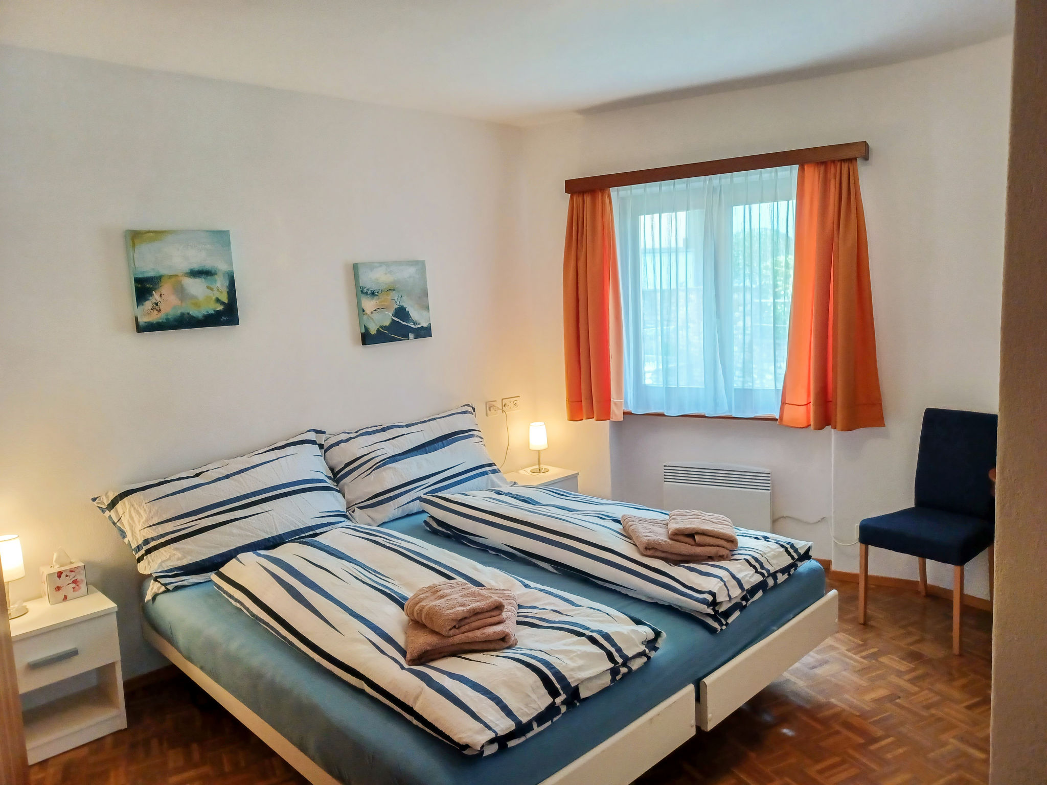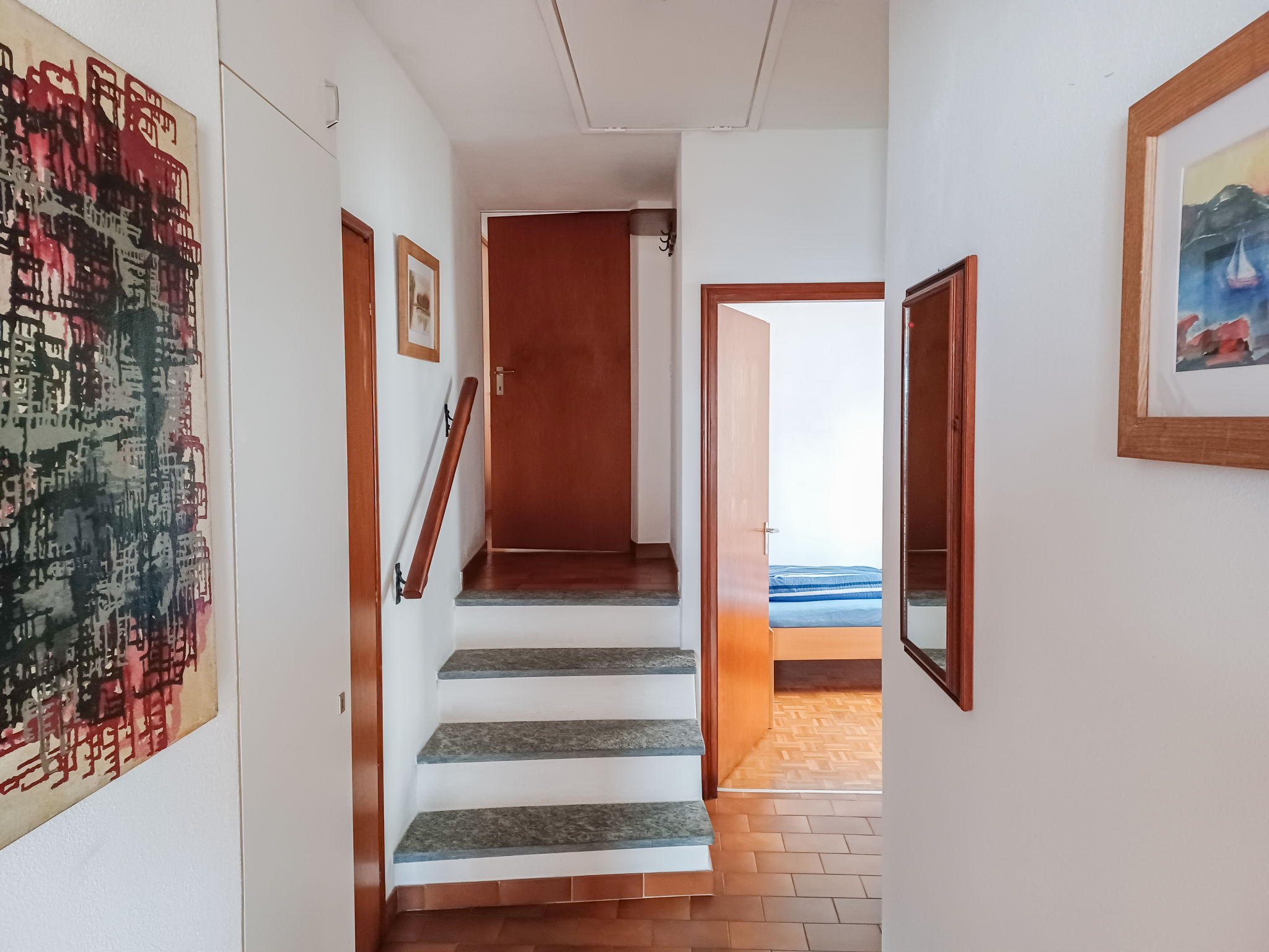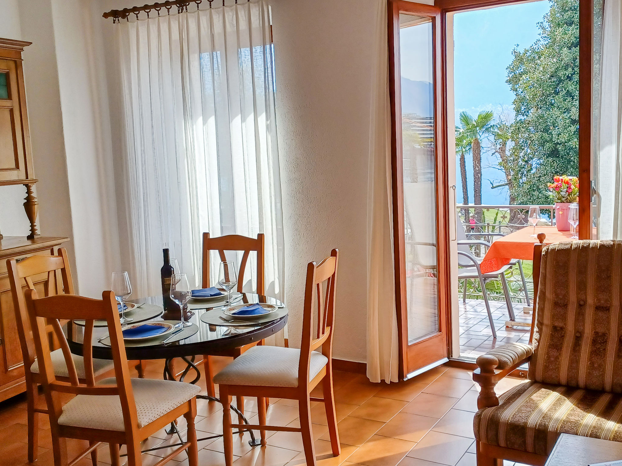 "Vela da Reto", 3-Zimmer-Wohnung im 1. Stock. Objekt geeignet für 2 Erwachsene + 1 Kind. Zweckmässig und gemütlich eingerichtet: Wohn-/Esszimmer mit offenem Kamin (nur Deko), Digital-TV, Flachbildschirm und Klimaanlage. Ausgang zum Balkon. 1 Zimmer mit 1 Bett (90 cm, Länge 200 cm). 1 Doppelzimmer mit 1 Doppelbett (2 x 90 cm, Länge 200 cm). Kleine, offene Küche (4 Kochplatten, Backofen, Toaster, Wasserkocher, Mikrowelle, elektrische Kaffeemaschine, Kapseln für die Kaffeemaschine (Delizio) extra). Dusche/WC, sep. WC. Heizung. Natursteinboden. Kleiner Balkon, Südlage. Balkonmöbel. Sehr schöne Sicht auf den See und die Berge. Zur Verfügung: Haartrockner. Internet (Wireless LAN, gratis). Parkplatz (extra) in 70 m. Bitte beachten: nicht geeignet für Kinder unter 6 Jahren Wohnung auf Strassenseite. Nichtraucher-Unterkunft. Kein Fahrstuhl. Das Objekt befindet sich über einer Bar, die Bar ist offen bis 24.00. Juni, Juli + August finden Fr. oder Sa. Musikabende statt. NL-00004816