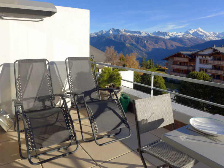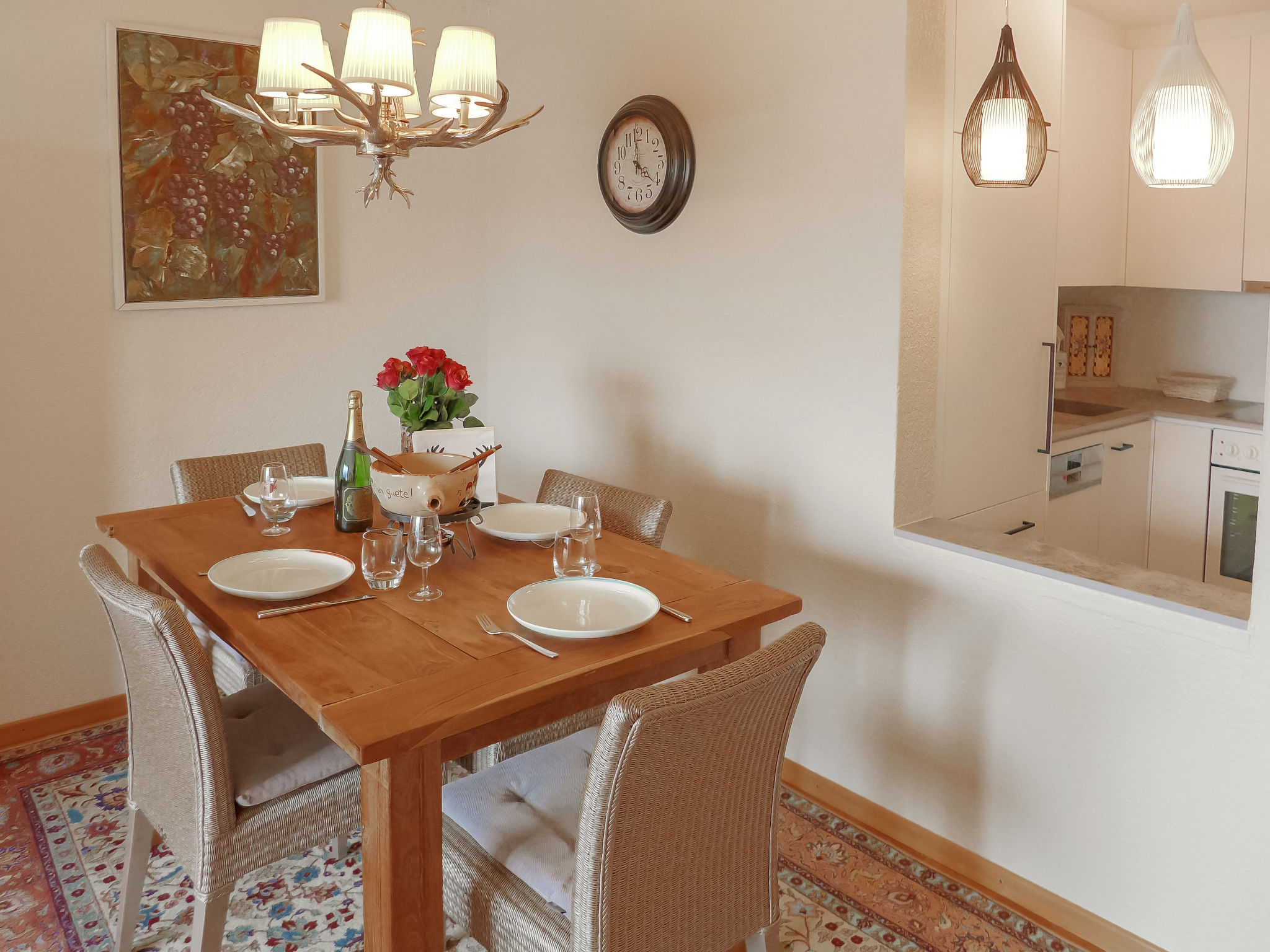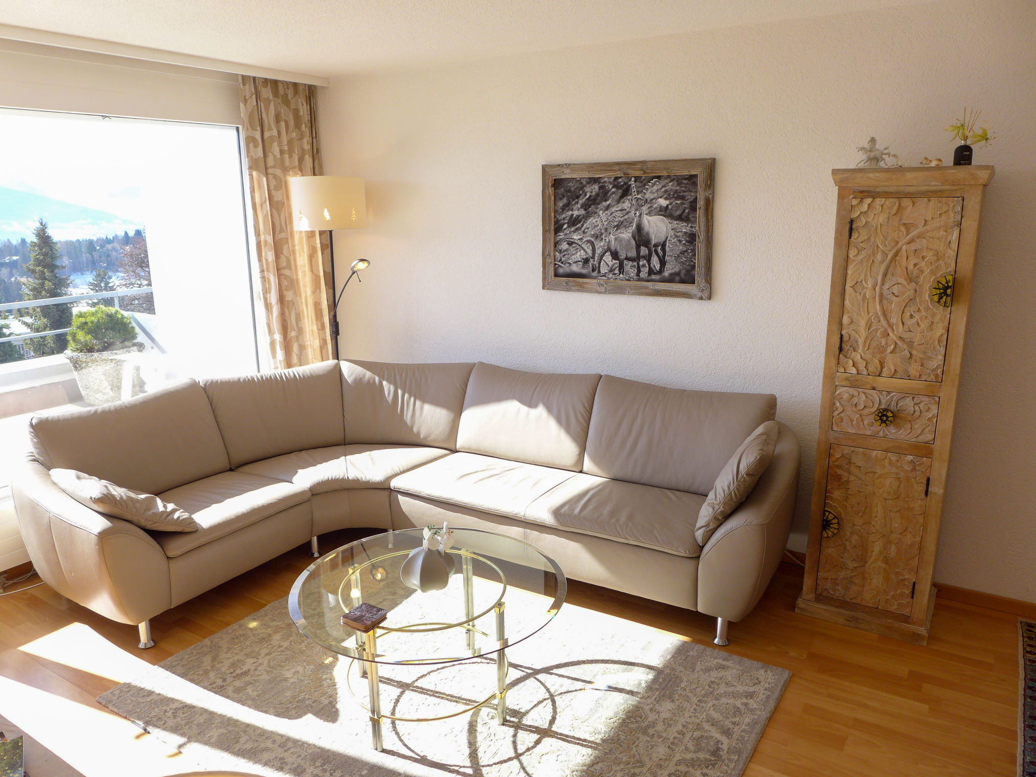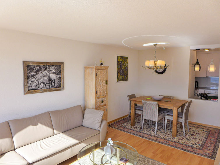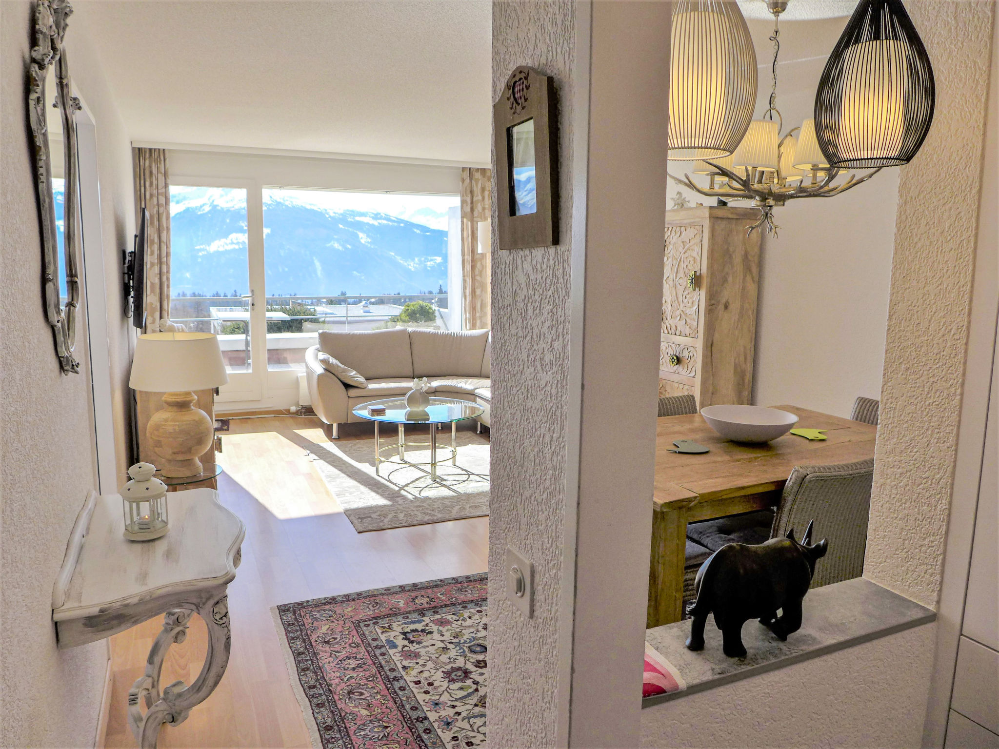"Jeanne D'Arc Apt. D-33", 2-Zimmer-Wohnung 49 m2 im 2. Stock. Komfortabel und geschmackvoll eingerichtet: Wohn-/Esszimmer mit Kabel-TV, Flachbildschirm, Radio und CD. Ausgang zum Balkon. 1 Zimmer mit 1 franz. Bett (180 cm, Länge 190 cm). Ausgang zum Balkon. Kleine, offene Küche (Backofen, Geschirrspüler, 4 Glaskeramikplatten, Toaster, Wasserkocher, elektrische Kaffeemaschine, Kapseln für die Kaffeemaschine (NESPRESSO) extra, Racletteofen, Fondue Set (Chinoise, Käse)) mit Durchreiche. Bad/WC. Grosser Balkon 22 m2, Südlage. Balkonmöbel, Liegestühle (2). Sehr schöne Sicht auf die Berge und das Tal. Zur Verfügung: Haartrockner. Internet (WLAN, gratis). Garage Nr. 62, Höhe 200 cm, Breite 210 cm. Bitte beachten: Nichtraucher-Unterkunft. Maximal 1 Haustier/Hund erlaubt.