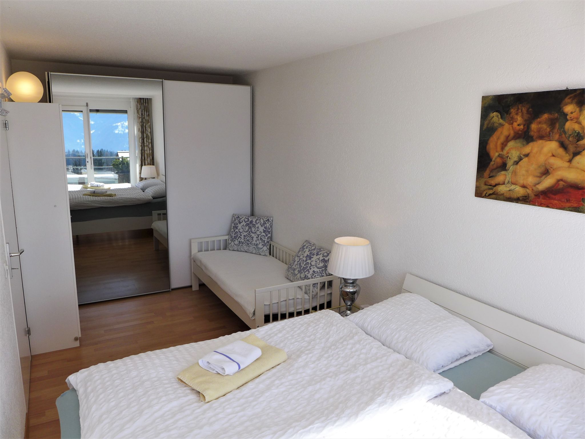 Im Frühling bleibt das Schwimmbad (ca. 26°). zwecks Reinigung für 30 Tage geschlossen. Sauna: Öffnung und Zeitplan wie beim Schwimmbad. Sehr schöne, gemütliche Residenz "Jeanne d'Arc". 200 m vom Zentrum von Crans-Montana, sonnige Lage, exzellente Lage: Absolut zentral und dennoch ruhig, 20 m vom See, 650 m vom Skigebiet, Richtung Süden. Zur Mitbenutzung: Hallenbad beheizt (90 m2, saisonale Verfügbarkeit: 01.Jan. - 18.Apr. und 01.Jun. - 31.Dez. Öffnungszeiten Schwimmbad: 08:30-20:00). Tennis (01.Jun. - 30.Sep.). Im Hause: Aufenthaltsraum, Wireless LAN, Sauna (extra). Fahrstuhl, Skiraum, Zentralheizung. Parkplatz (beschränkte Anzahl). Einkaufsgeschäft 500 m, Supermarkt 400 m, Restaurant 150 m, Bar 50 m, Zentrum zu Fuss in 5 Minuten erreichbar, Bushaltestelle "Lac Grenon" 350 m, Bahnstation "Funiculaire Montana Gare" 1.2 km, Badesee "Moubra" 1.2 km. Golfplatz (18 Loch) 1.7 km, Tennis 1.2 km, Reitstall 1.6 km, Skisportanlagen 650 m, Langlaufloipe 1.7 km, Eisfeld 500 m, Kinderspielplatz 250 m. Nahe gelegene Sehenswürdigkeiten: Casino 500 m. Bekannte Seen in der Umgebung sind gut erreichbar: Moubra 1.2 km, Etang Long 1.2 km, Grenon 20 m. Bitte beachten: Gratis Skibus. Weitere Unterkünfte sind buchbar.