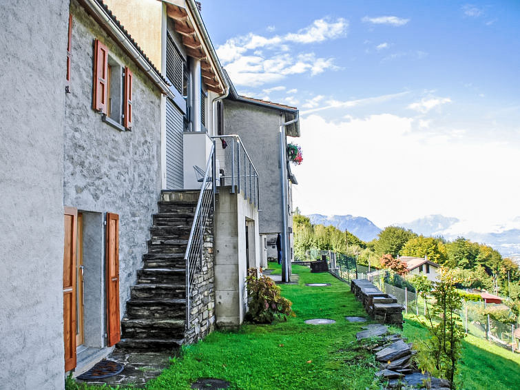 "La Cassìna", 2-Zimmer-Haus 70 m2 auf 2 Stockwerken. Geräumig, vollständig renoviert im Jahre 2018, rustikal und gemütlich eingerichtet: offenes grosses Wohn-/Esszimmer mit Schwedenofen, Esstisch und Radio. Ausgang zum Garten. Offene Küche (Backofen, 4 Glaskeramikplatten, elektrische Kaffeemaschine, Kapseln für die Kaffeemaschine (Nespresso) extra, Racletteofen, Fondue Set (Chinoise, Käse)). Unteres Geschoss: 1 offenes grosses Doppelzimmer mit 1 Doppelbett (1 x 160 cm, Länge 200 cm), Dusche/WC. Ausgang zum Garten. Holzdielenboden. Garten 30 m2. Liegestühle (2). Schöne Sicht auf die Berge, das Tal und die Landschaft. Zur Verfügung: Kinderhochstuhl, Babybett bis 2 Jahre (extra), Haartrockner. Internet (Wireless LAN, extra). Bitte beachten: Nichtraucher-Haus. Feuerlöscher. NL-00001993