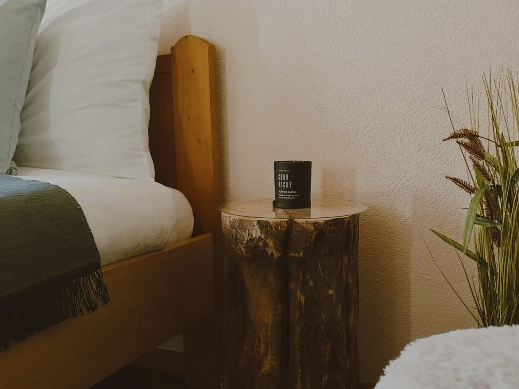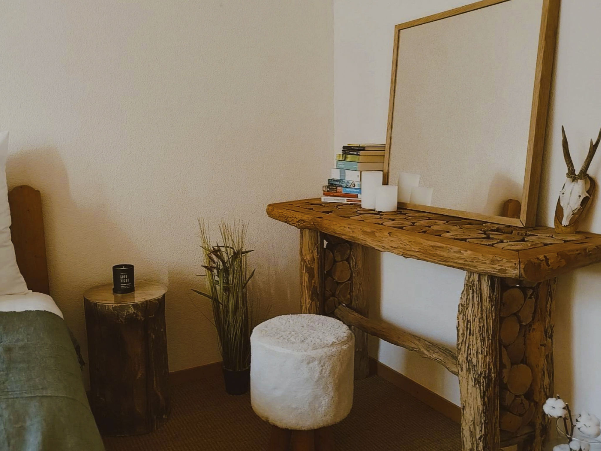 Die Kombination aus Holz und Leder in der Einrichtung sorgt für echten alpinen Charme.